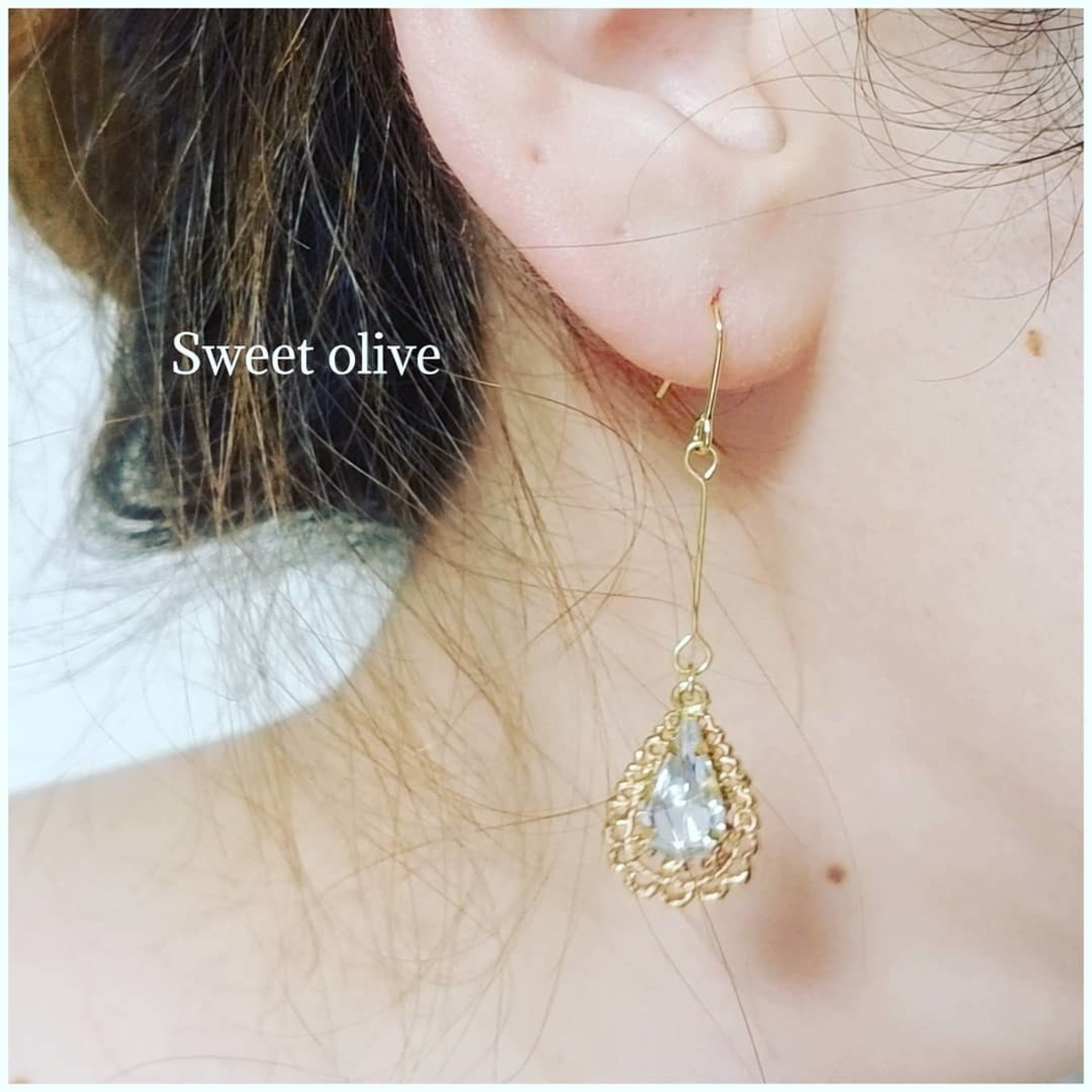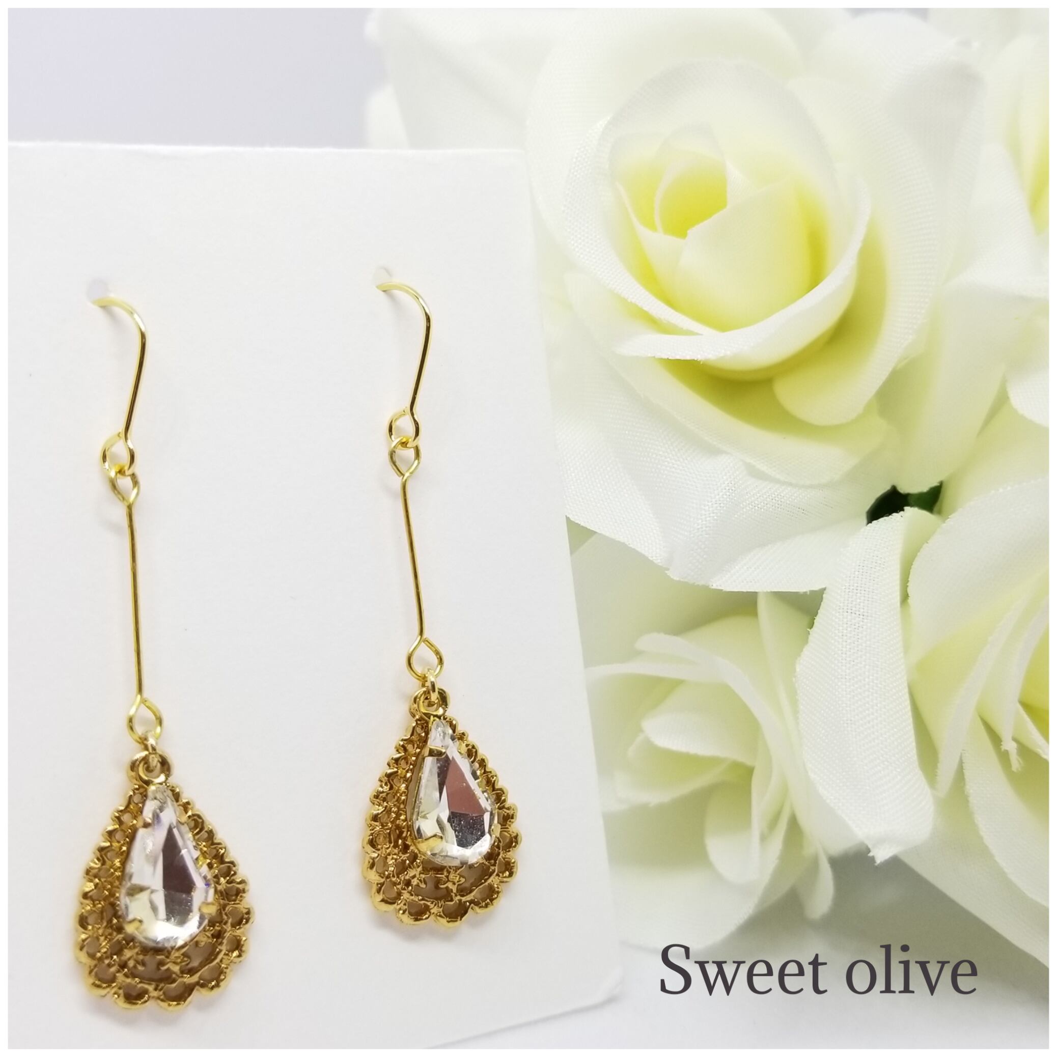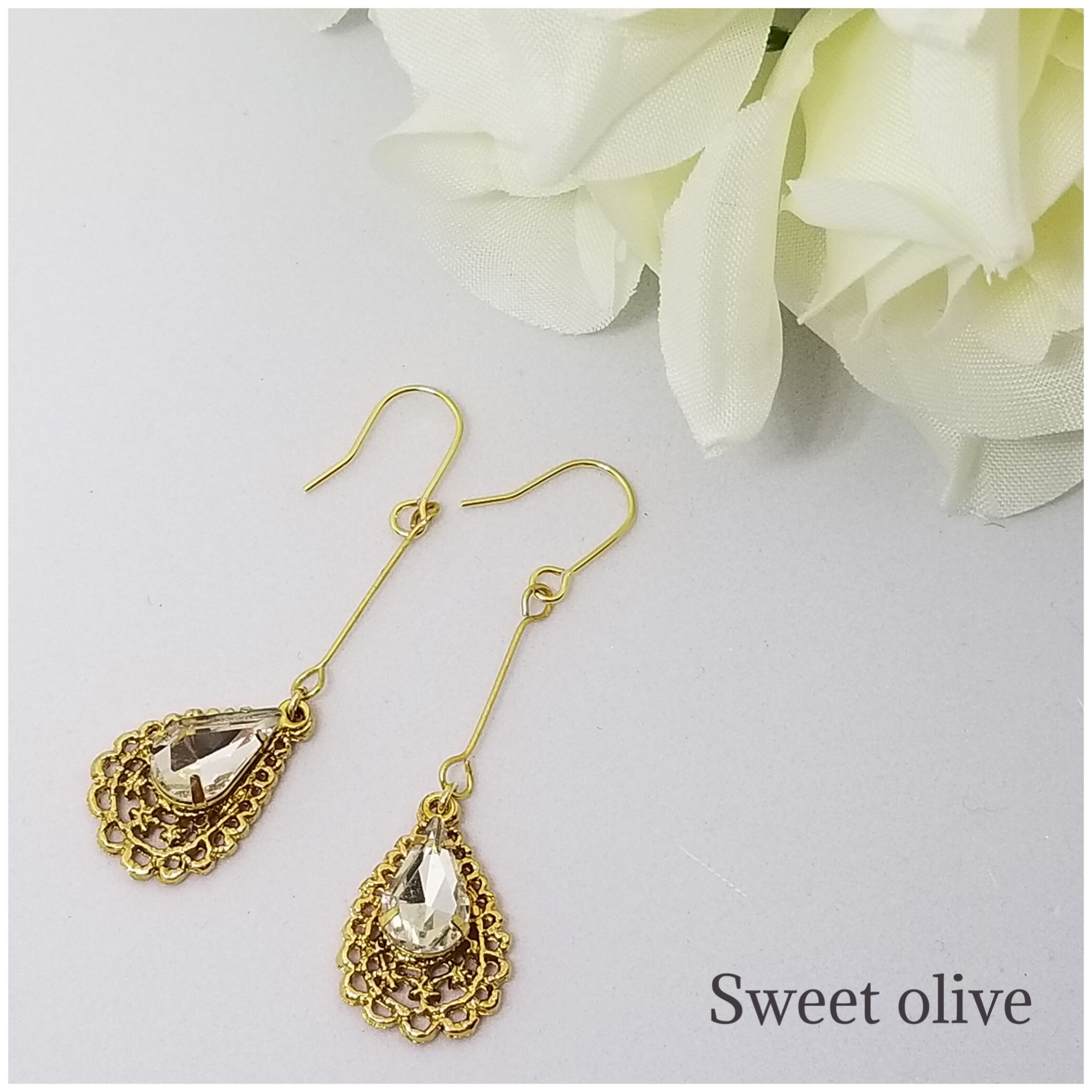 アンティーク調のしずく型の透かしプレートにティアドロップのクリアガラスを合わせました☆
