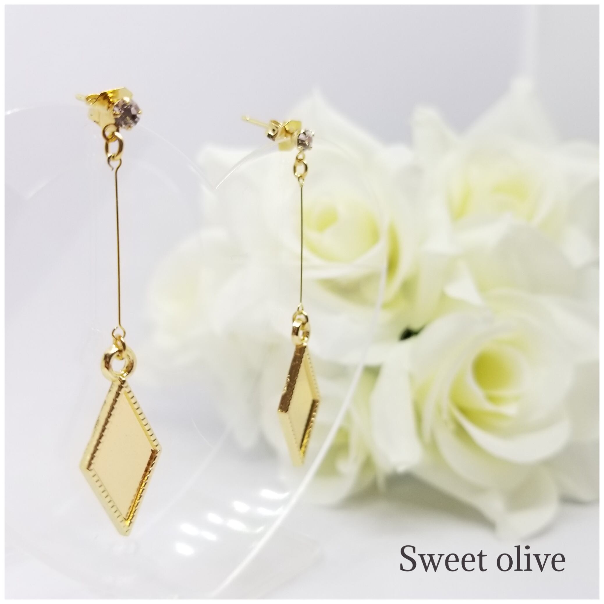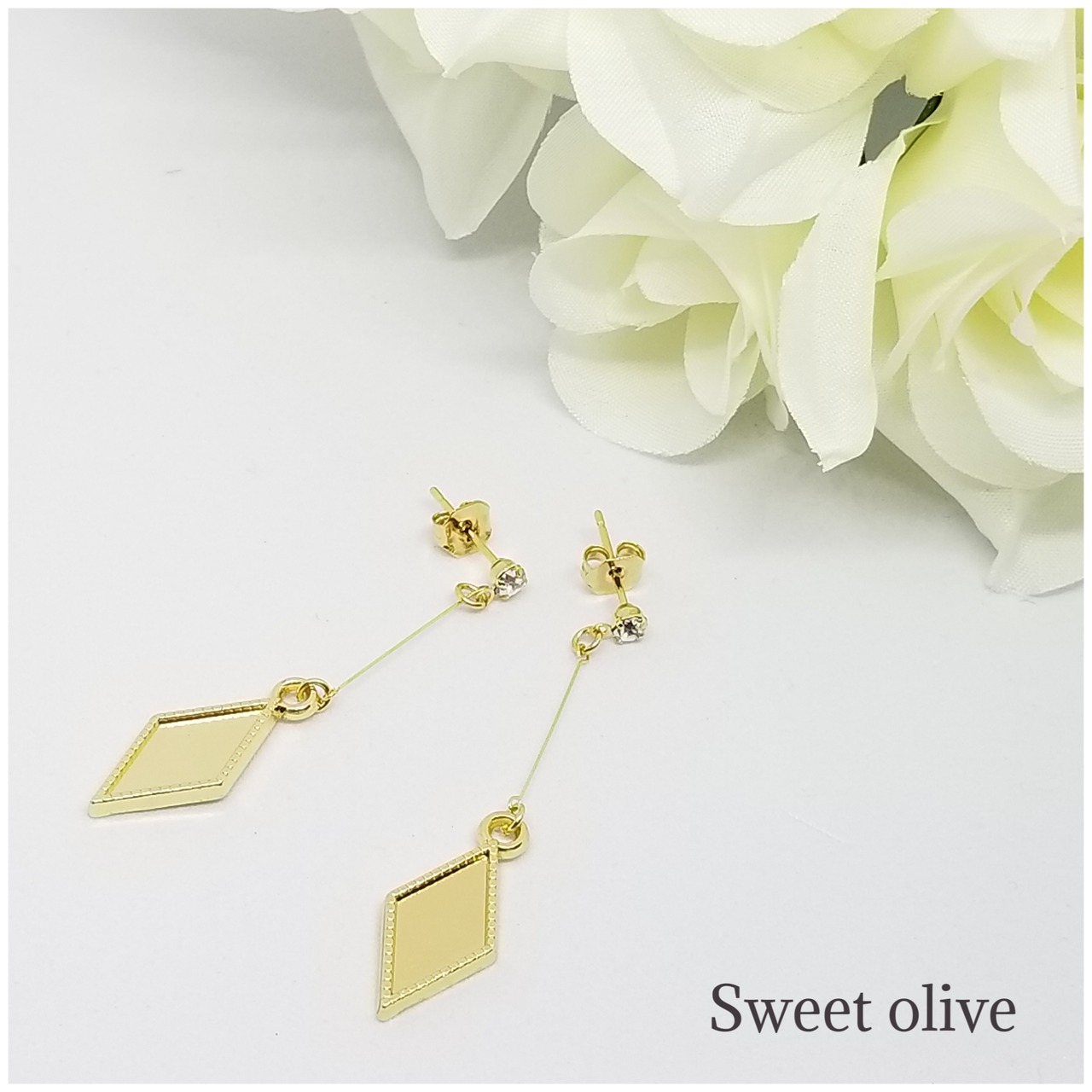 キラッとさりげなく輝くキュービックに華奢に揺れるダイヤカットプレートをピアノ線で上品に仕上げました♪