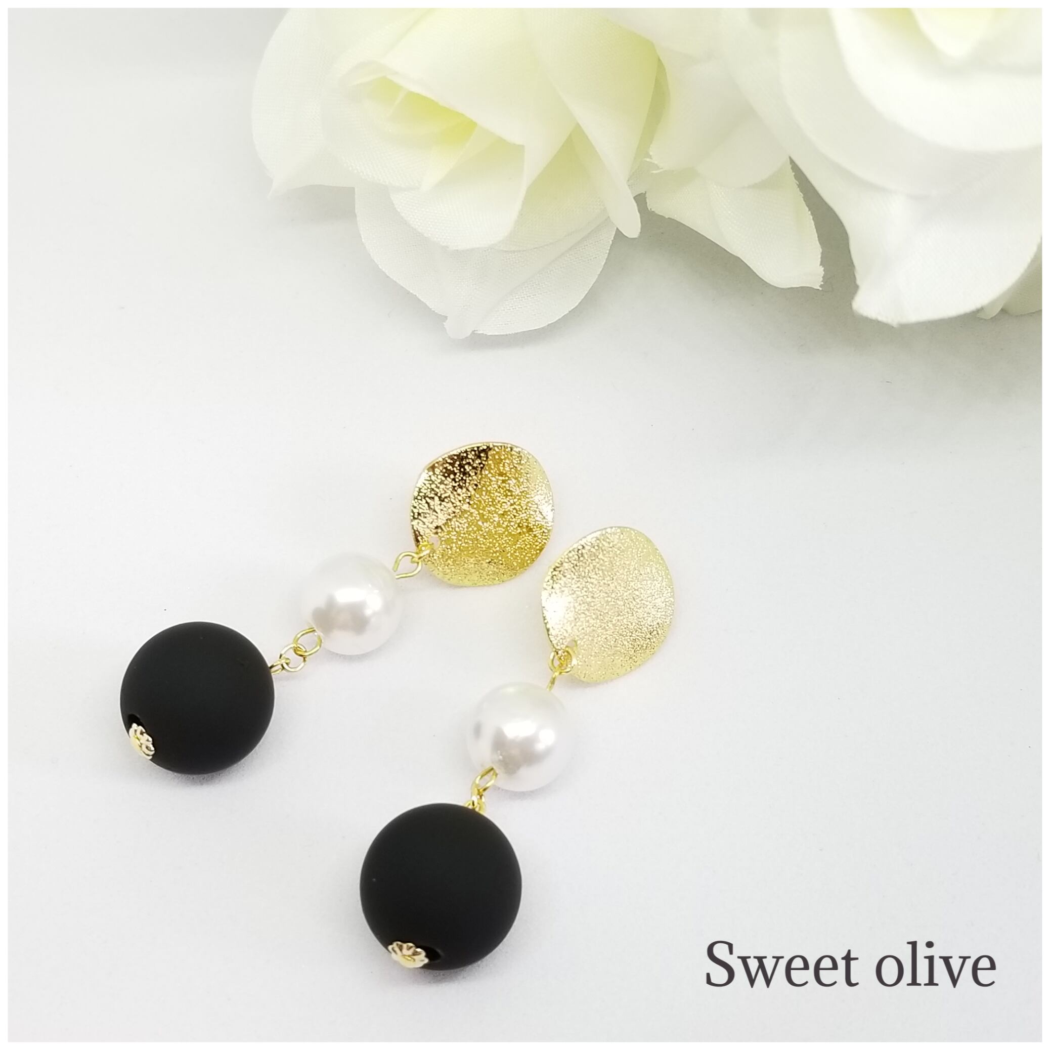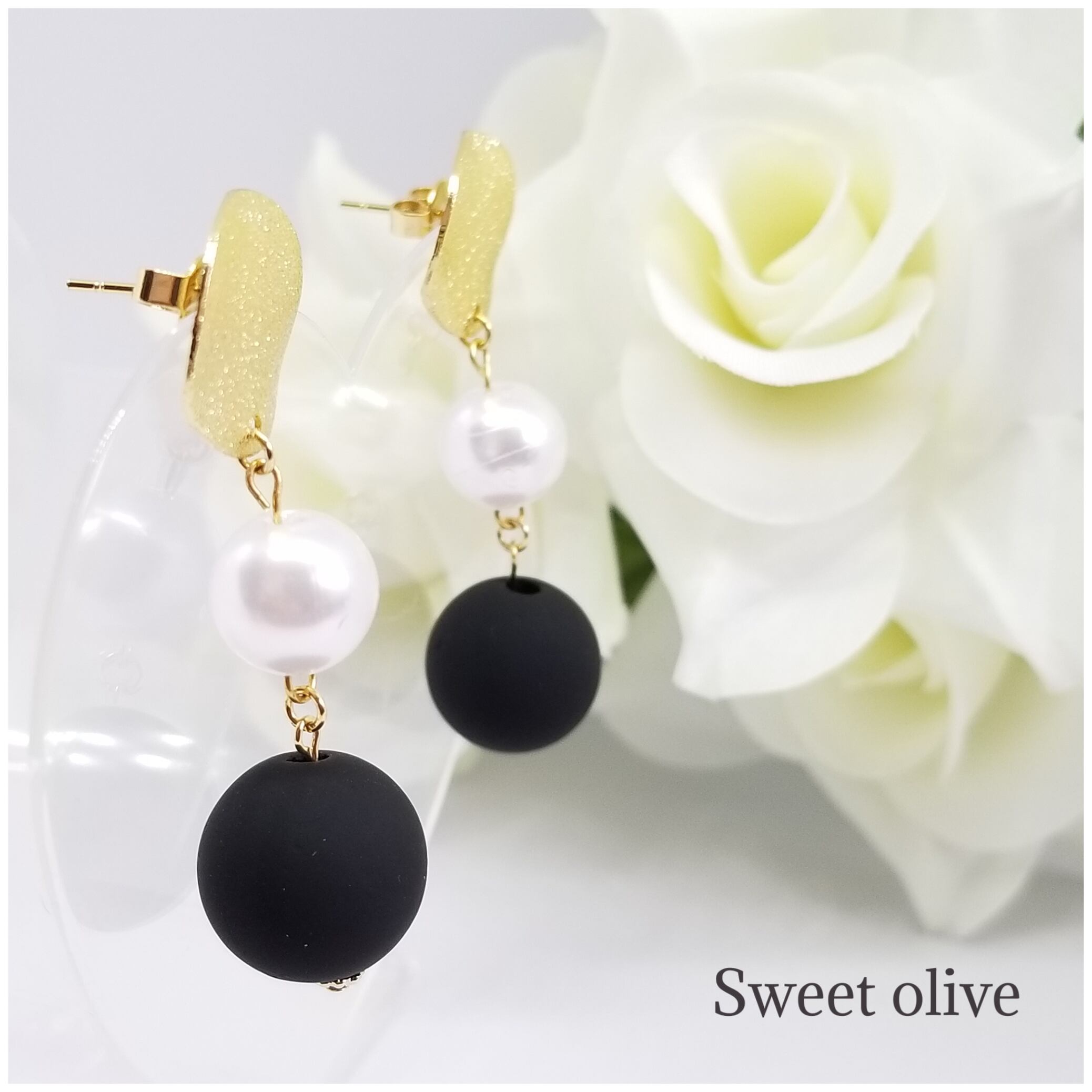大ぶりのブラックビーズはマットのタイプで仕上げており、更にシックなイメージです♪