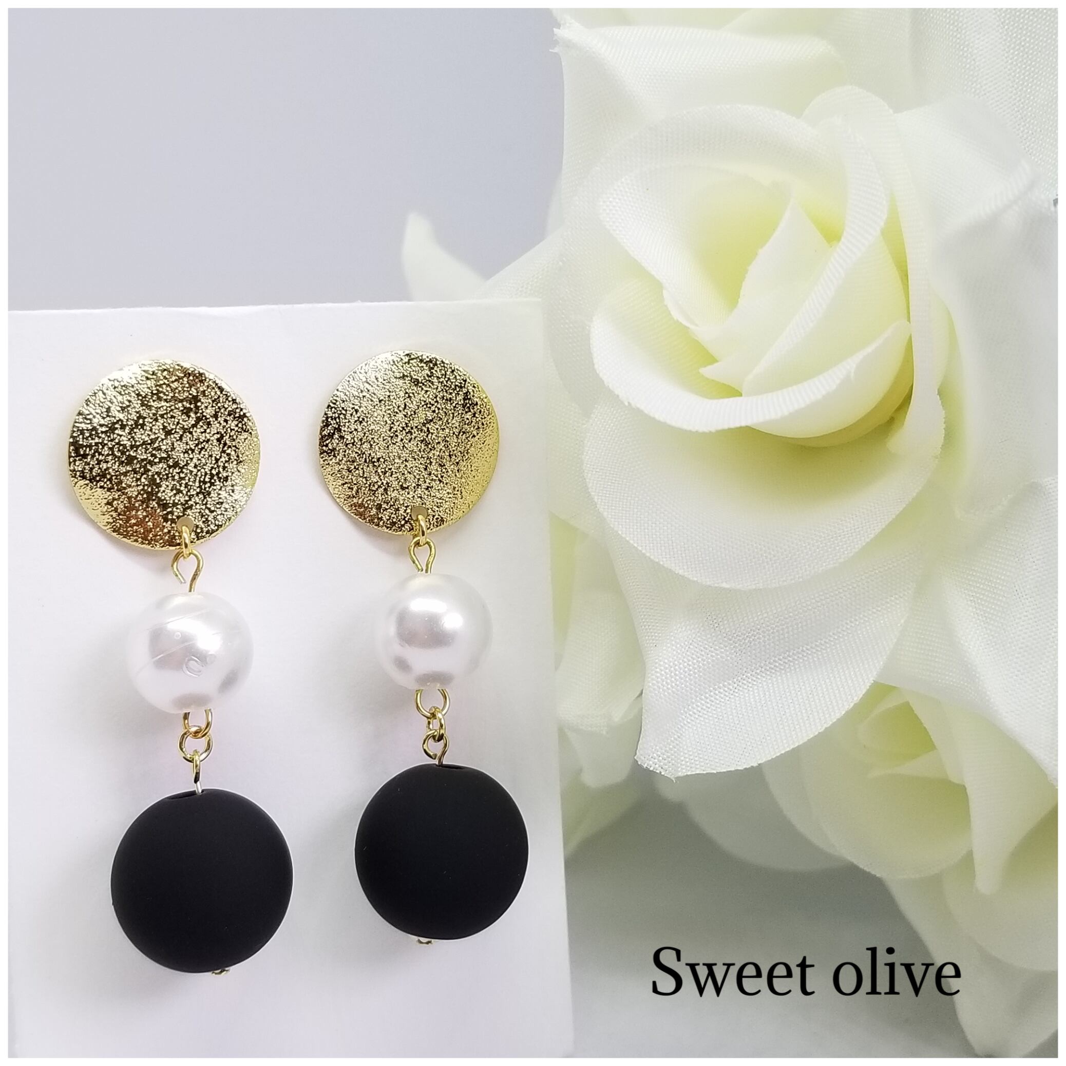 スターダストとパールとブラックピーズのヴィンテージ調ピアスです。