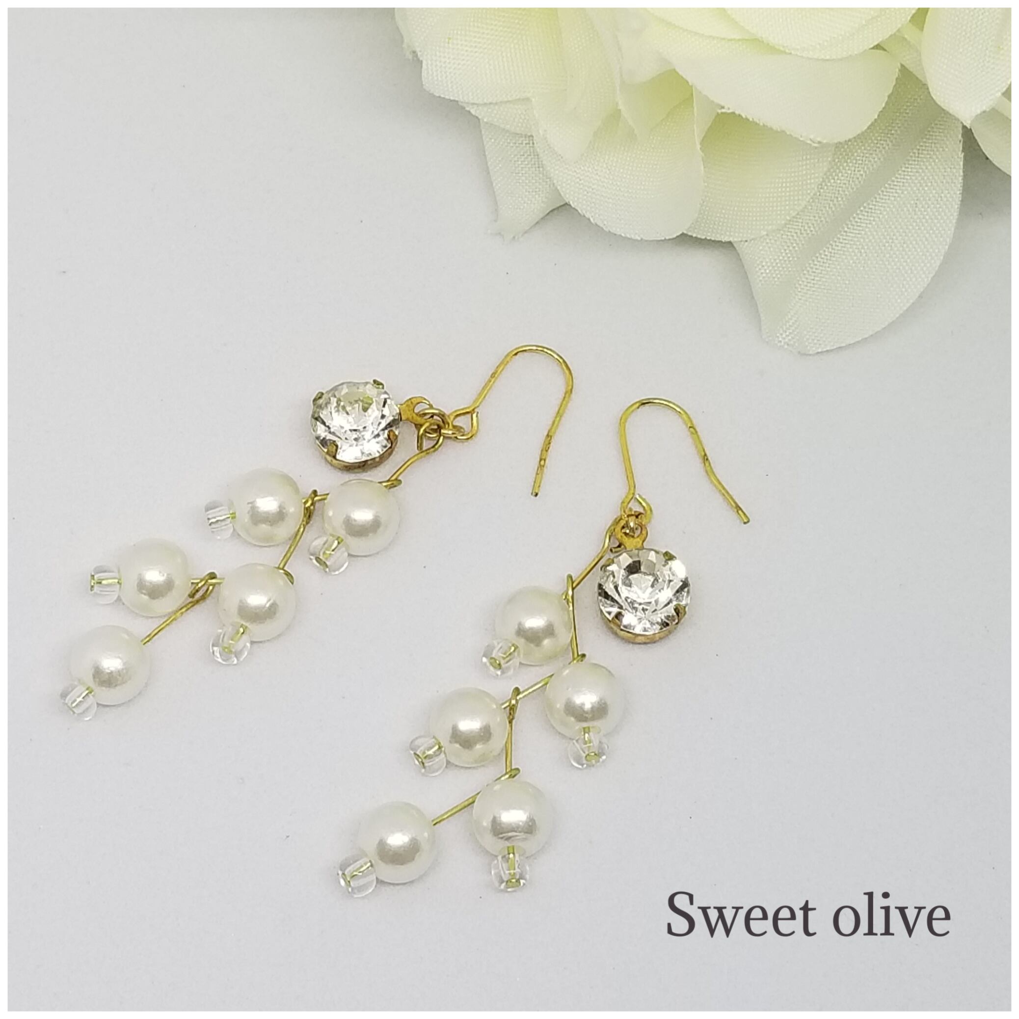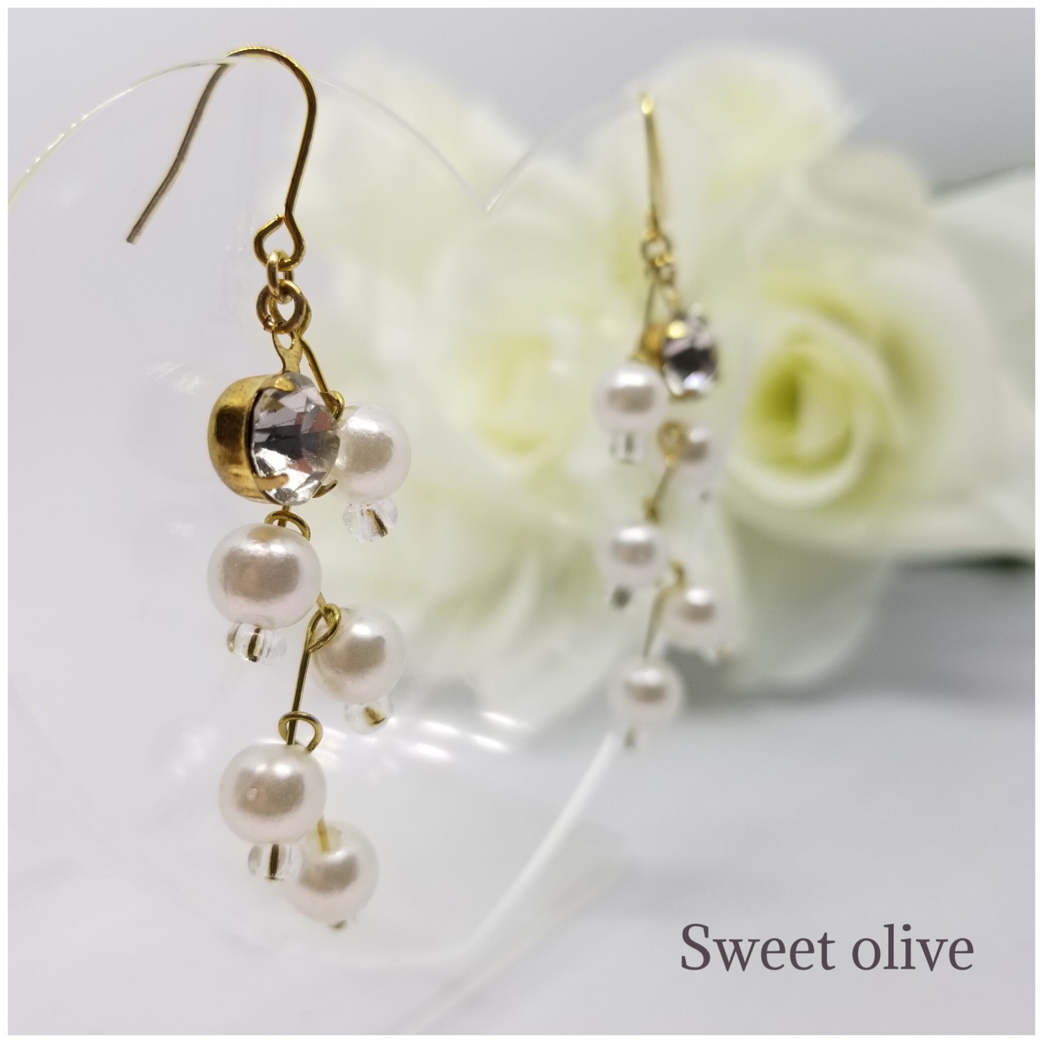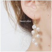 木の実のようなパールが揺れる度にキラッと一粒輝く作品です☆パールの下にビーズをつけたことにより、更に可愛く世界でひとつの逸品に仕上げました♪こちらは一点ものです!