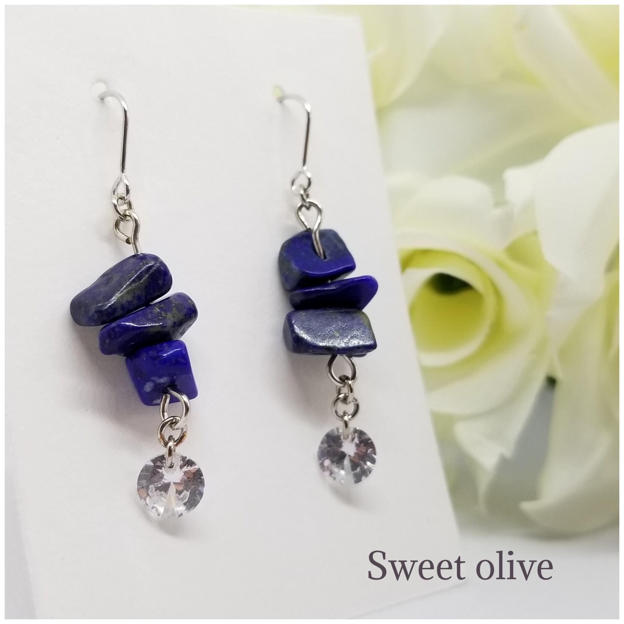 ラピスラズリ&高級ガラスストーンのピアス