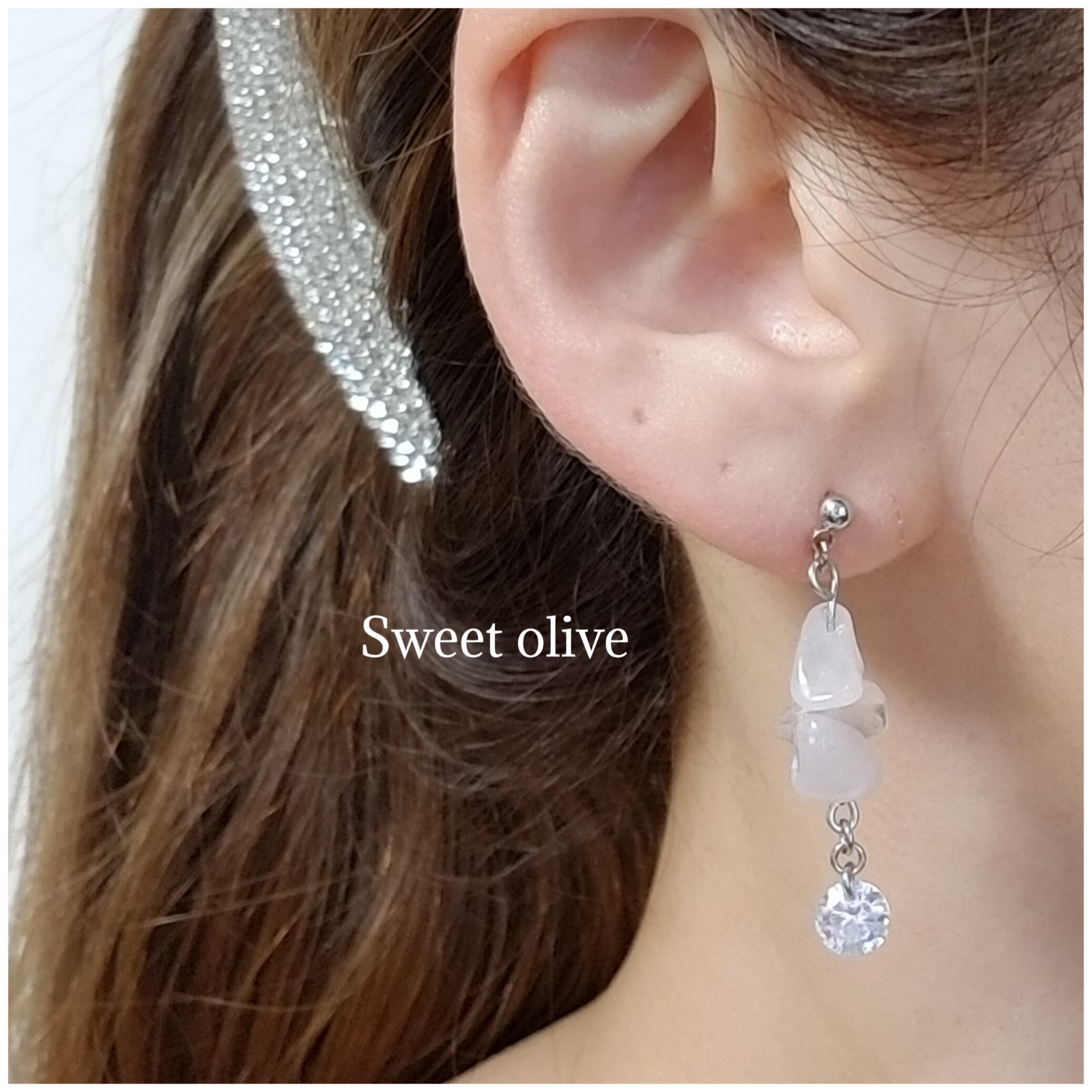 柔らかいピンクが優しく、同じ形の石がないのでだったひとつのピアスです☆