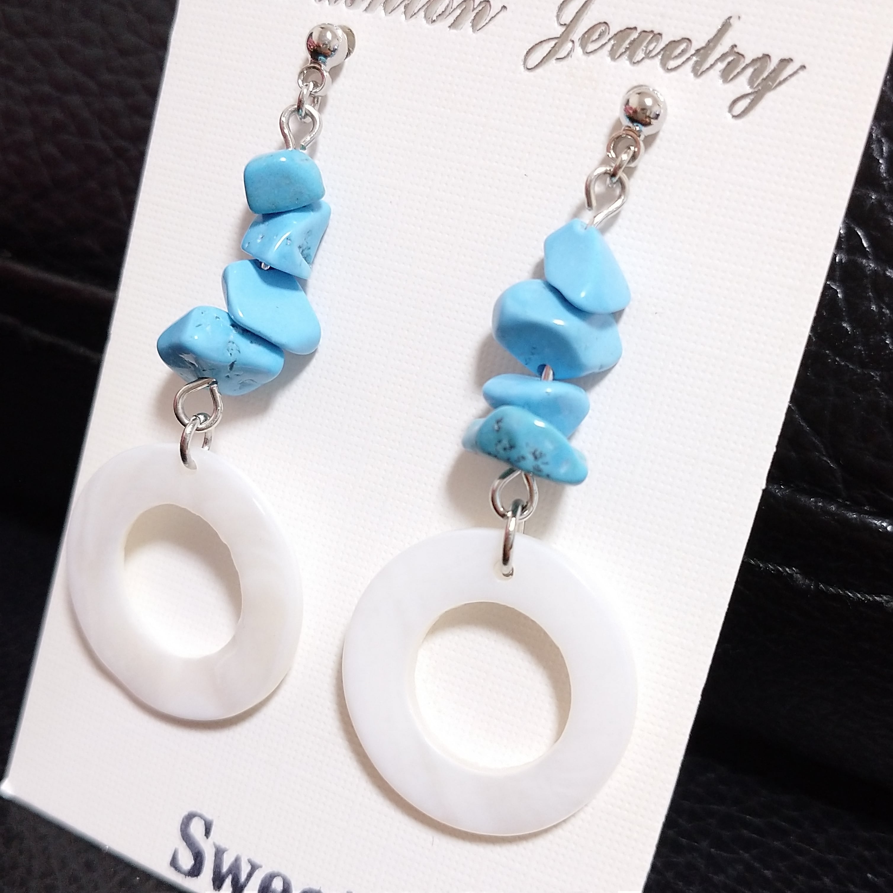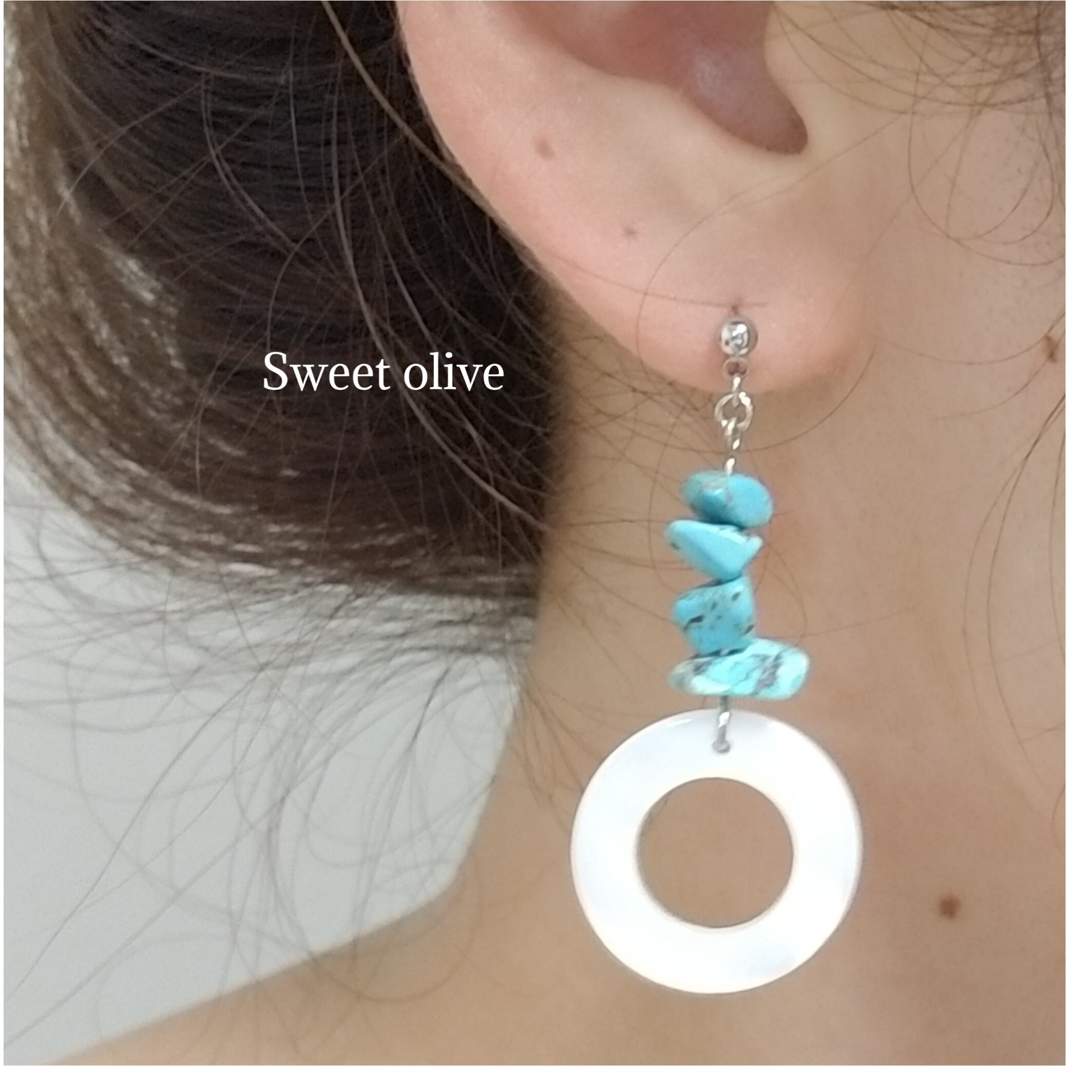 天然のさざれターコイズにシェルリングを合わせた涼しげな夏の新作です☆不揃いなさざれ石が魅力となり、同じデザインがないのも特徴です♪
