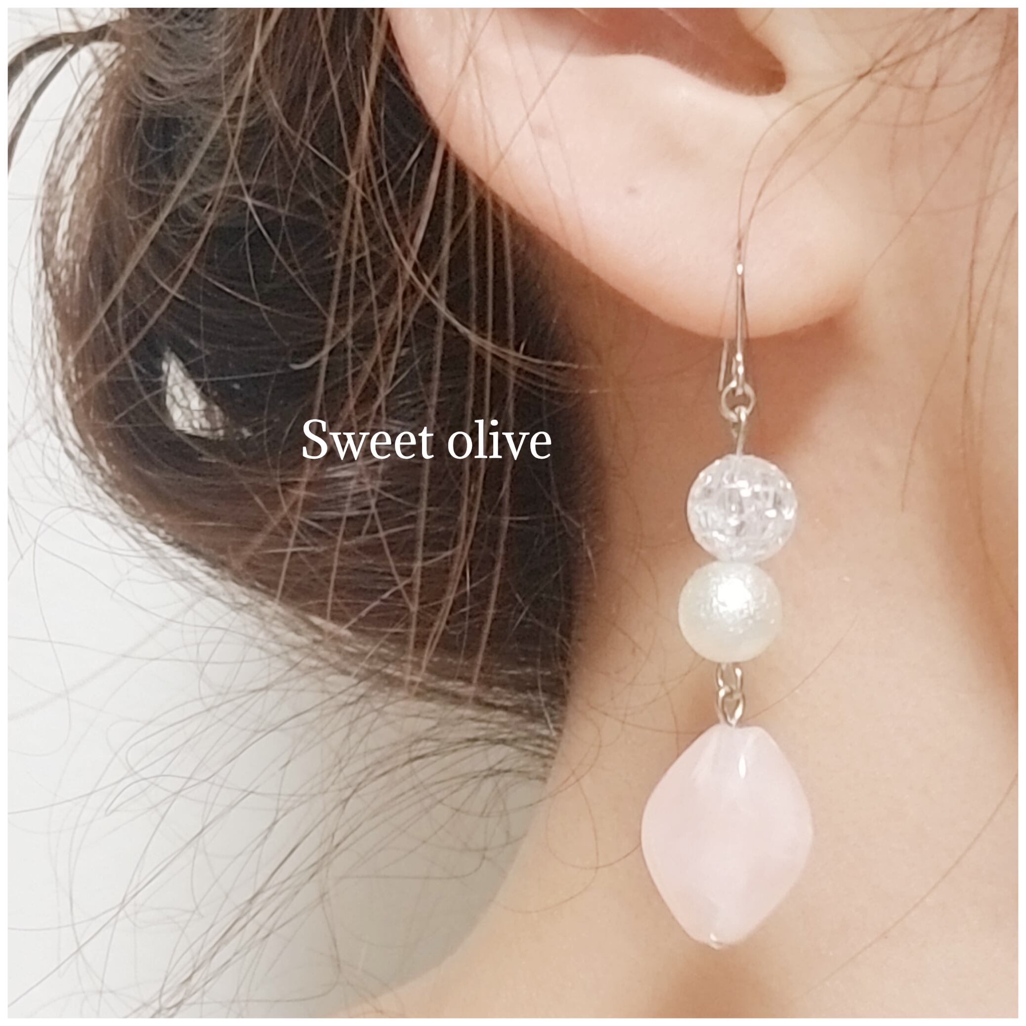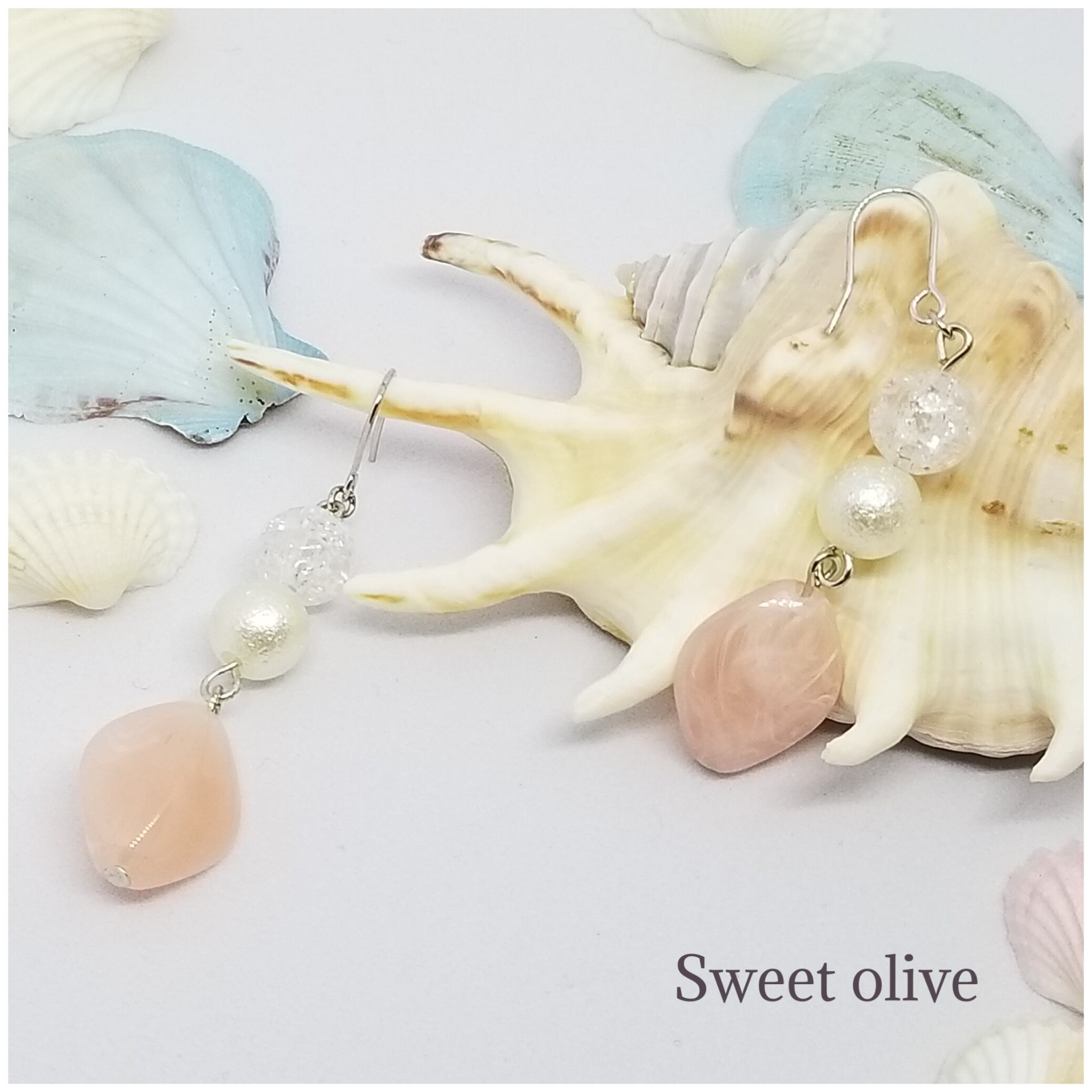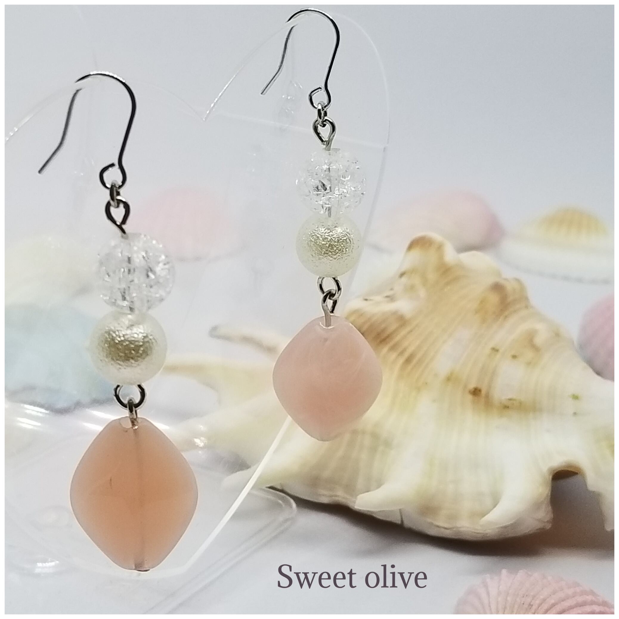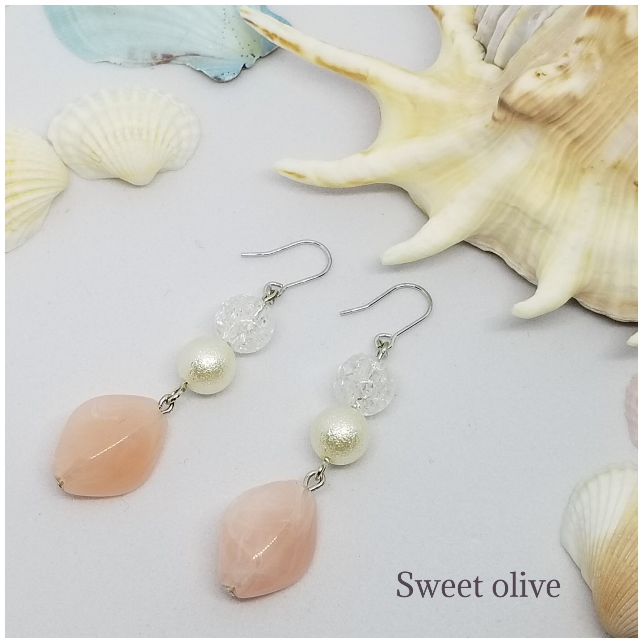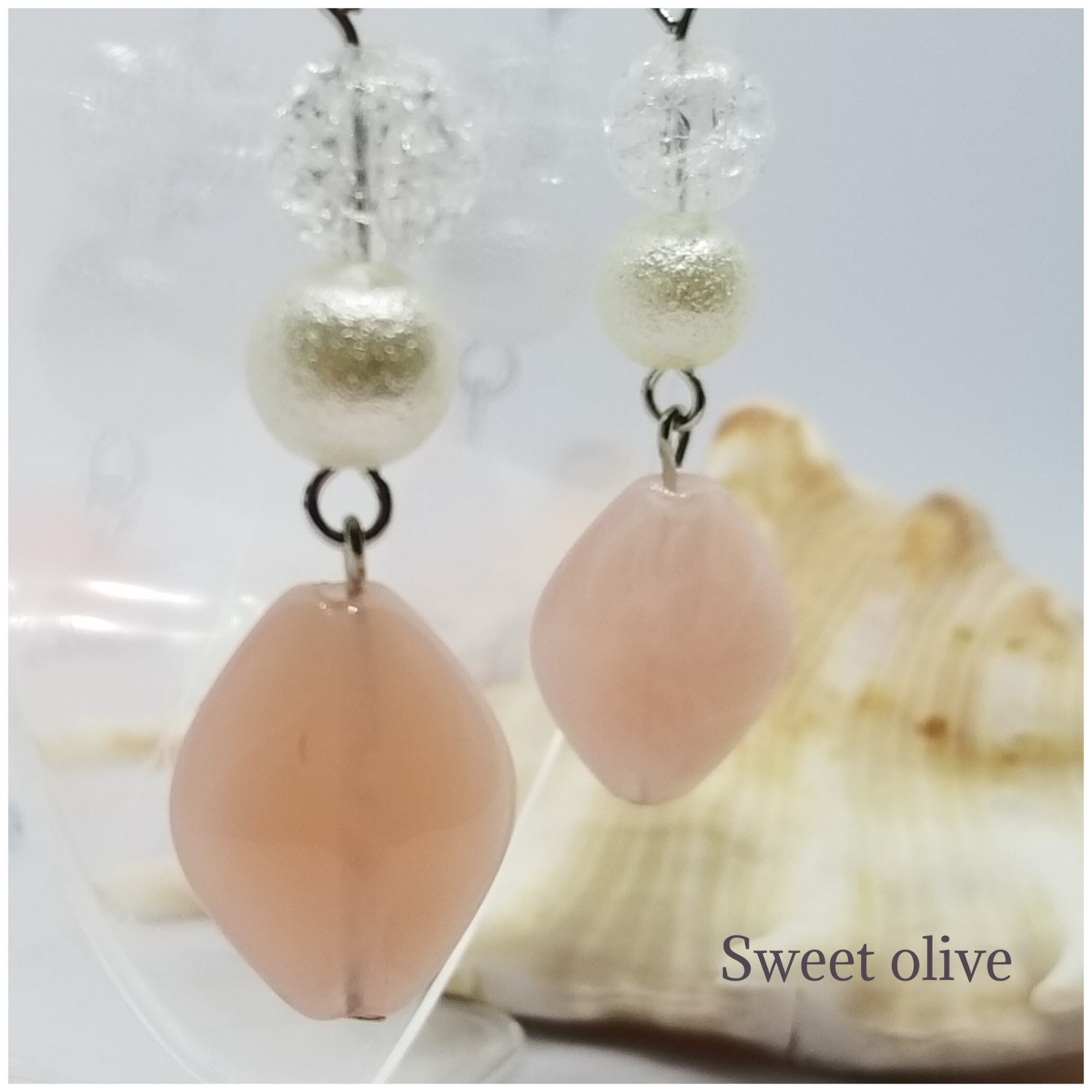 夏の新作のターコイズブルーのピアスと色違いで製作しました♪大人可愛い優しいピンクカラーです☆