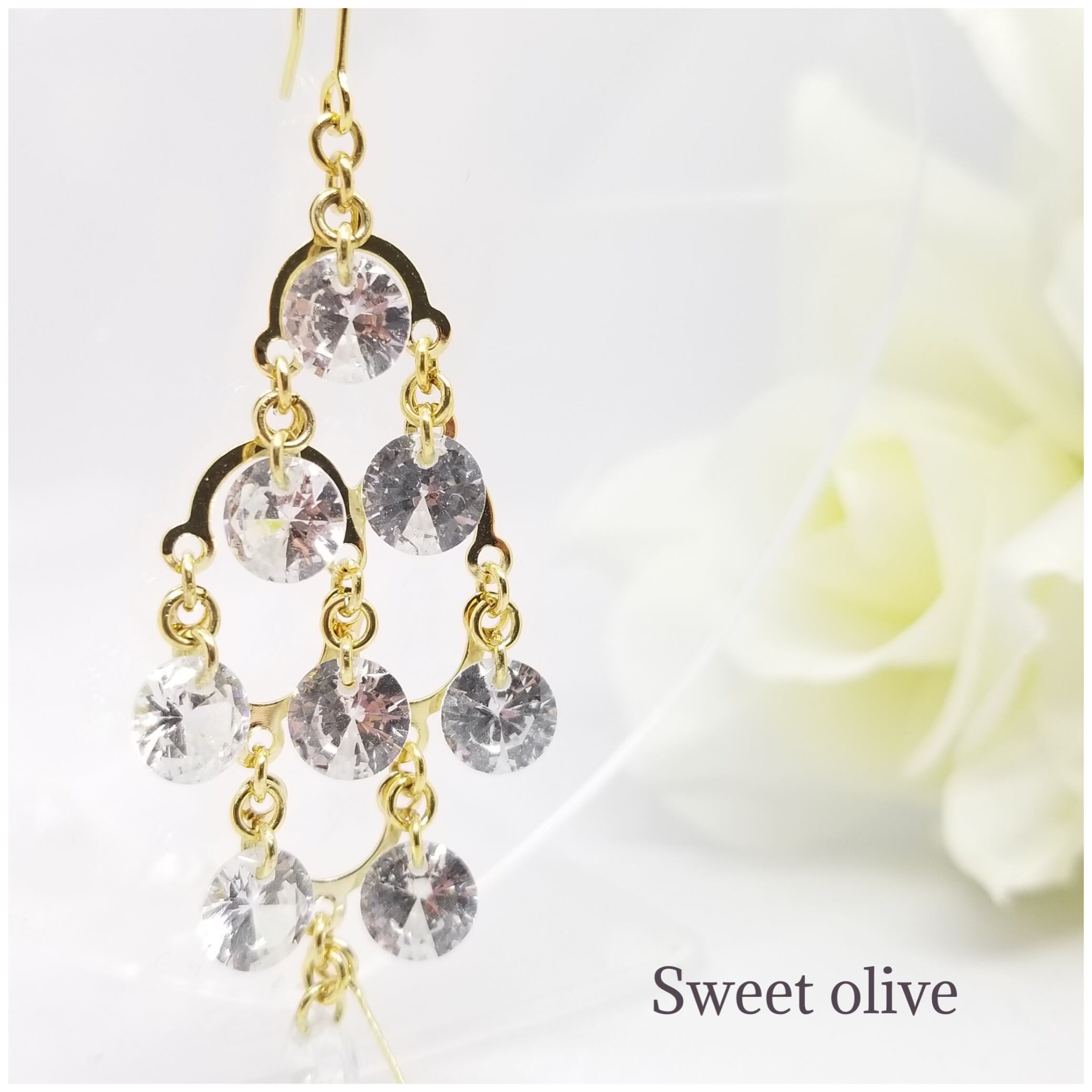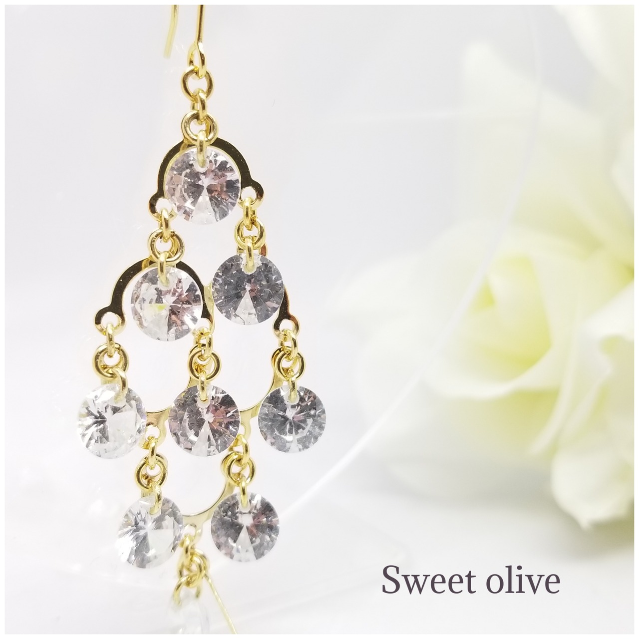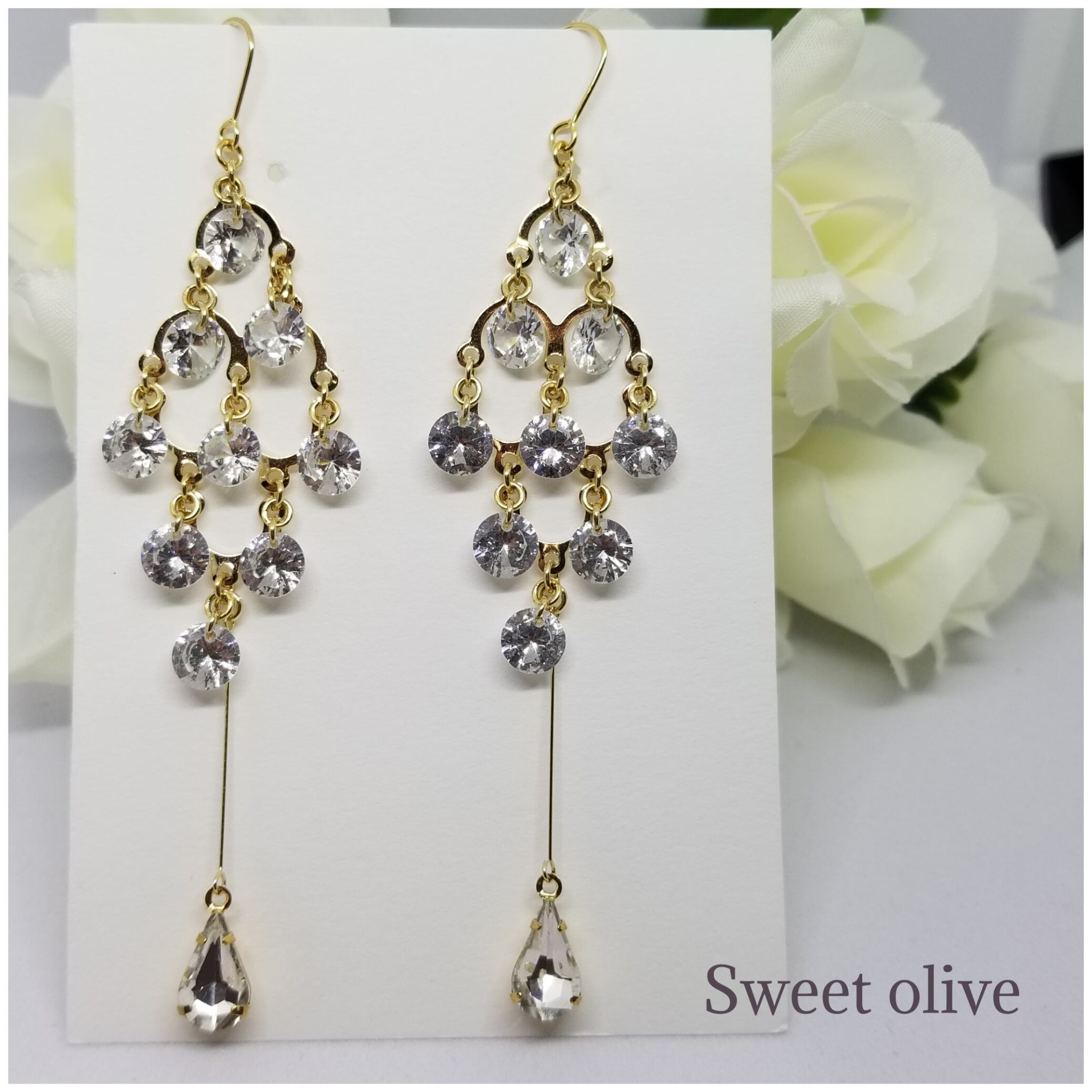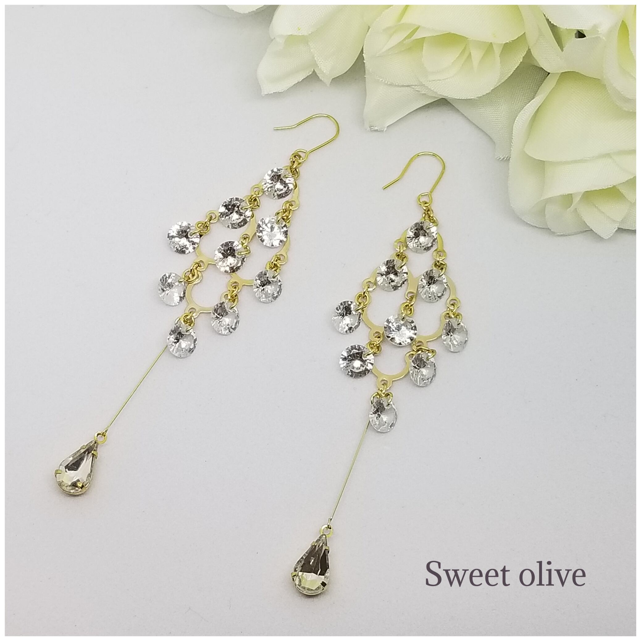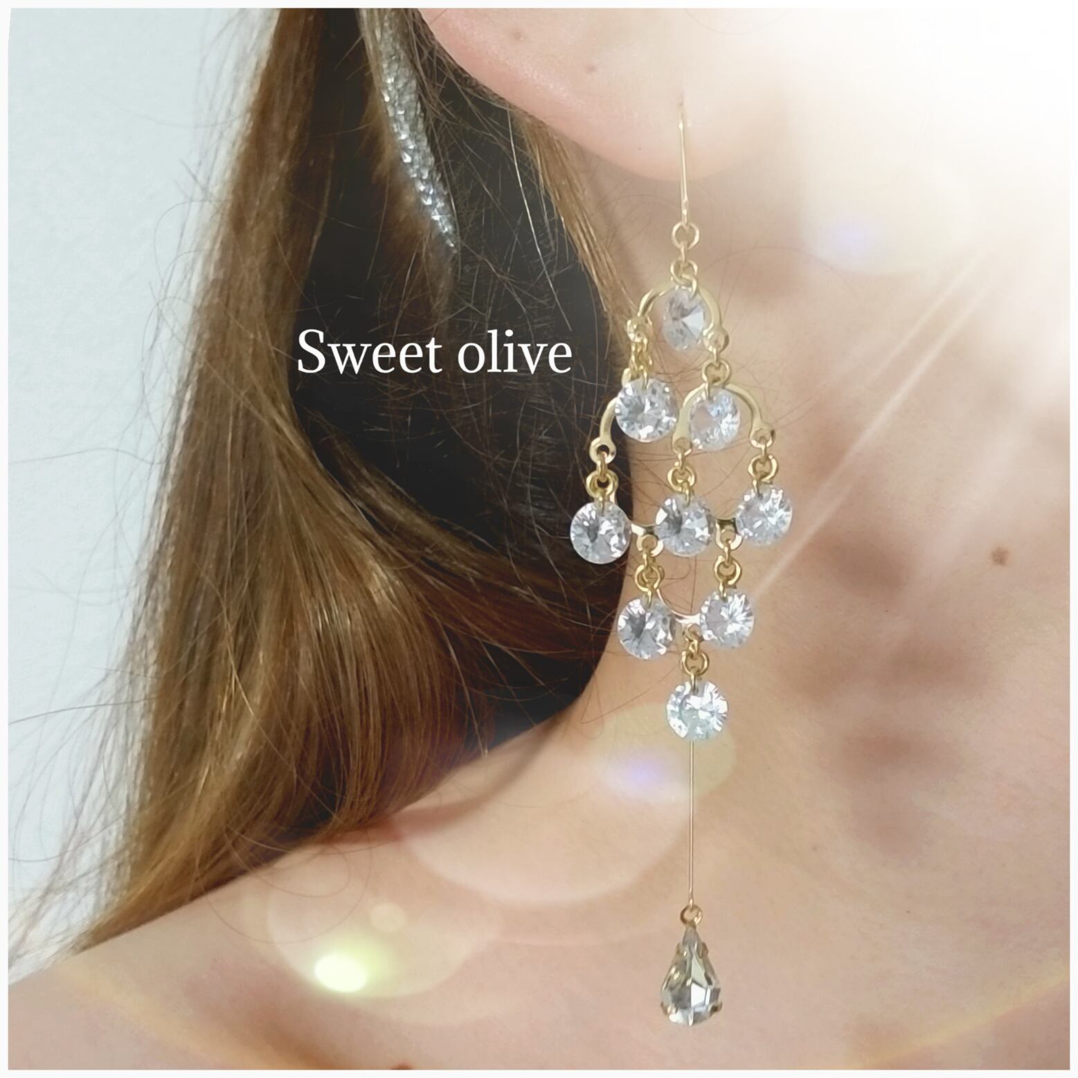 シャンデリアをイメージして作製したシャンデリーです☆ダイヤモンドと同じカットのブリリアントカットの高級ガラス9個とペアシェイプをひと粒合わせたゴージャスなウェディングアクセサリーです♪