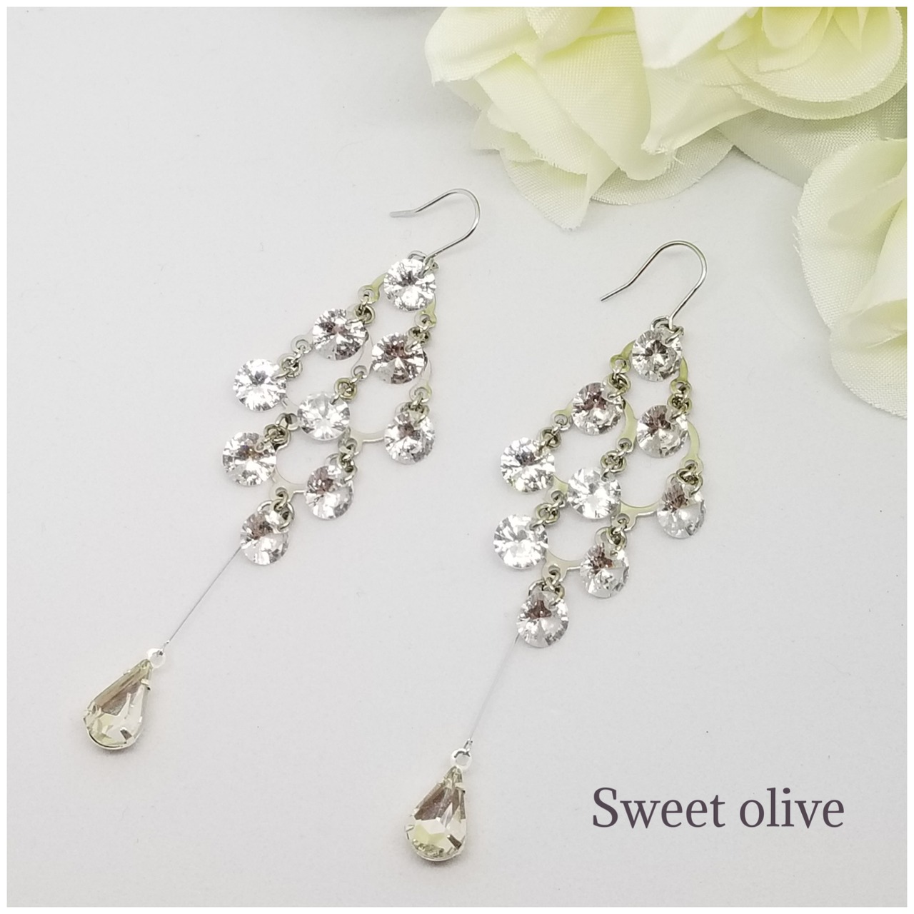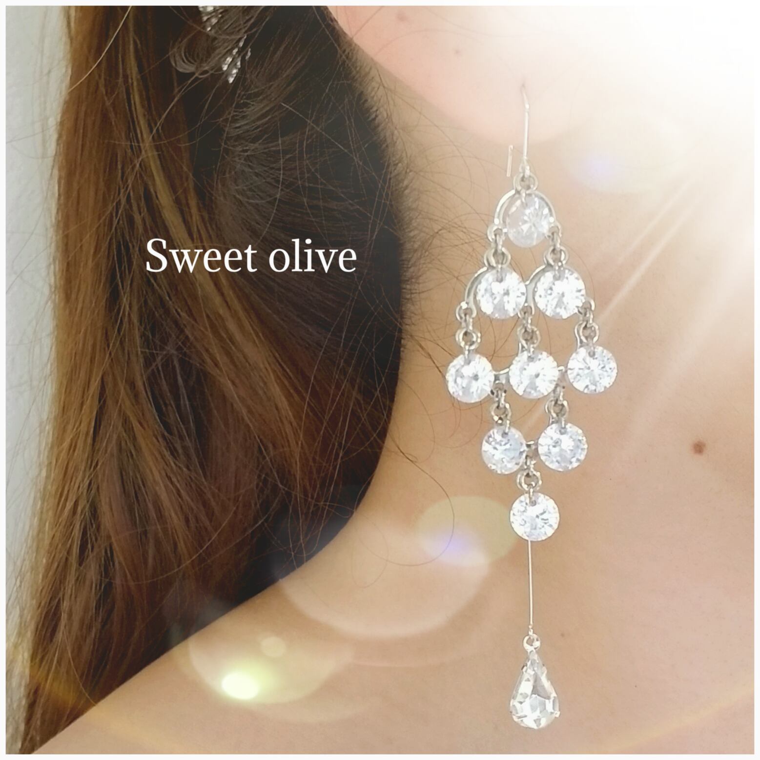 シャンデリアをイメージして作製したピアスになります。ゴールドとシルバーの二色展開です♪
