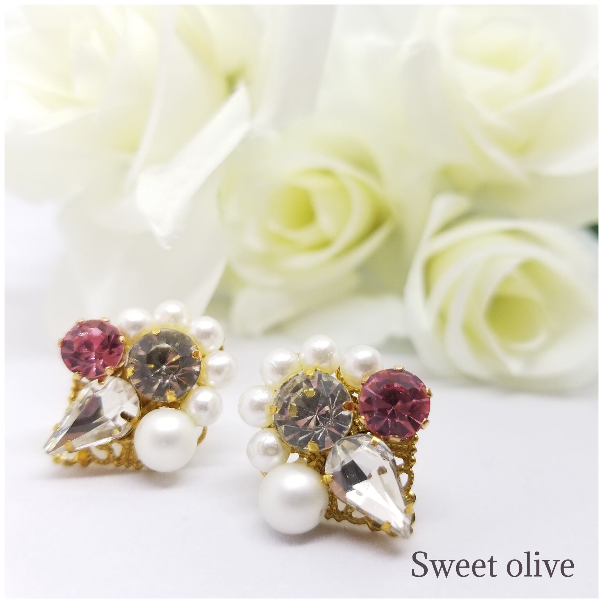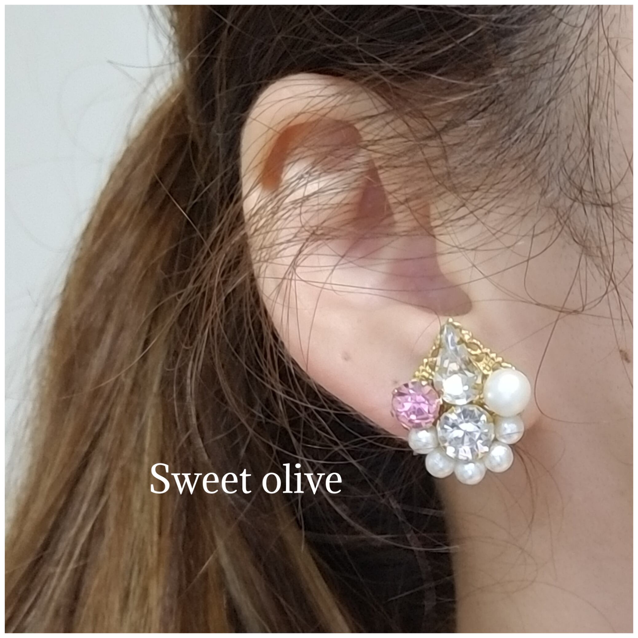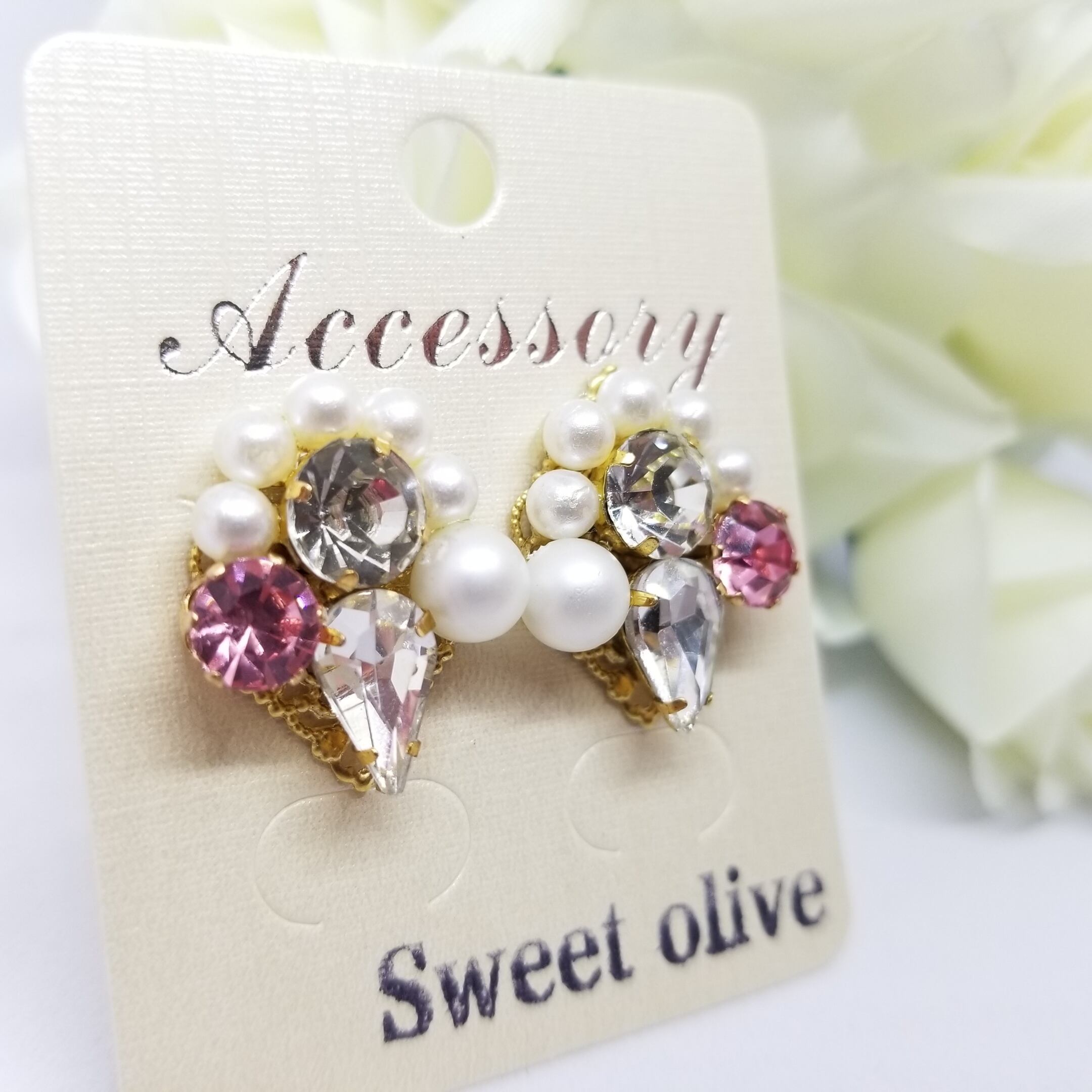 ライトローズ色のストーンを入れることによって上品な印象になります☆