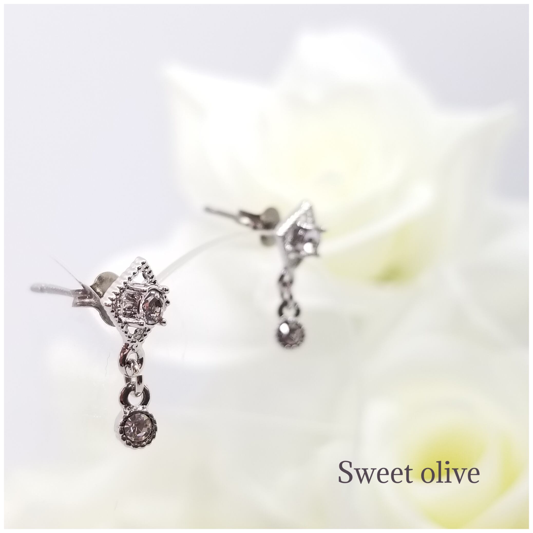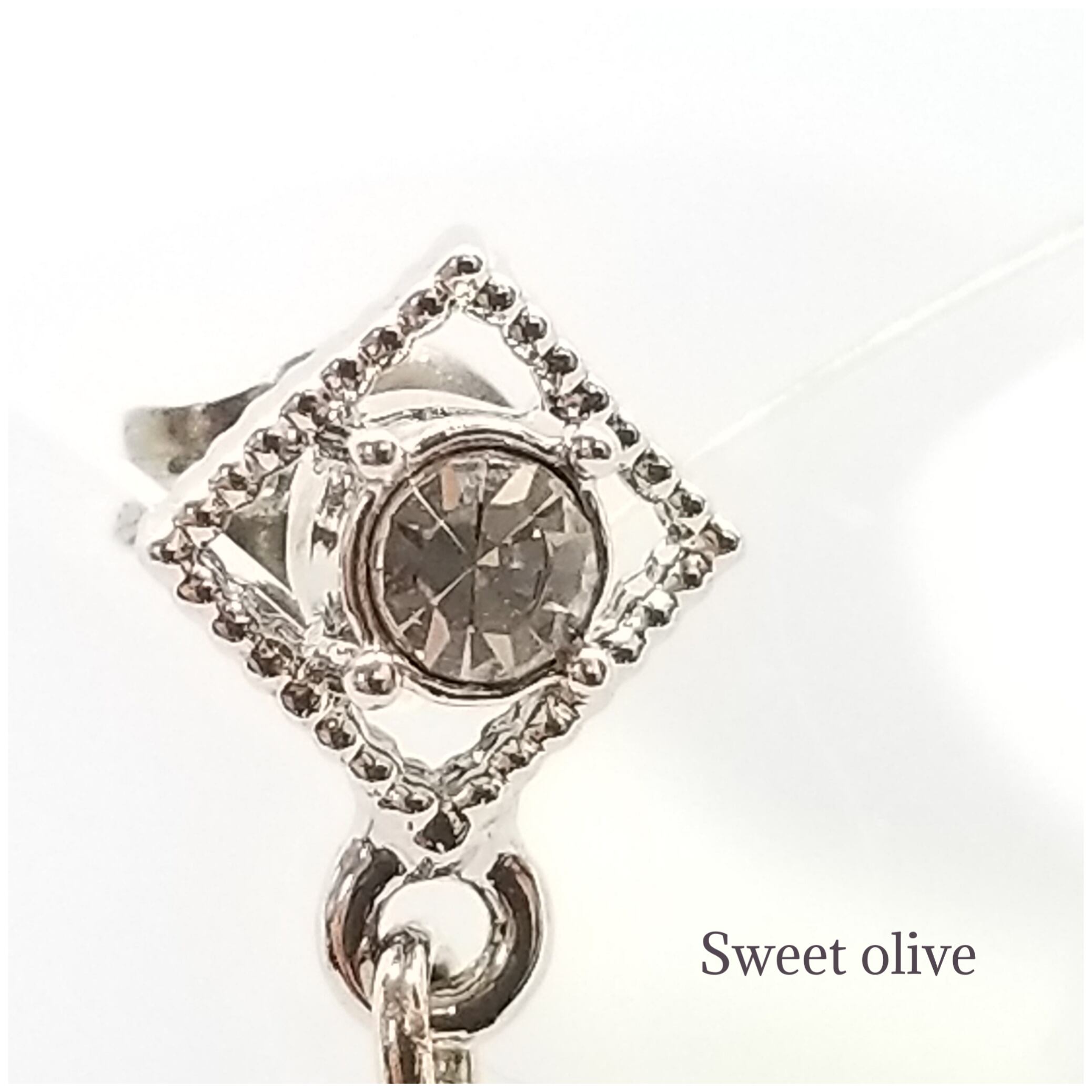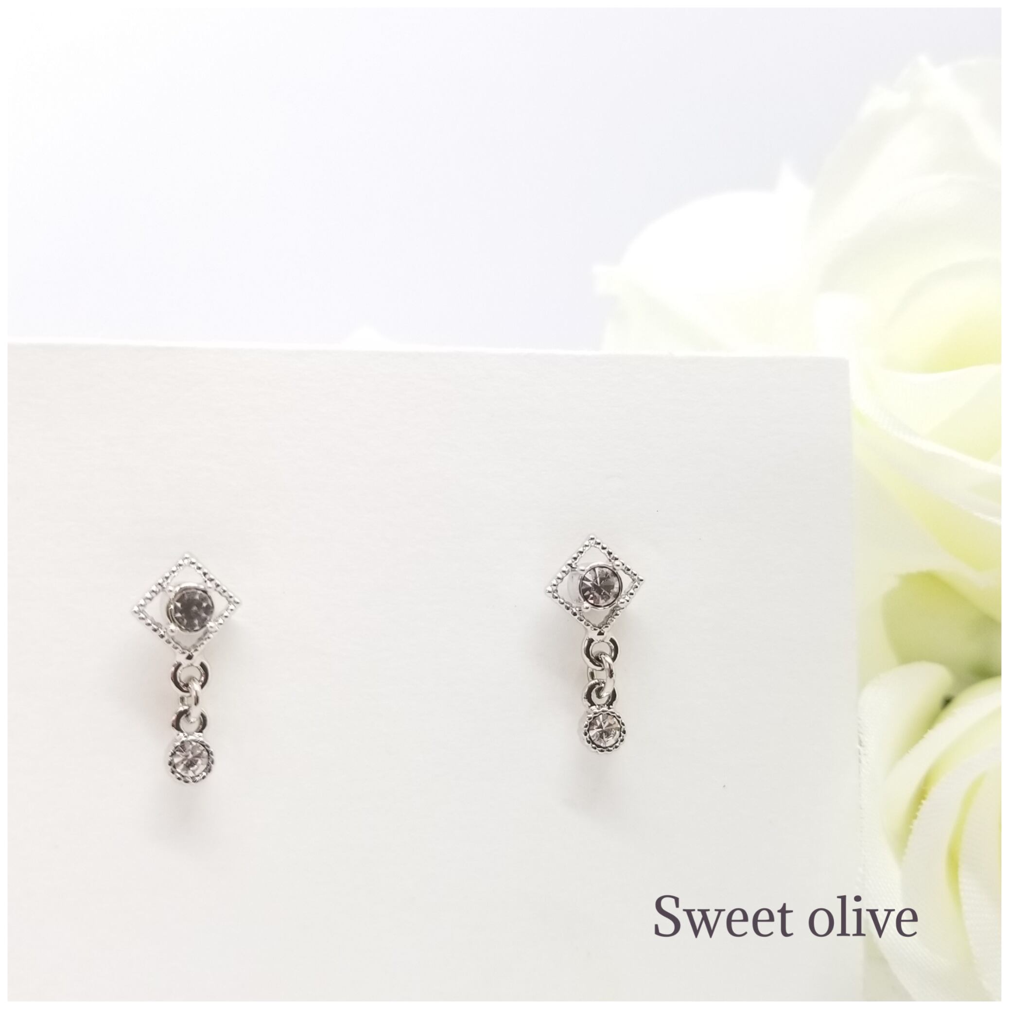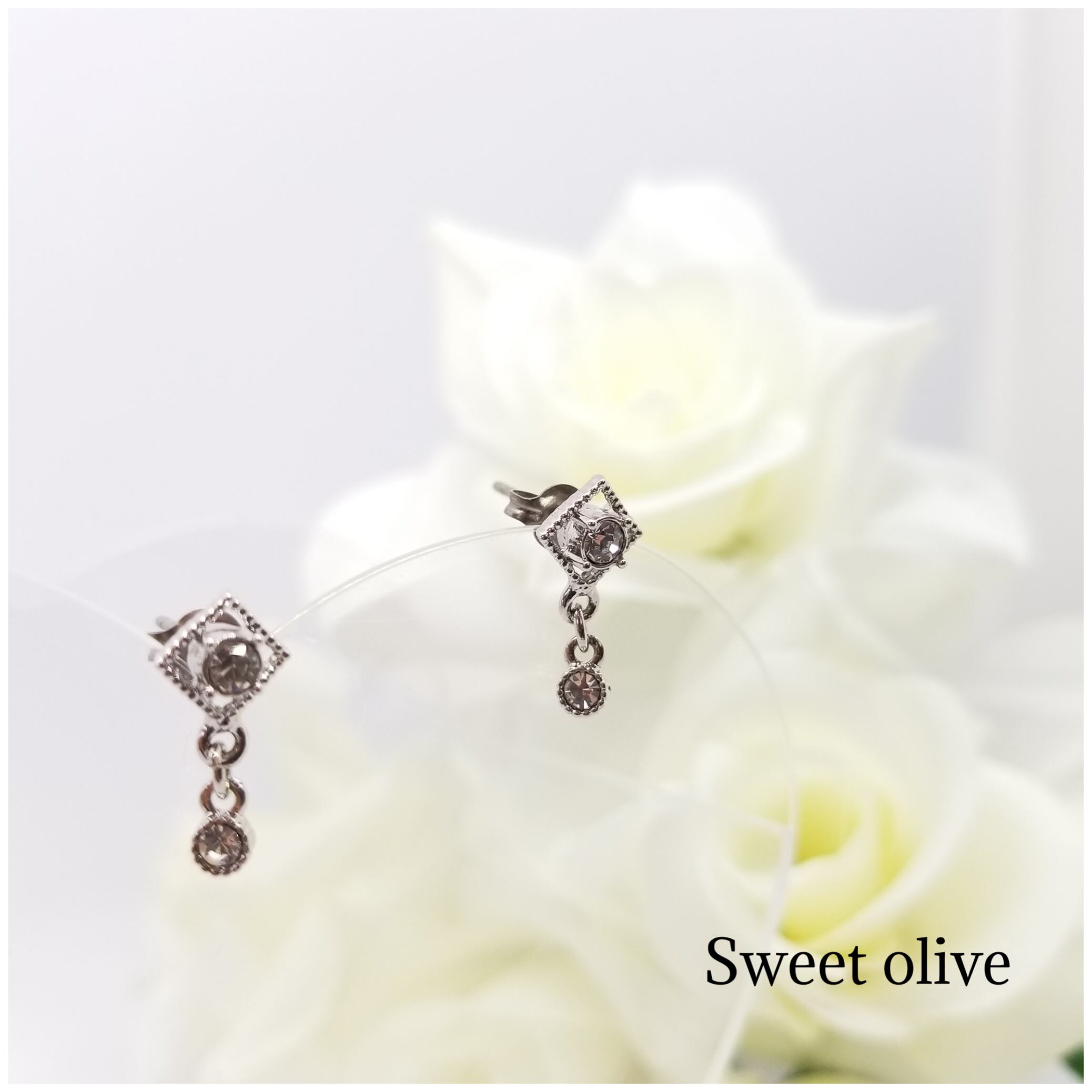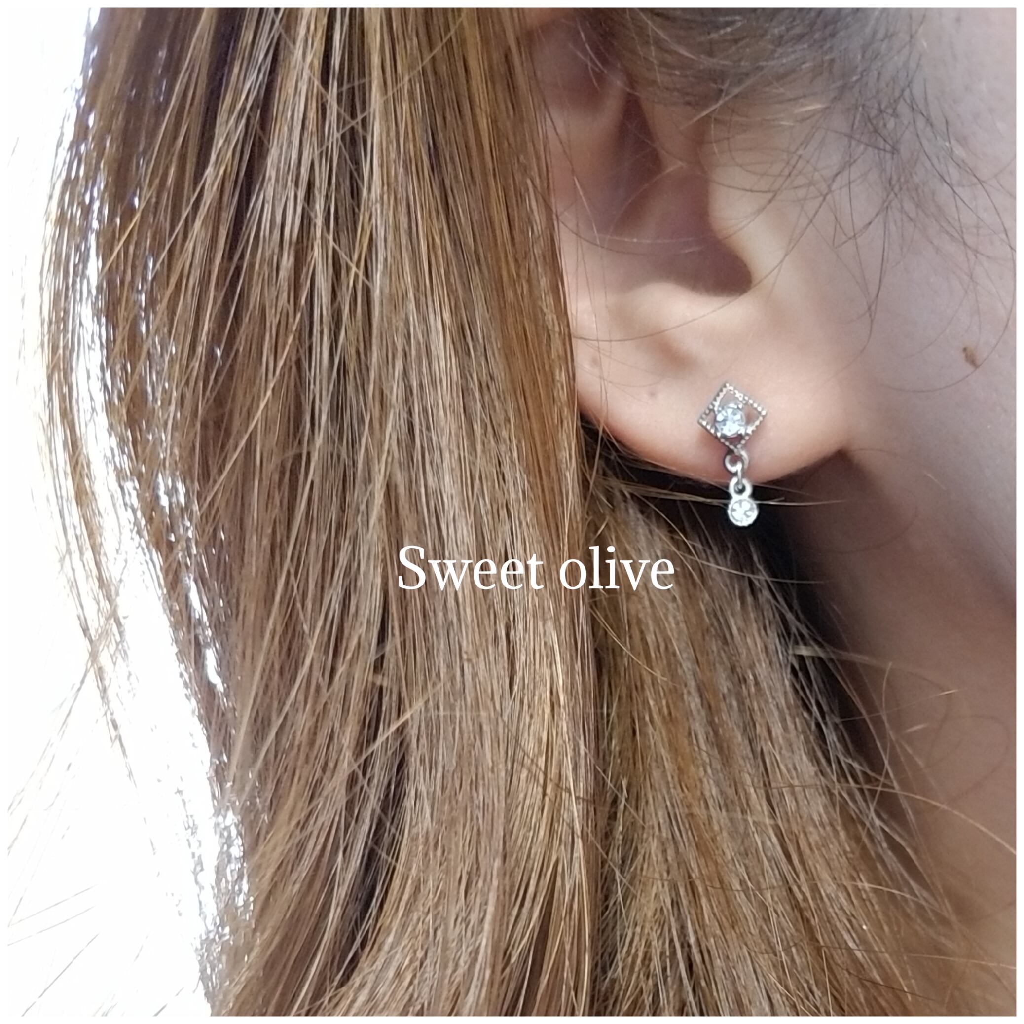 スクエアの中央にカットガラスを使い、一粒キラッと輝くシンプルなピアスに仕上げました♪