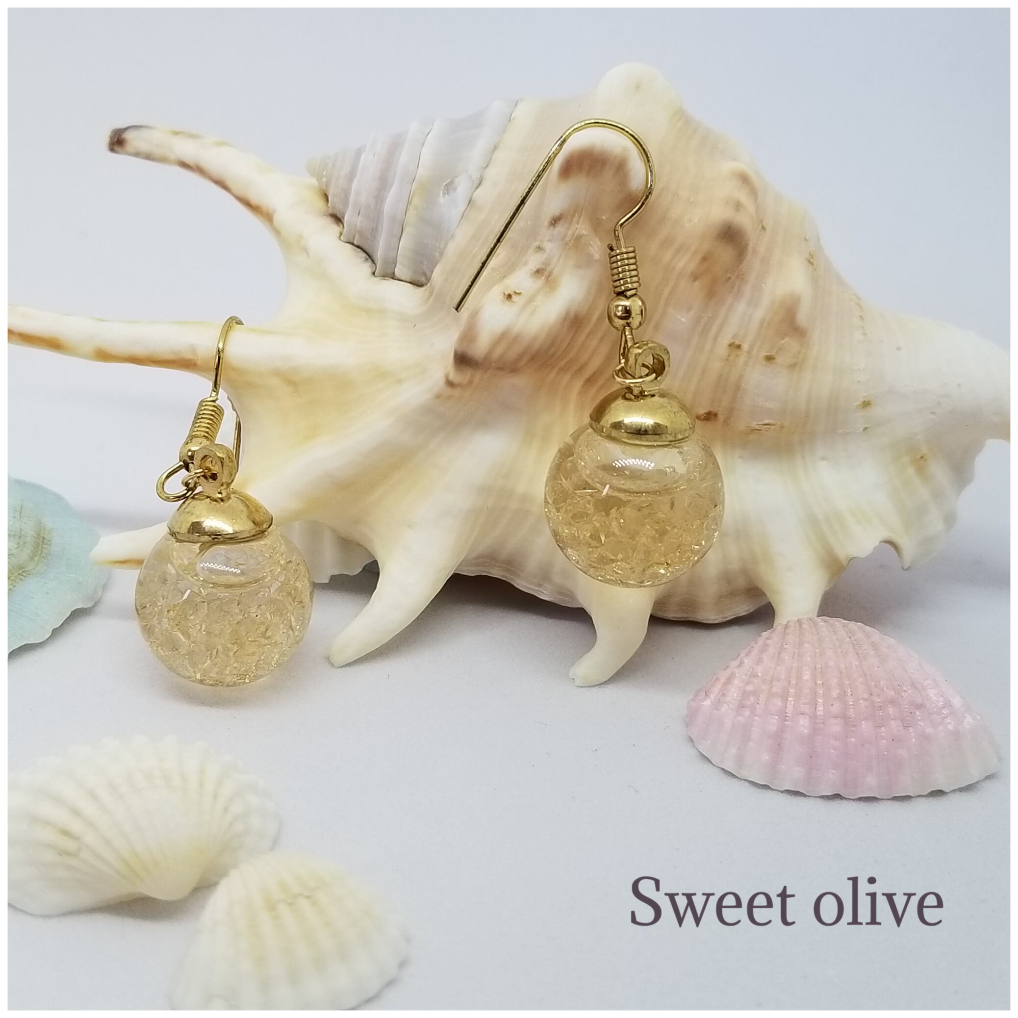 ベージュ色やゴールド色に見えるカットガラスを使用し、太陽や光に当たるとキラキラ輝きます☆