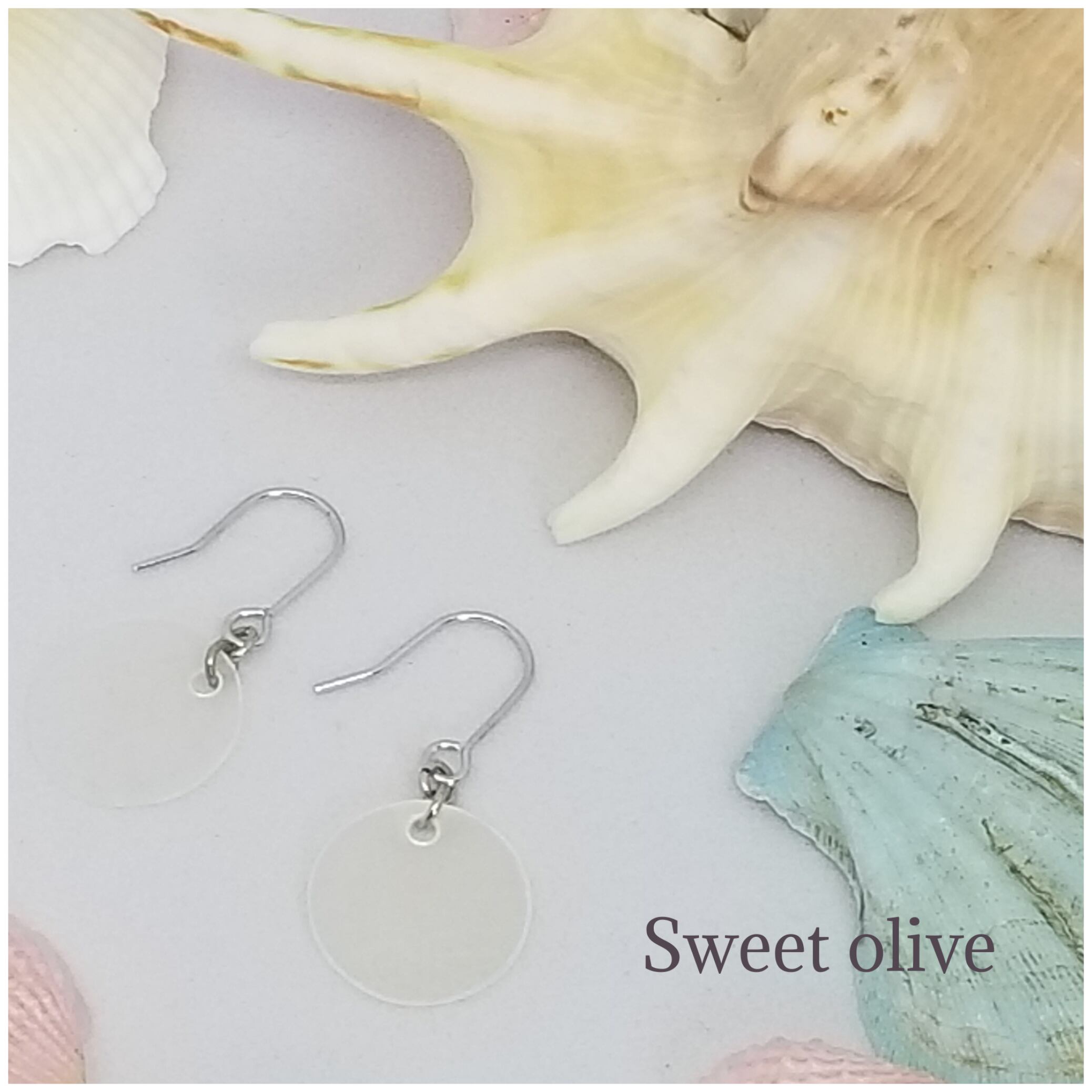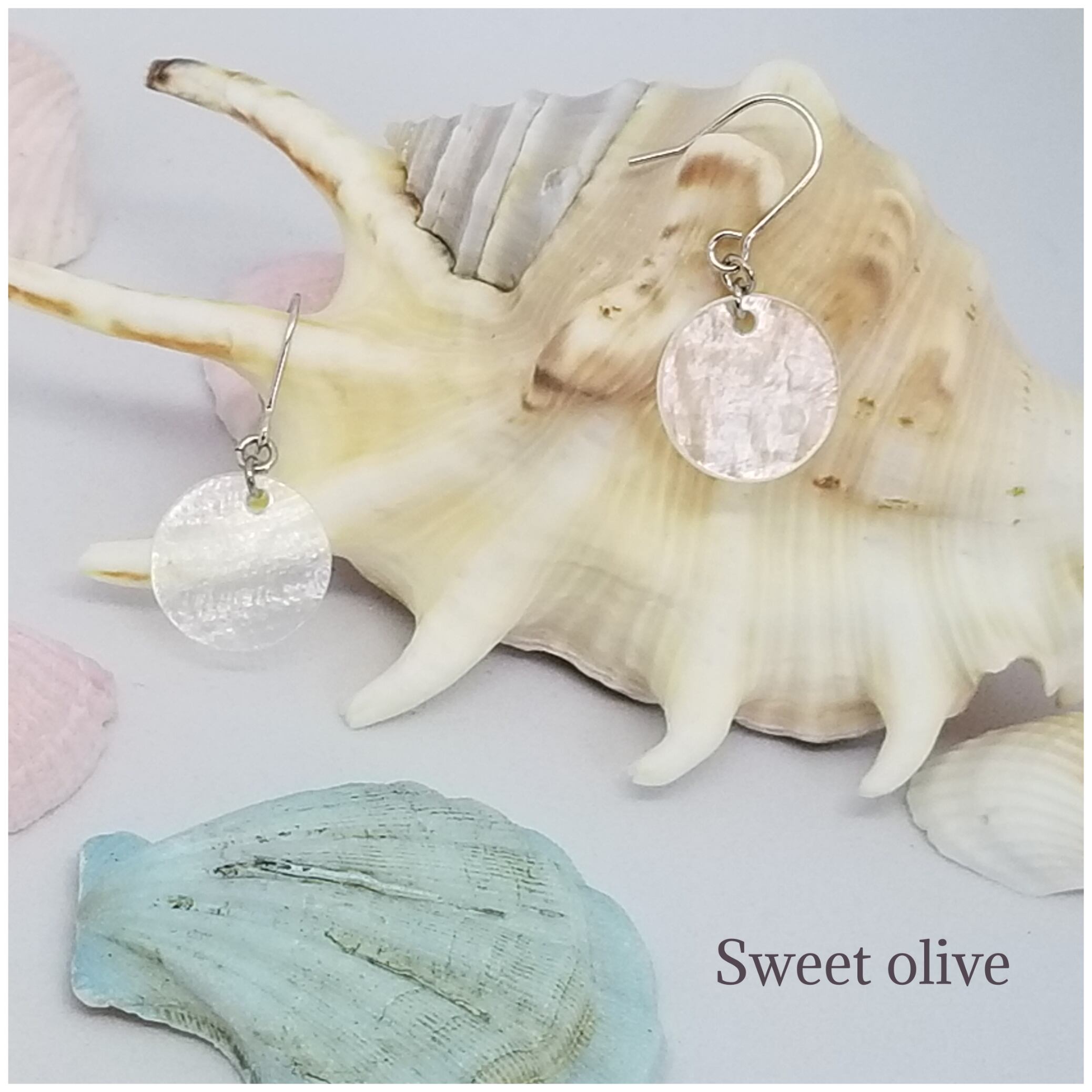 ホワイトシェルのシンプルピアス
