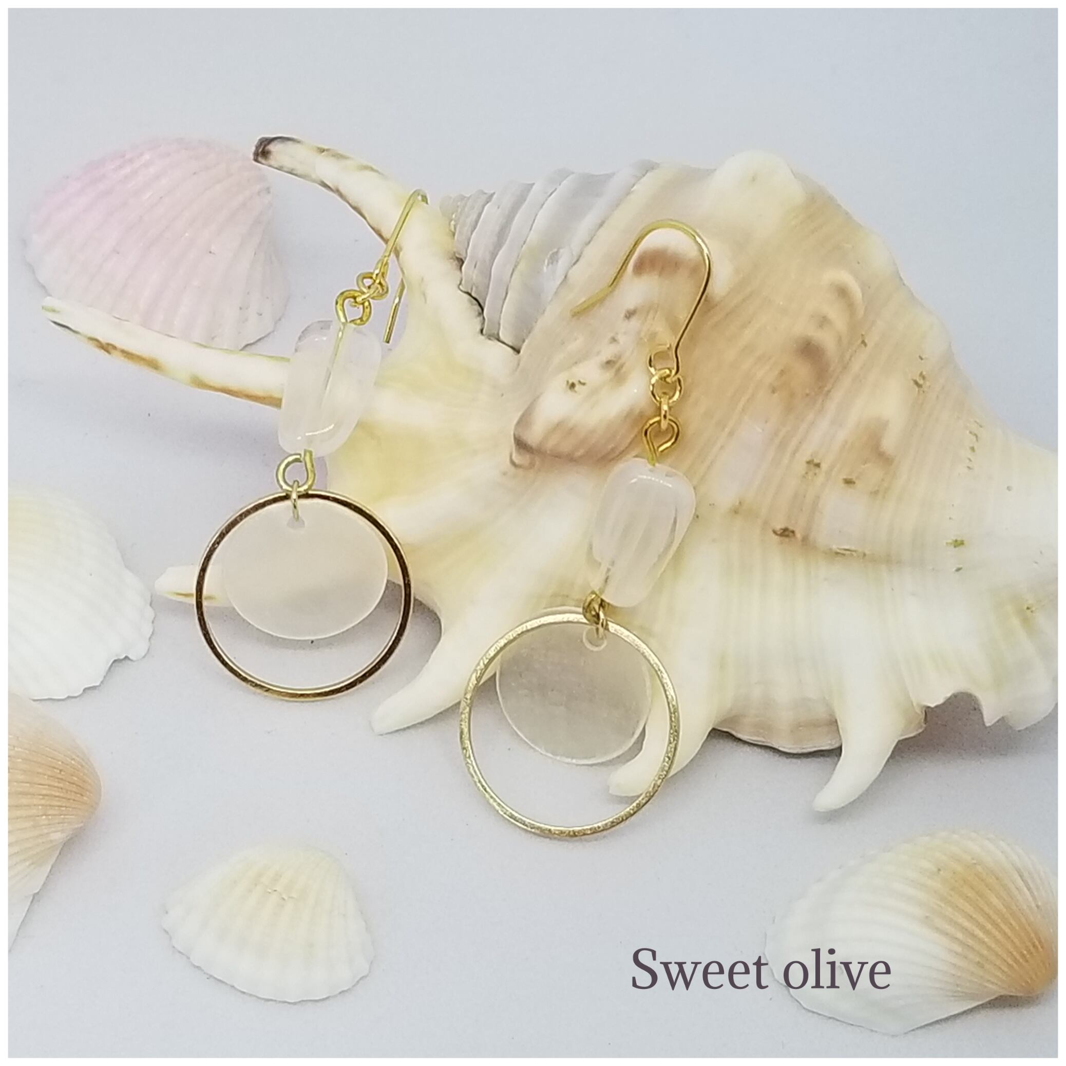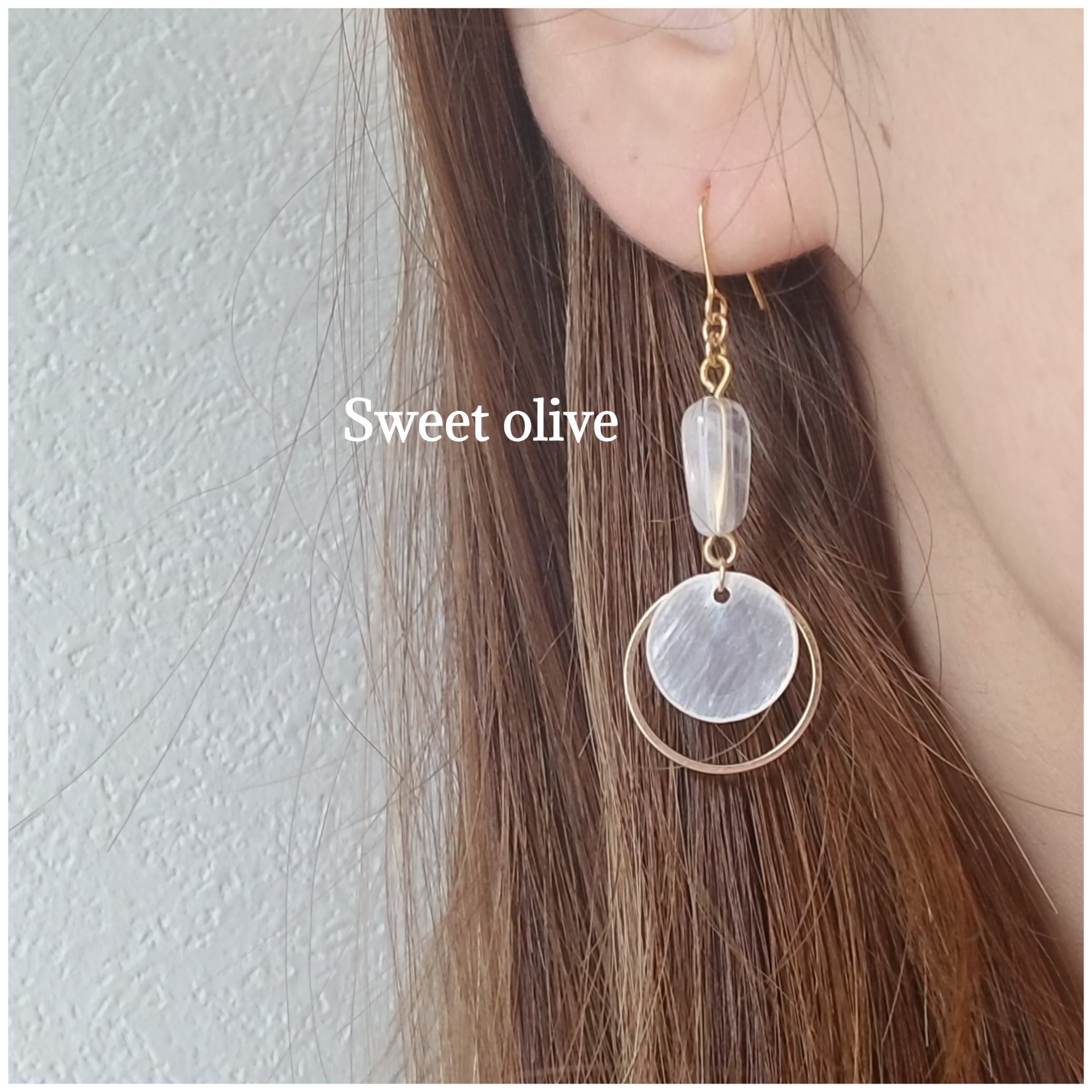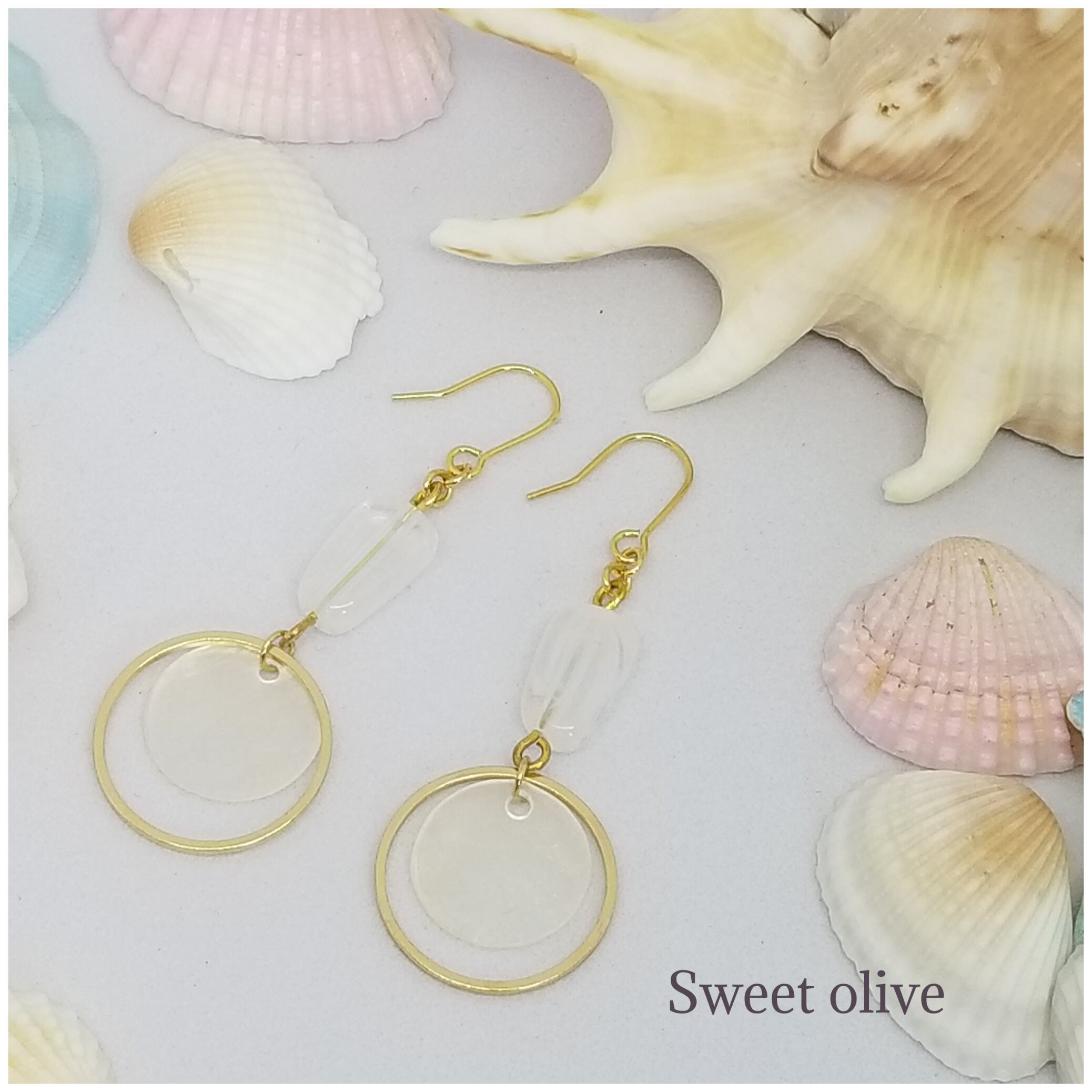 ホワイトストーンとホワイトシェルサークルのピアスです☆夏らしく涼しく軽さ重視で作りました♪