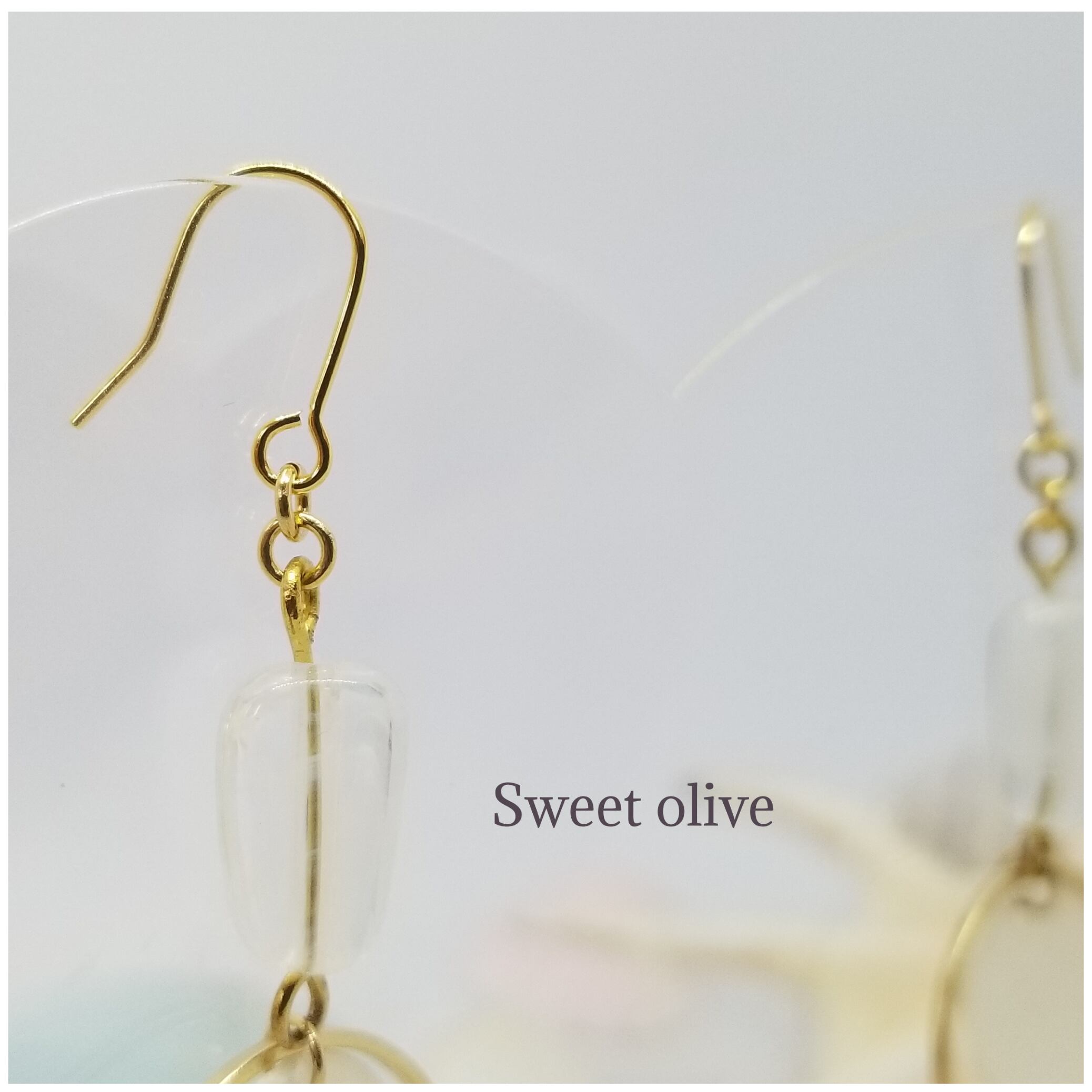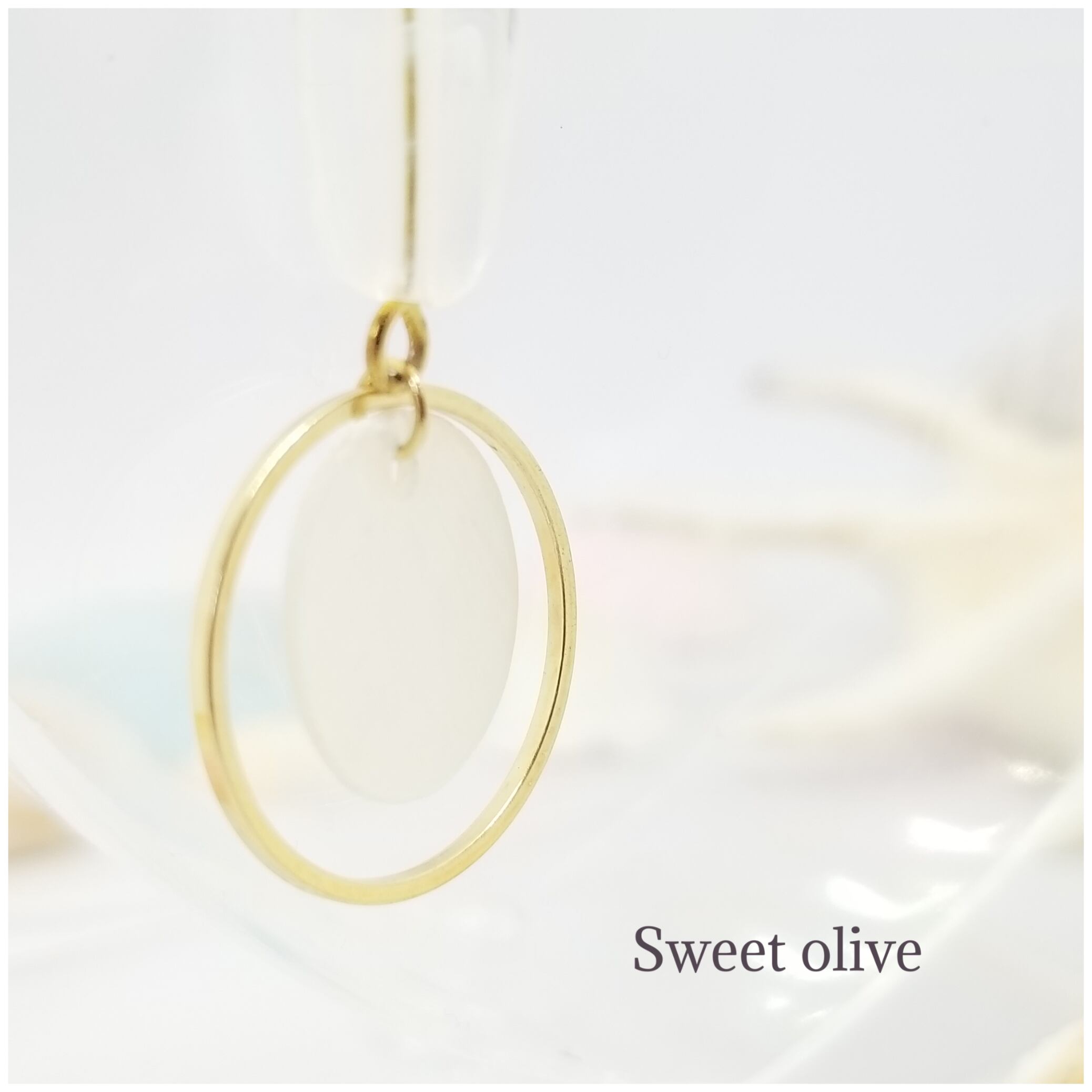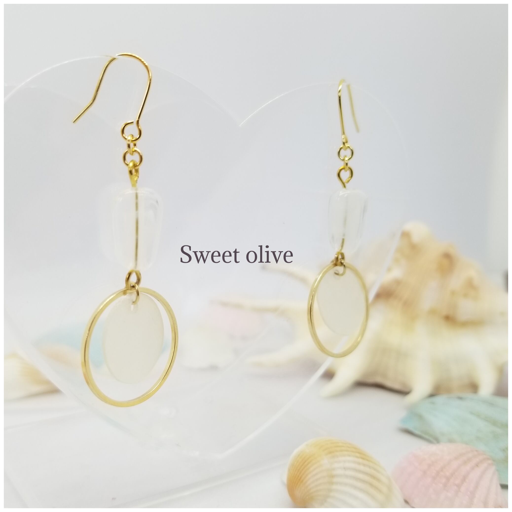 ホワイトストーンとホワイトシェルサークルのピアスです☆夏らしく涼しく軽さ重視で作りました♪
