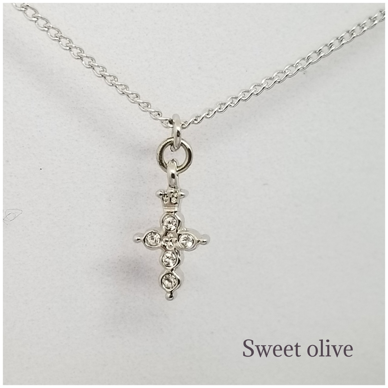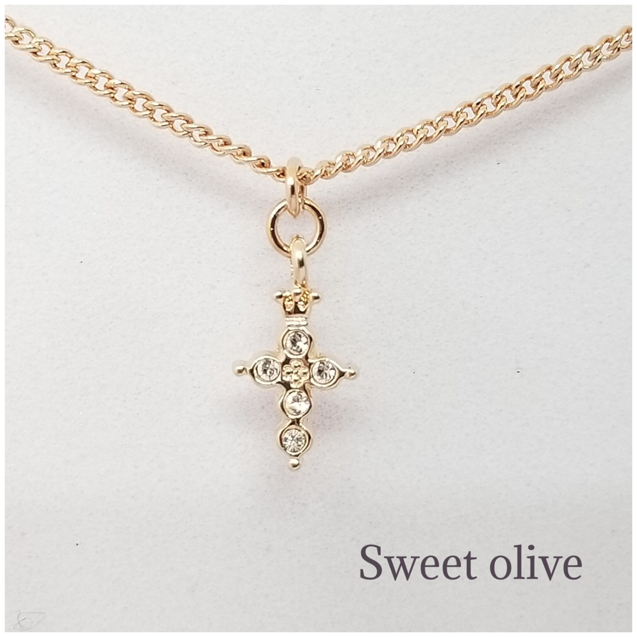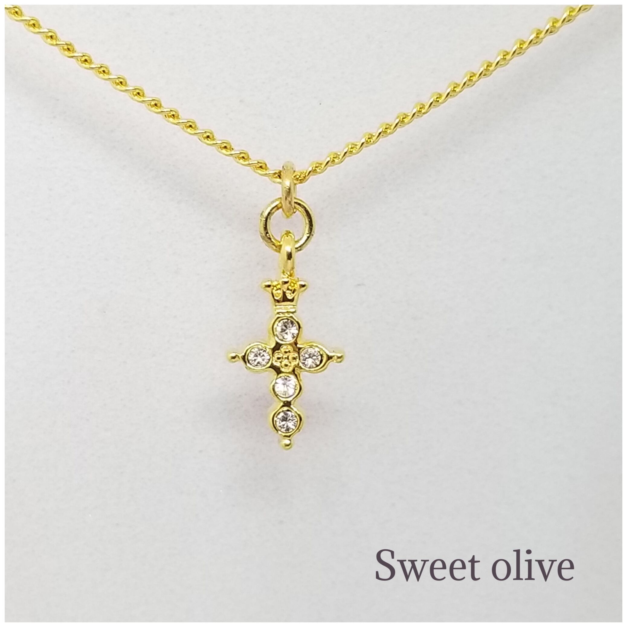 小さなクラウンモチーフが施されたクロスにスワロフスキー・クリスタルが埋め込まれています。