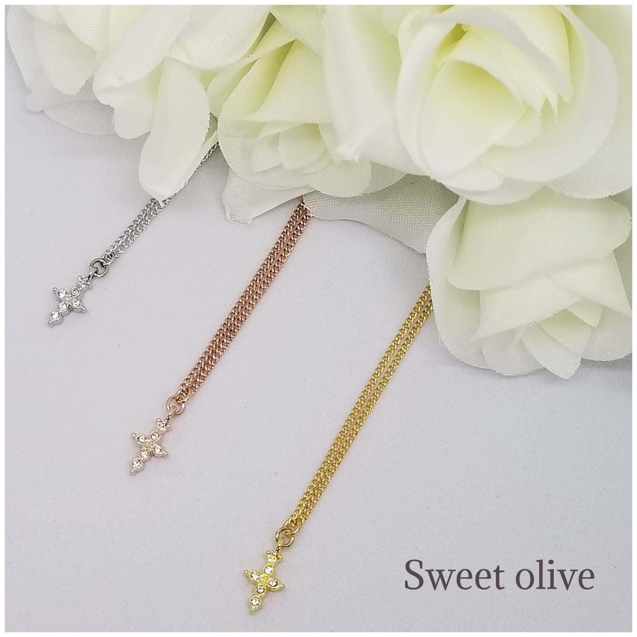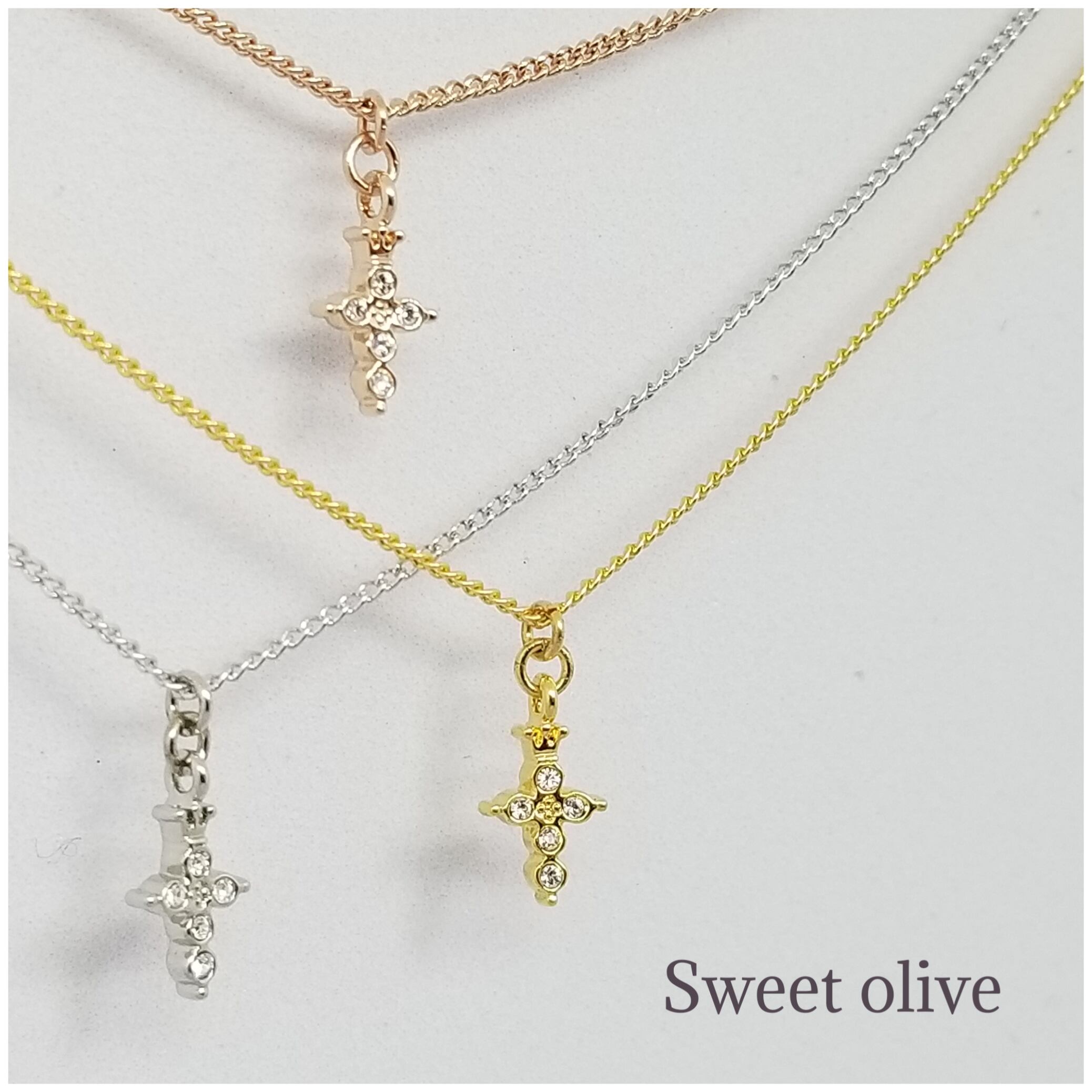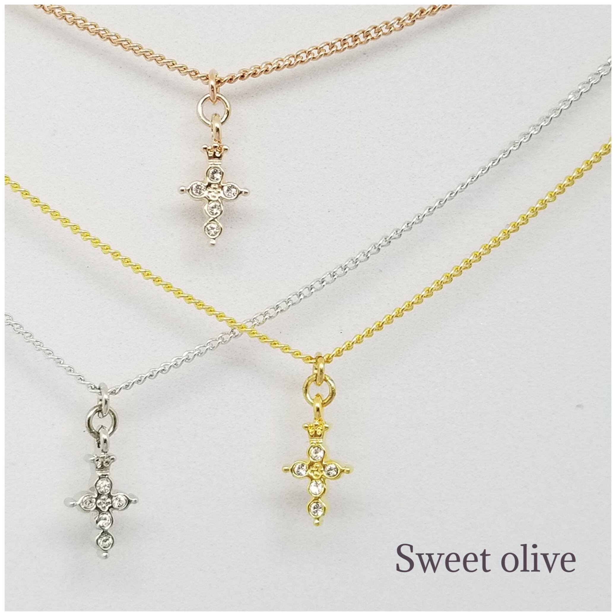 小さなクラウンモチーフが施されたクロスにスワロフスキー・クリスタルが埋め込まれています。