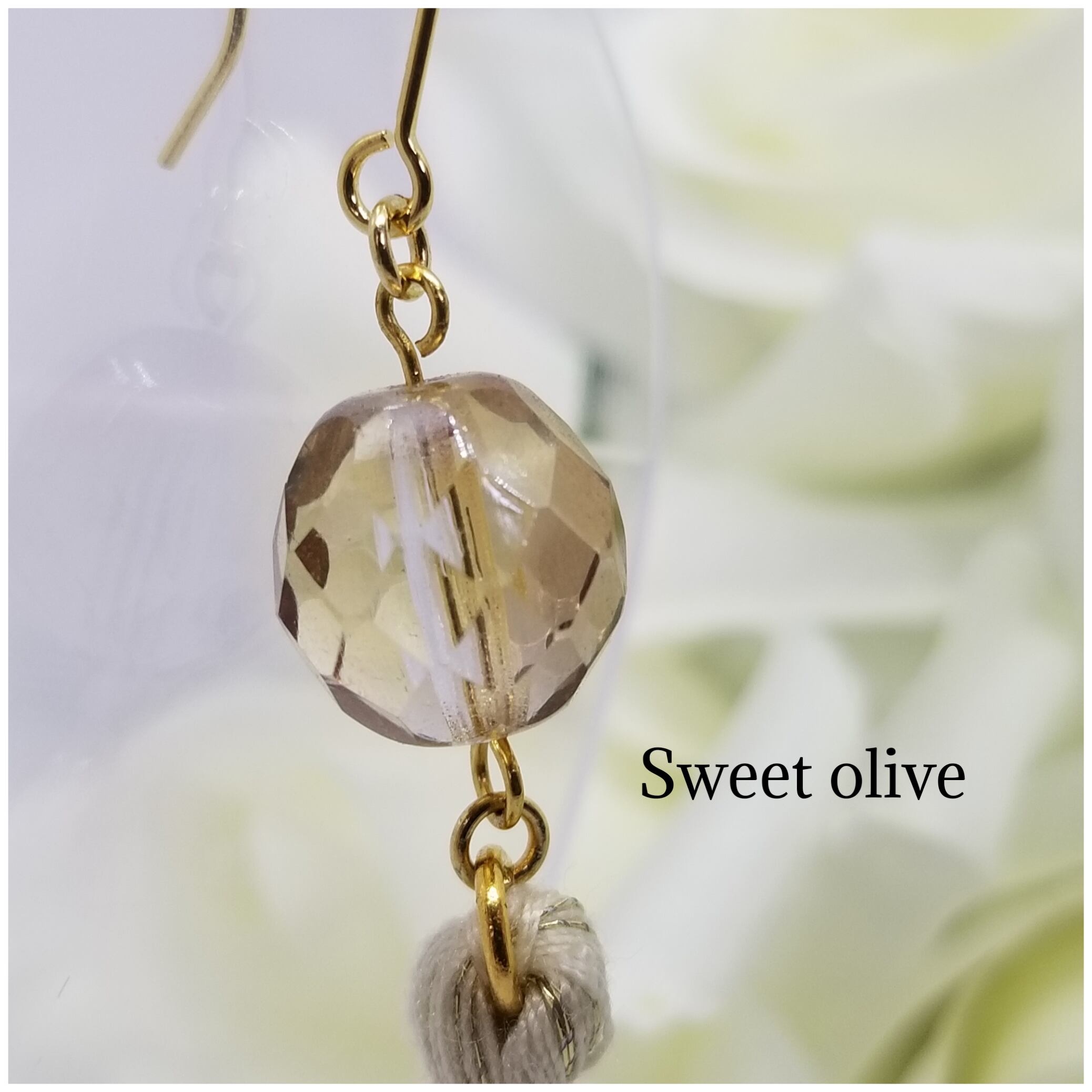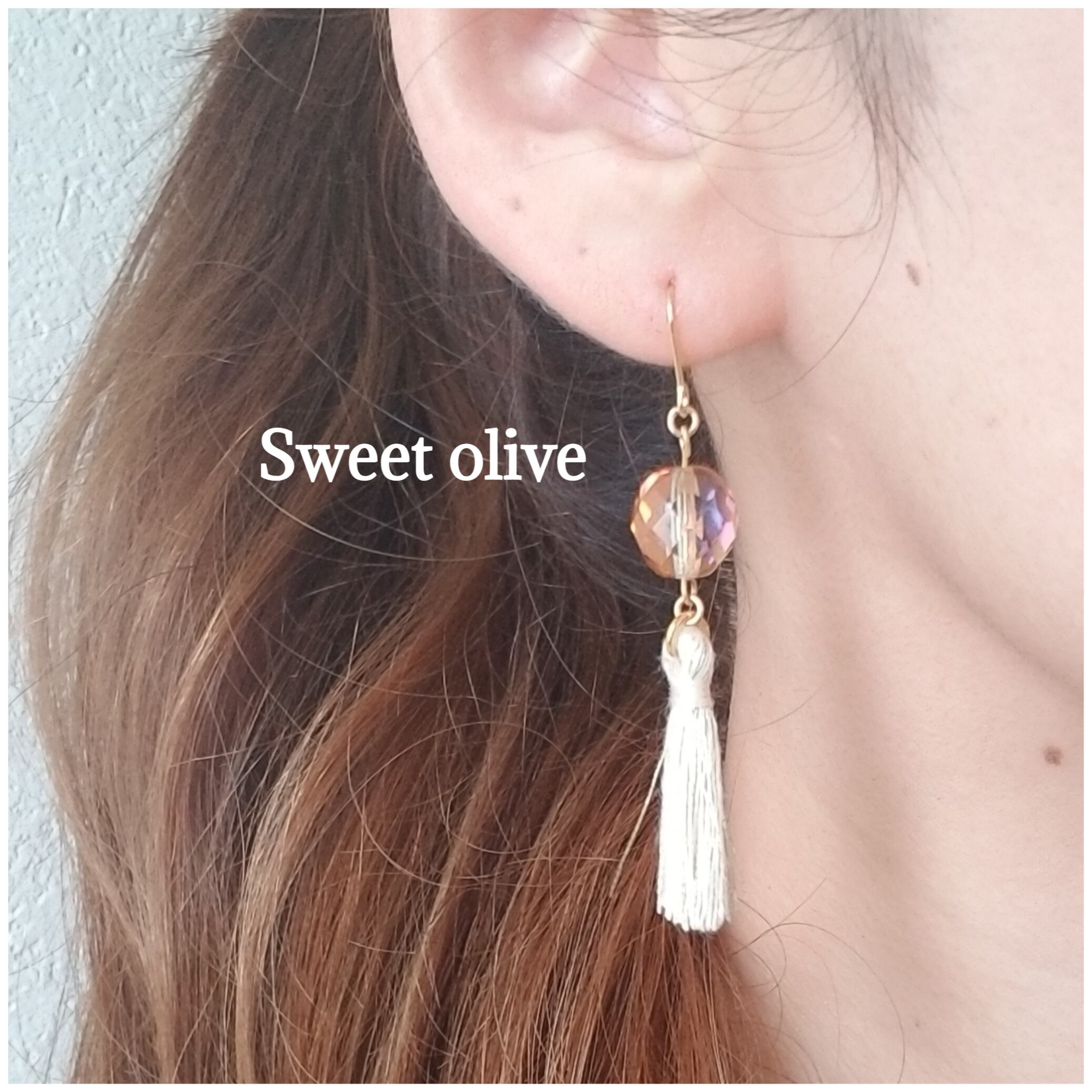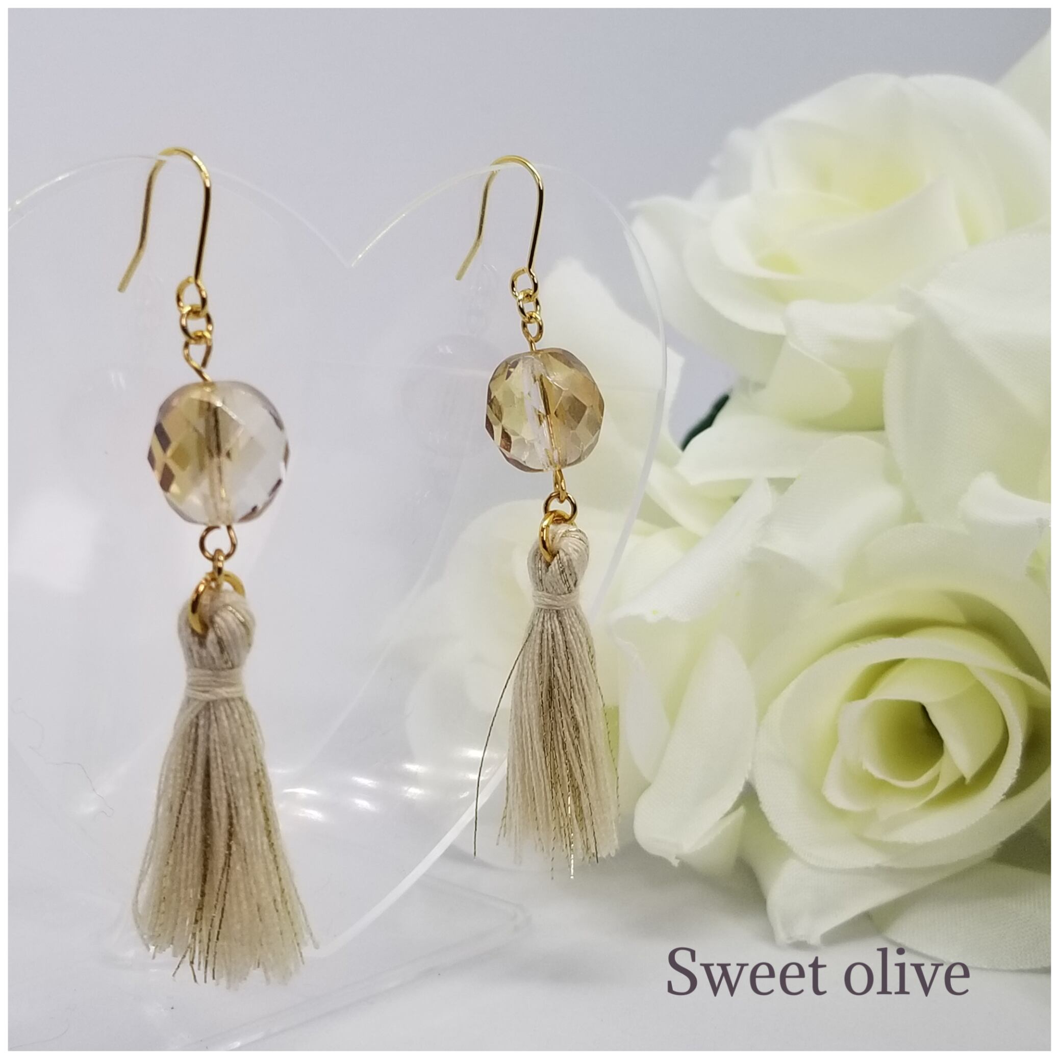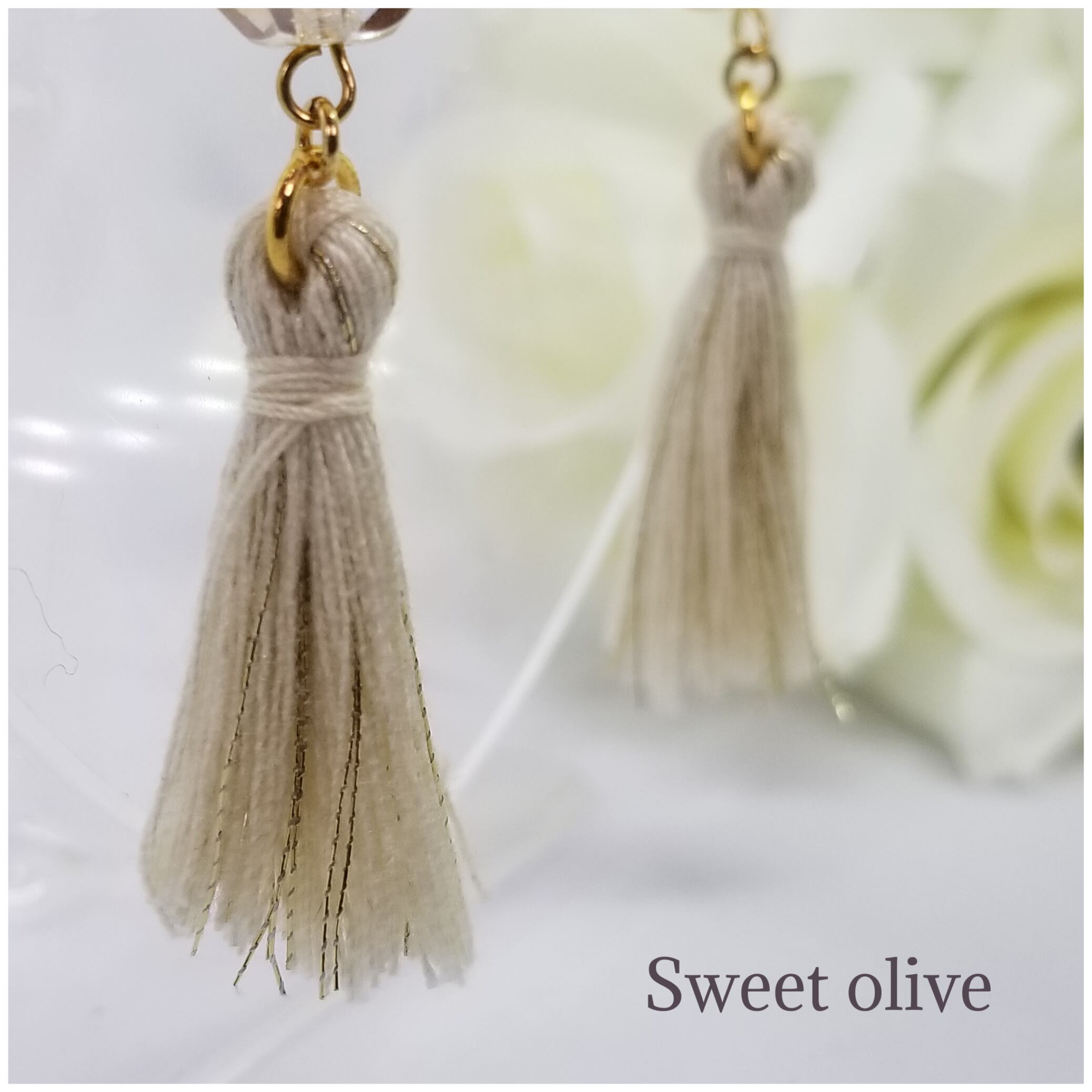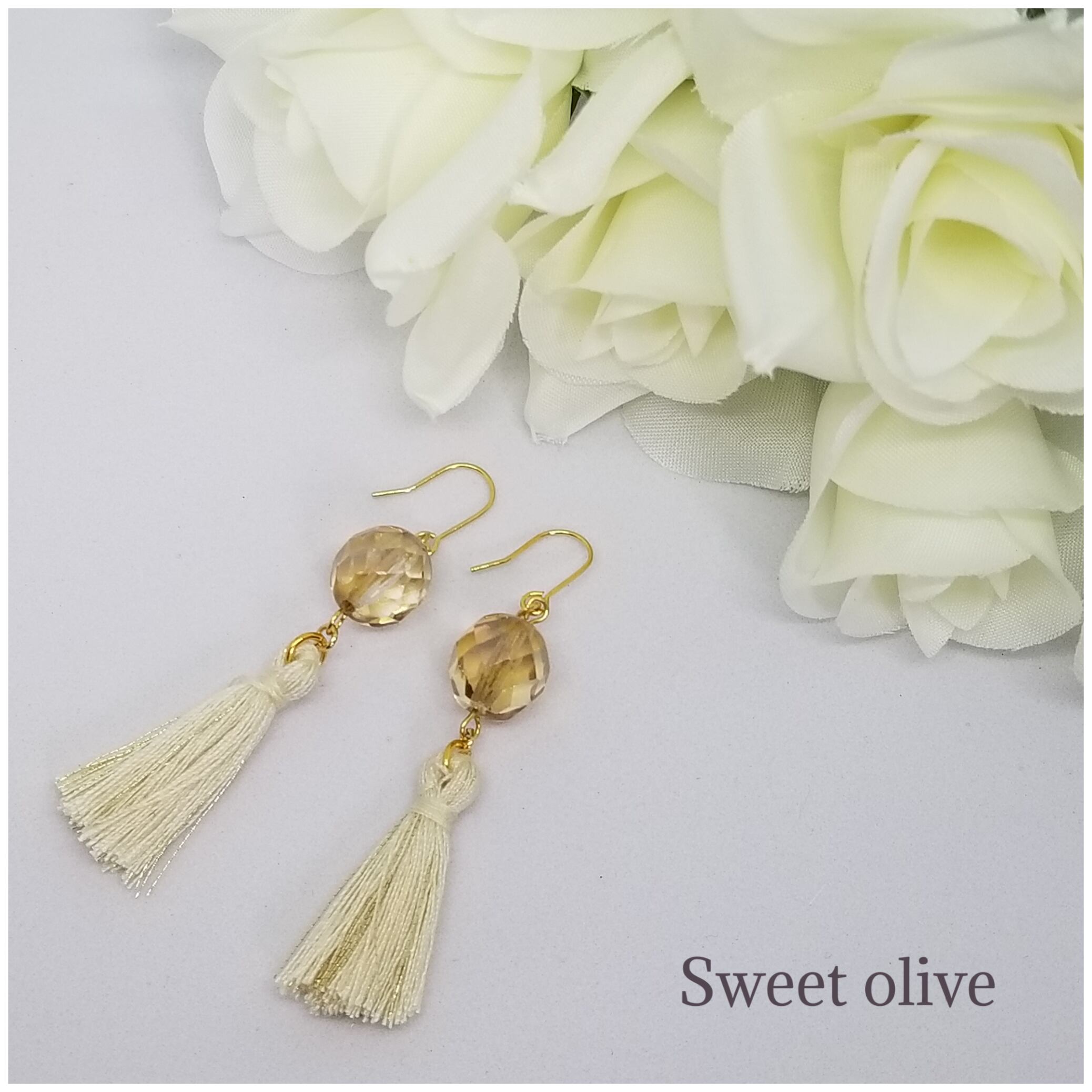 キャメルのチェコビーズとベージュのタッセルを組み合わせて作った可愛いいピアスです☆