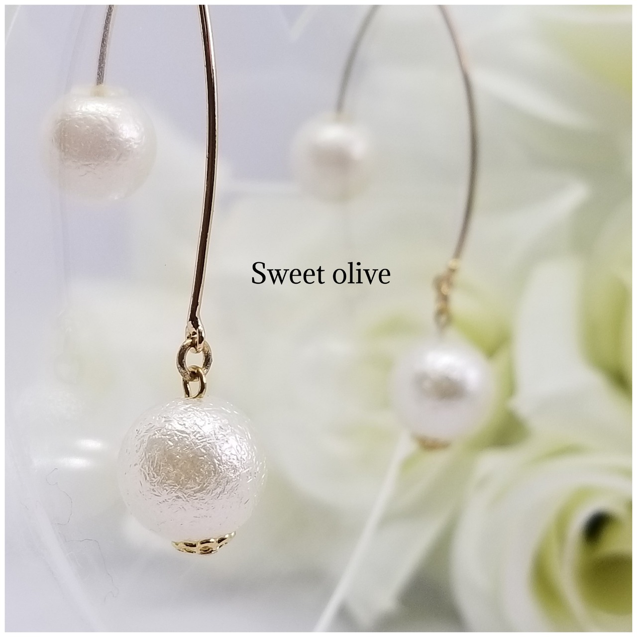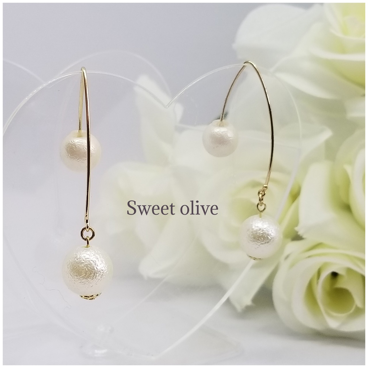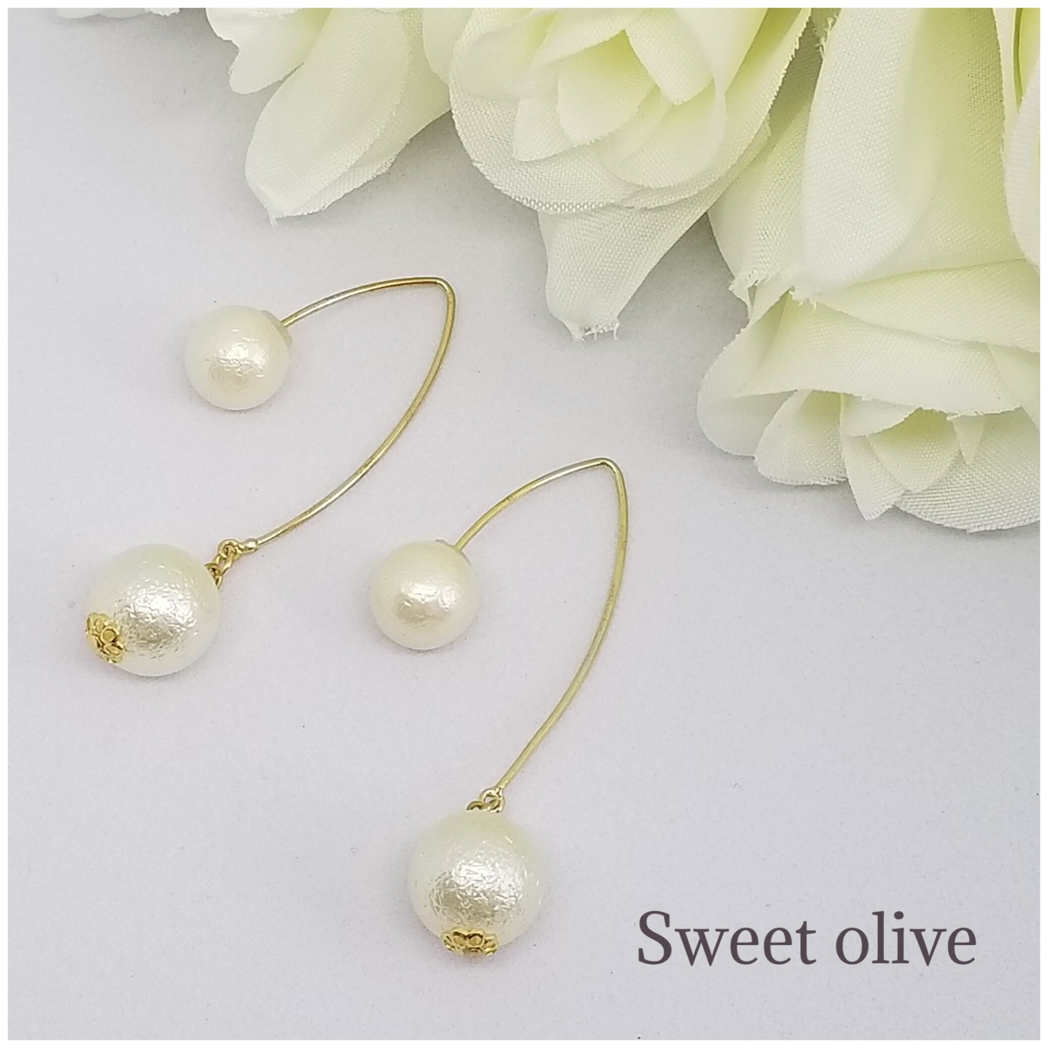 コロンとゆらゆら揺れるコットンパールが可愛いです♪さりげなく揺れるので上品。
