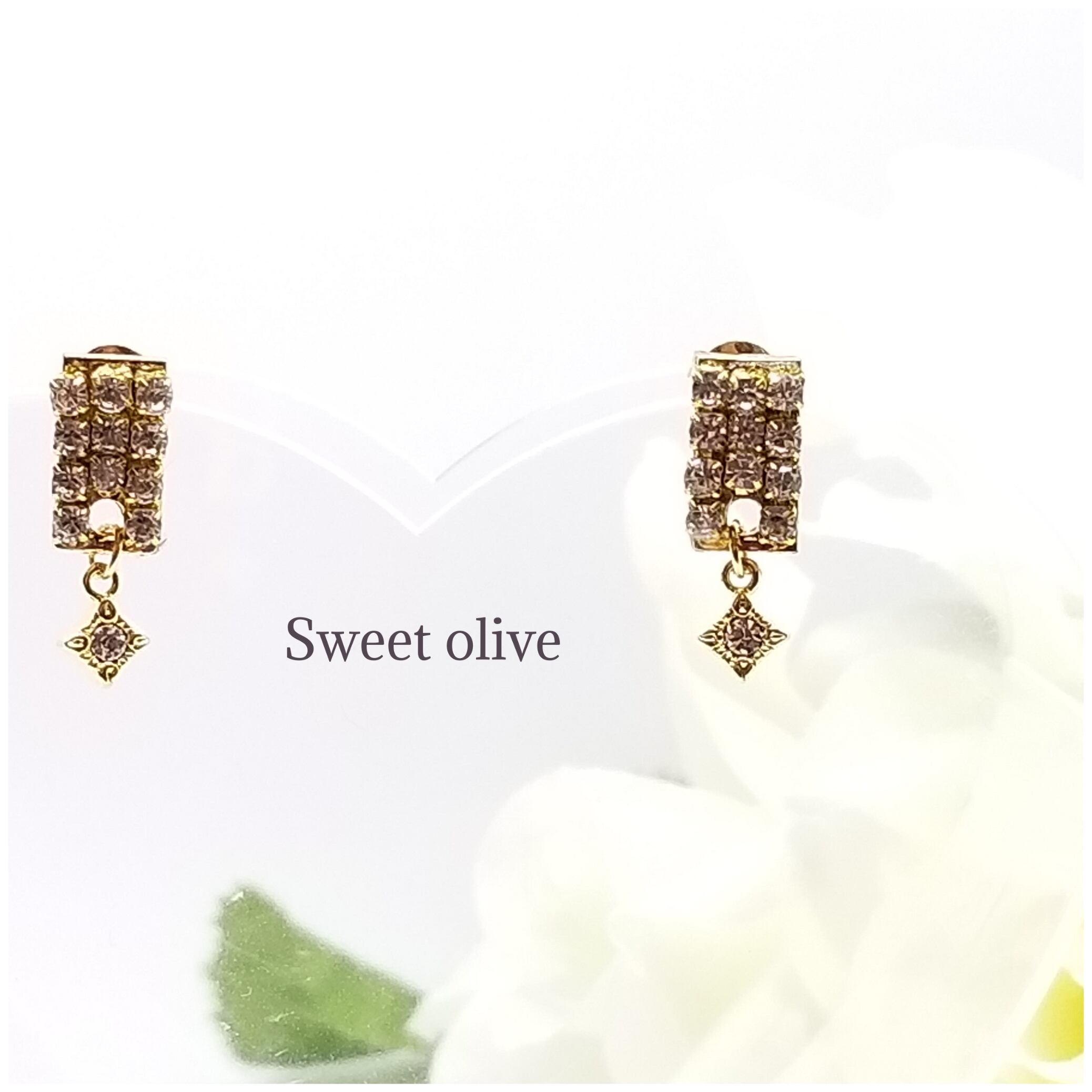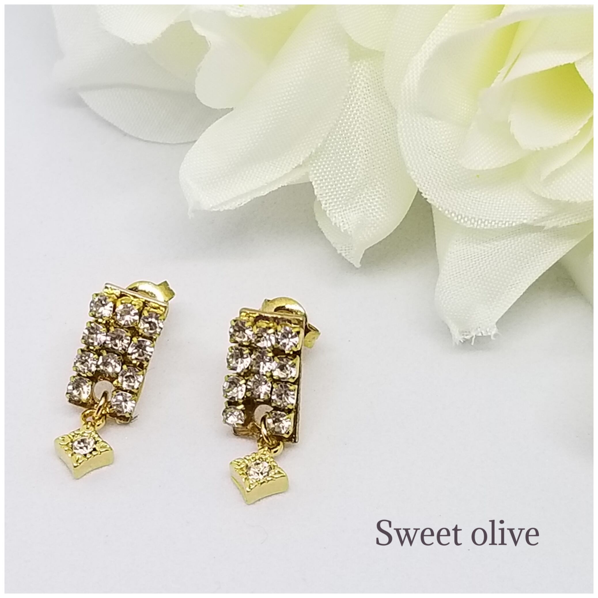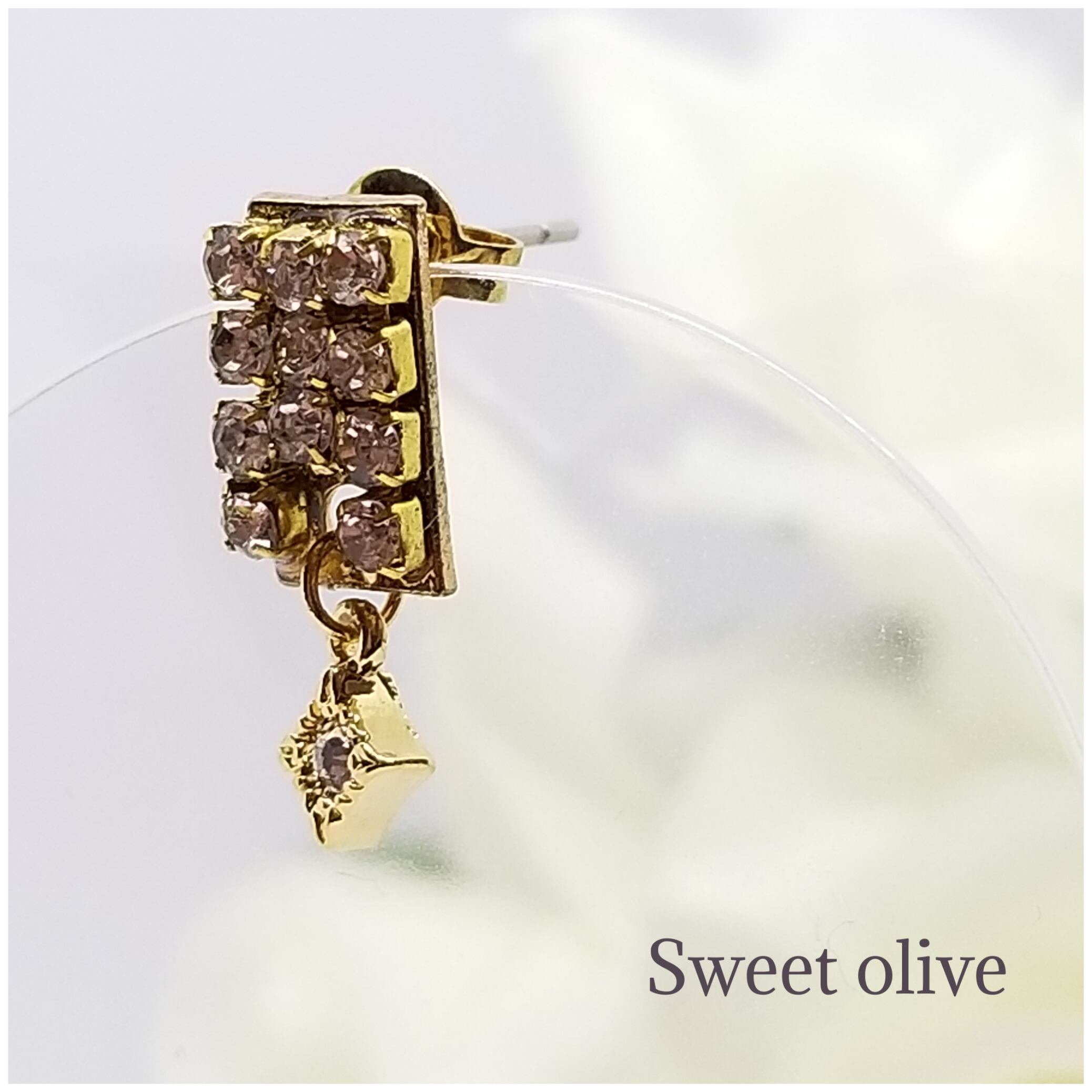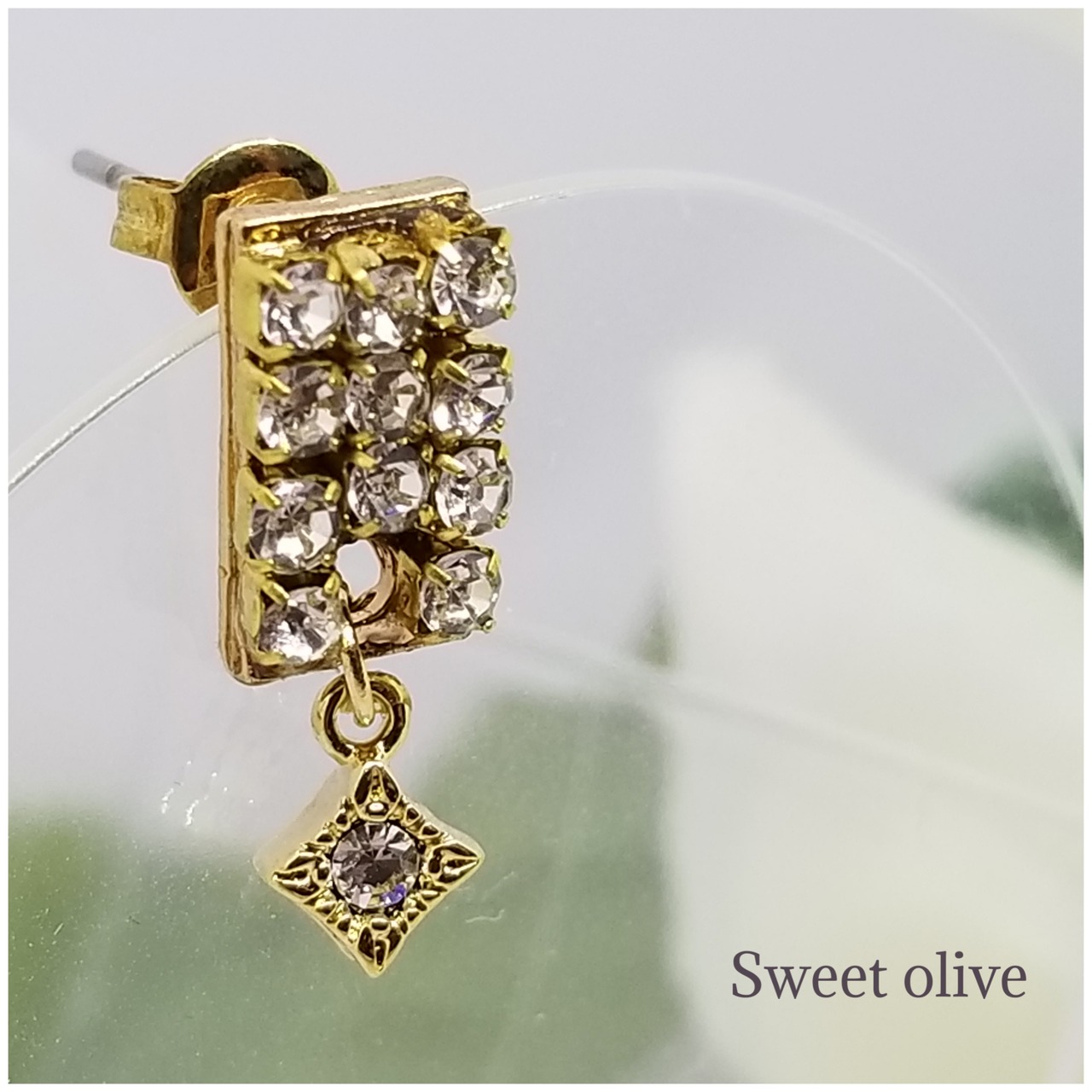 11粒の輝くカットガラスと一粒キラリと輝くダイヤカットガラスのピアス☆