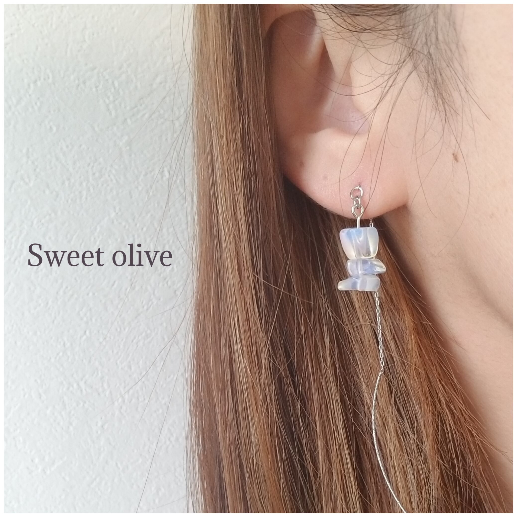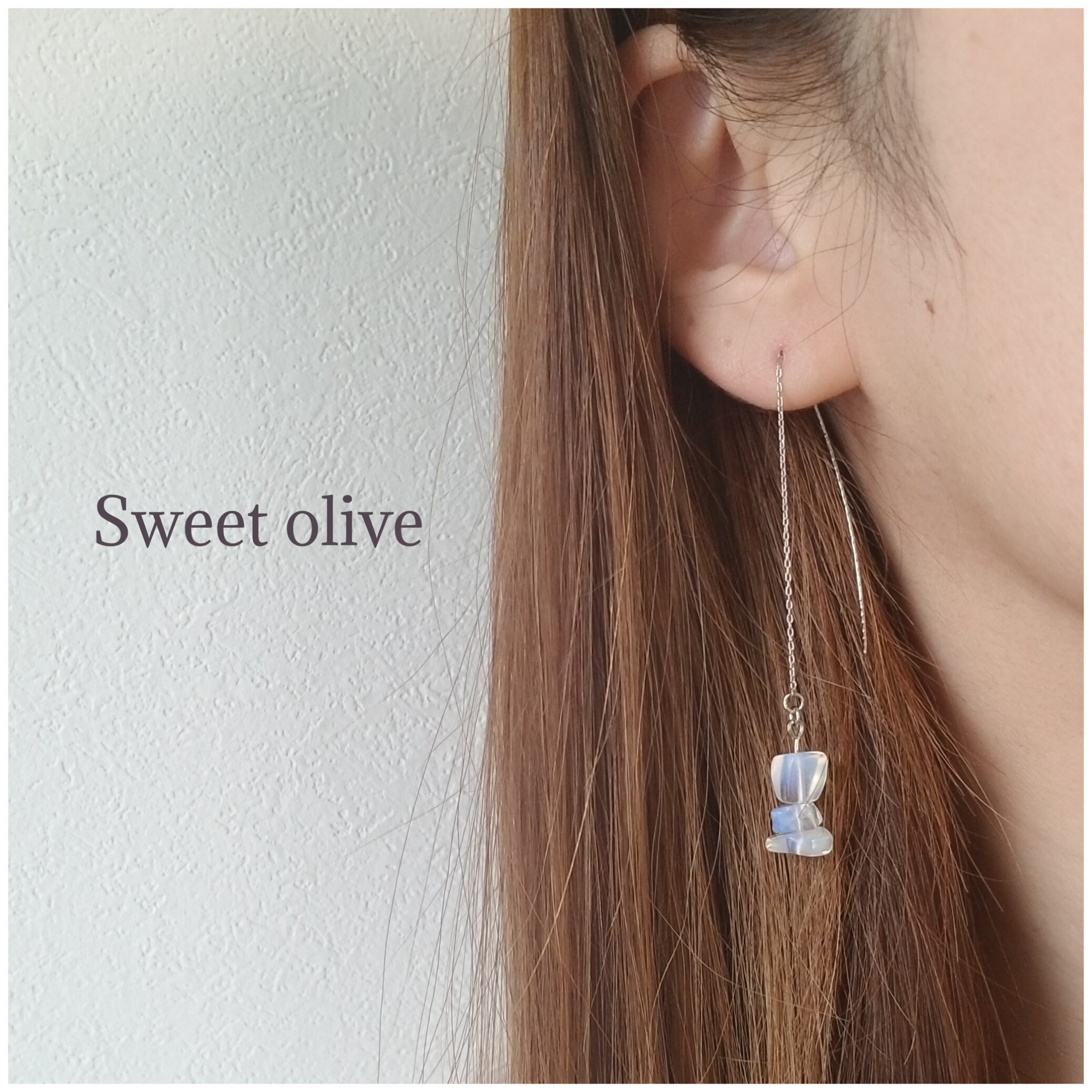 天然石のムーンストーンのさざれ石をアメリカンピアスにしました♪