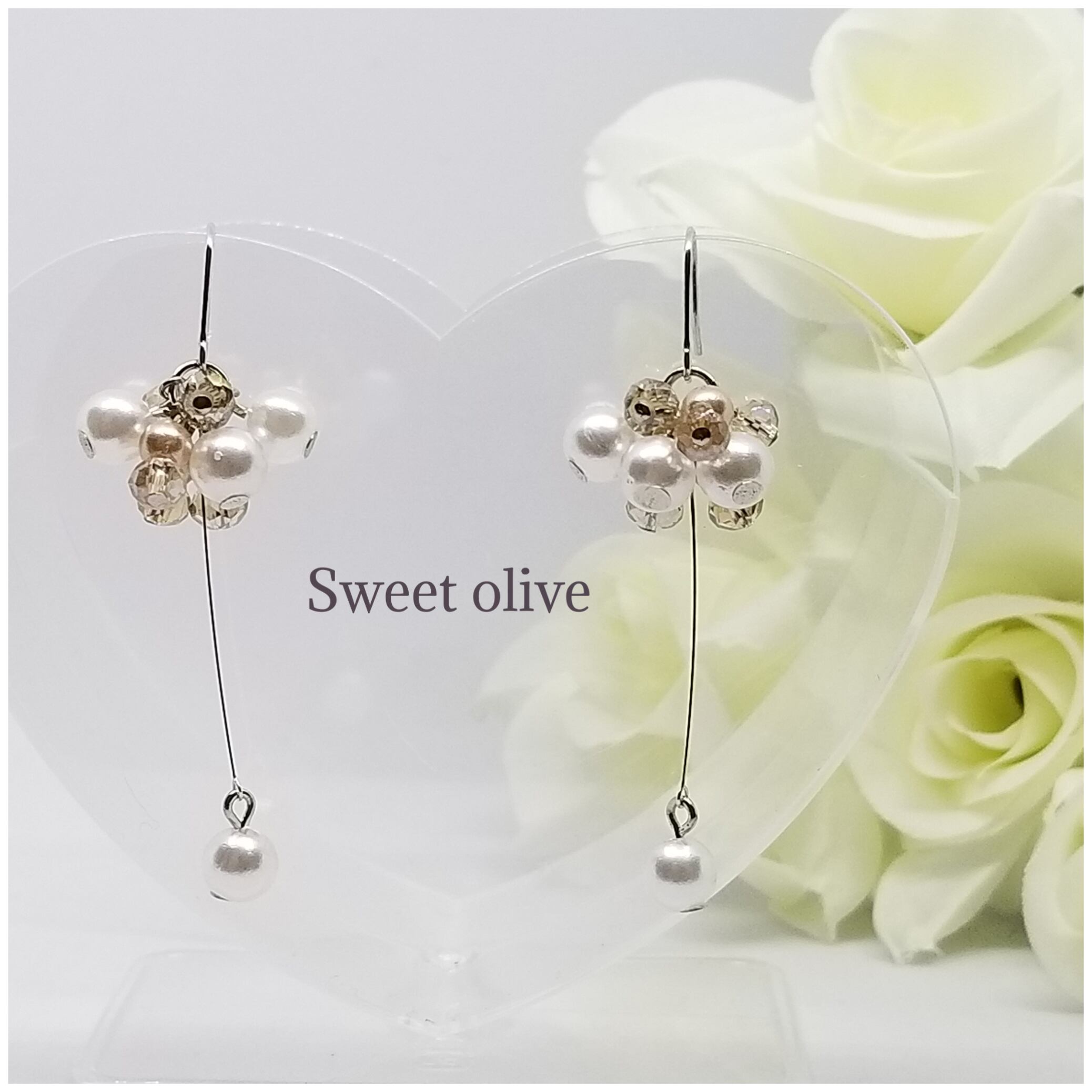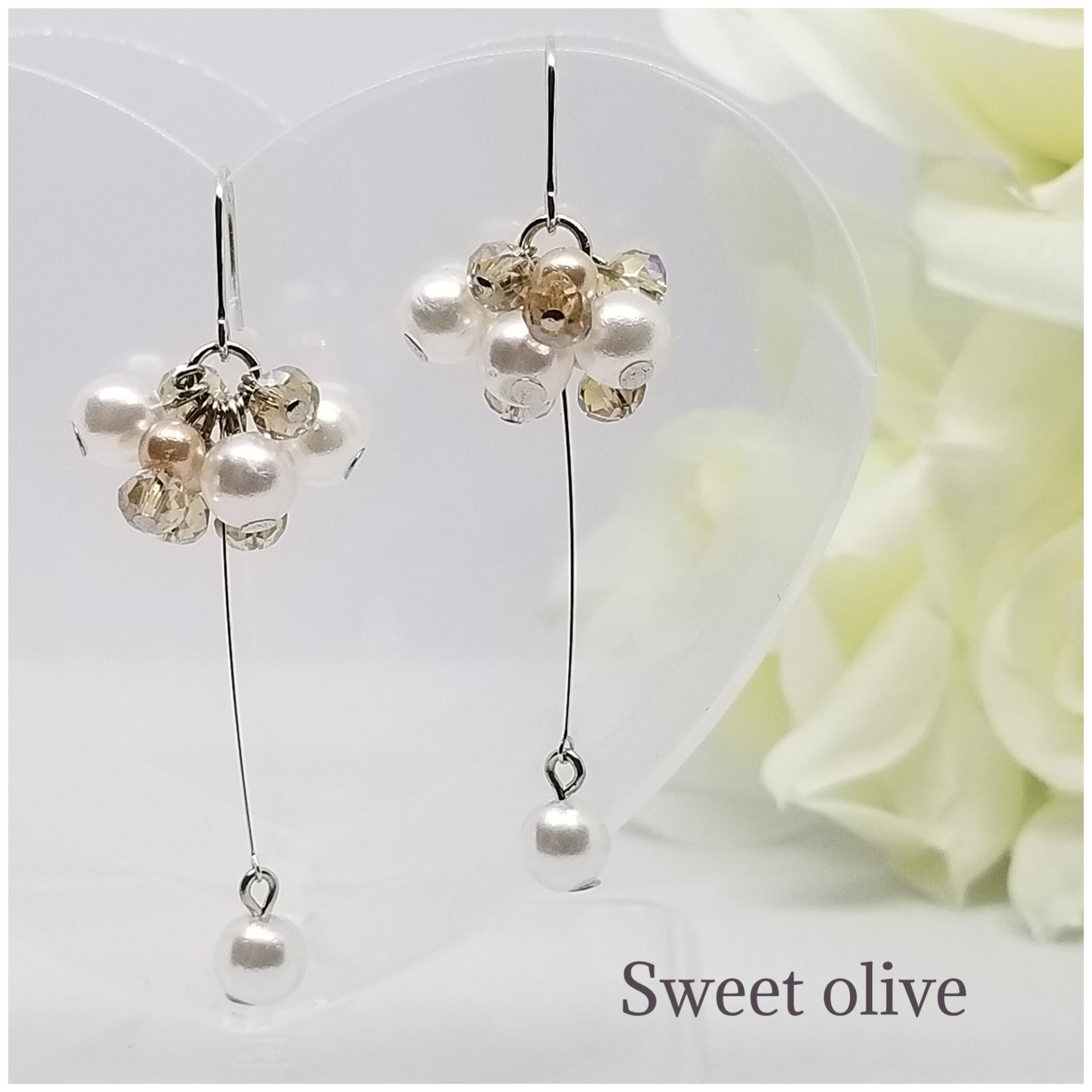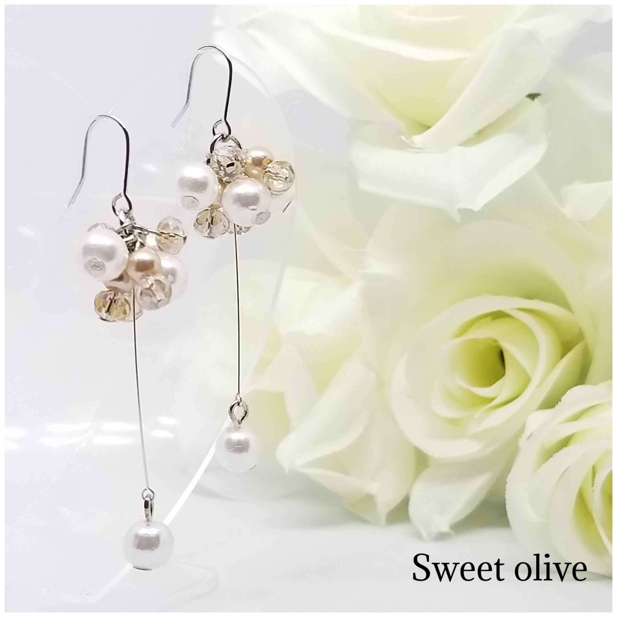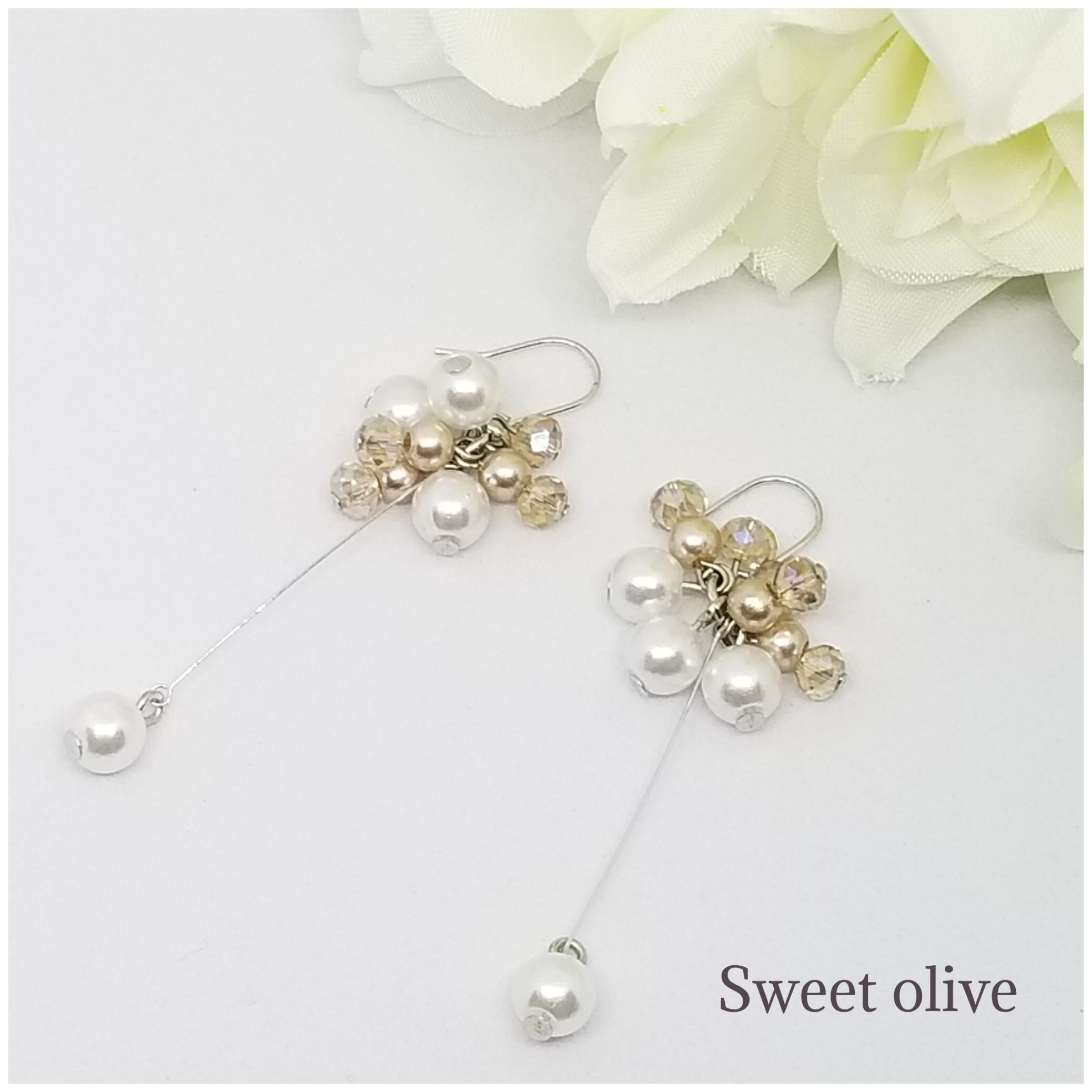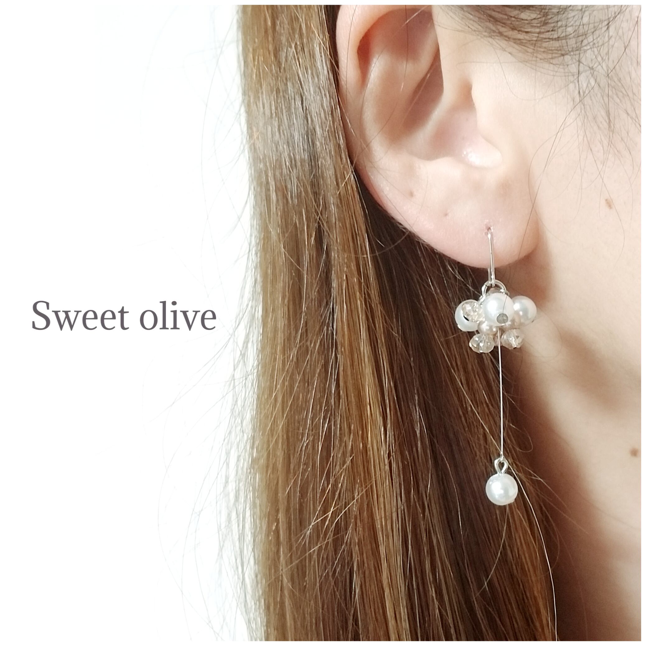 華奢なピアノ線を使用し、上品に揺れるパールがポイントにしました♪挙式、披露宴、デートに☆