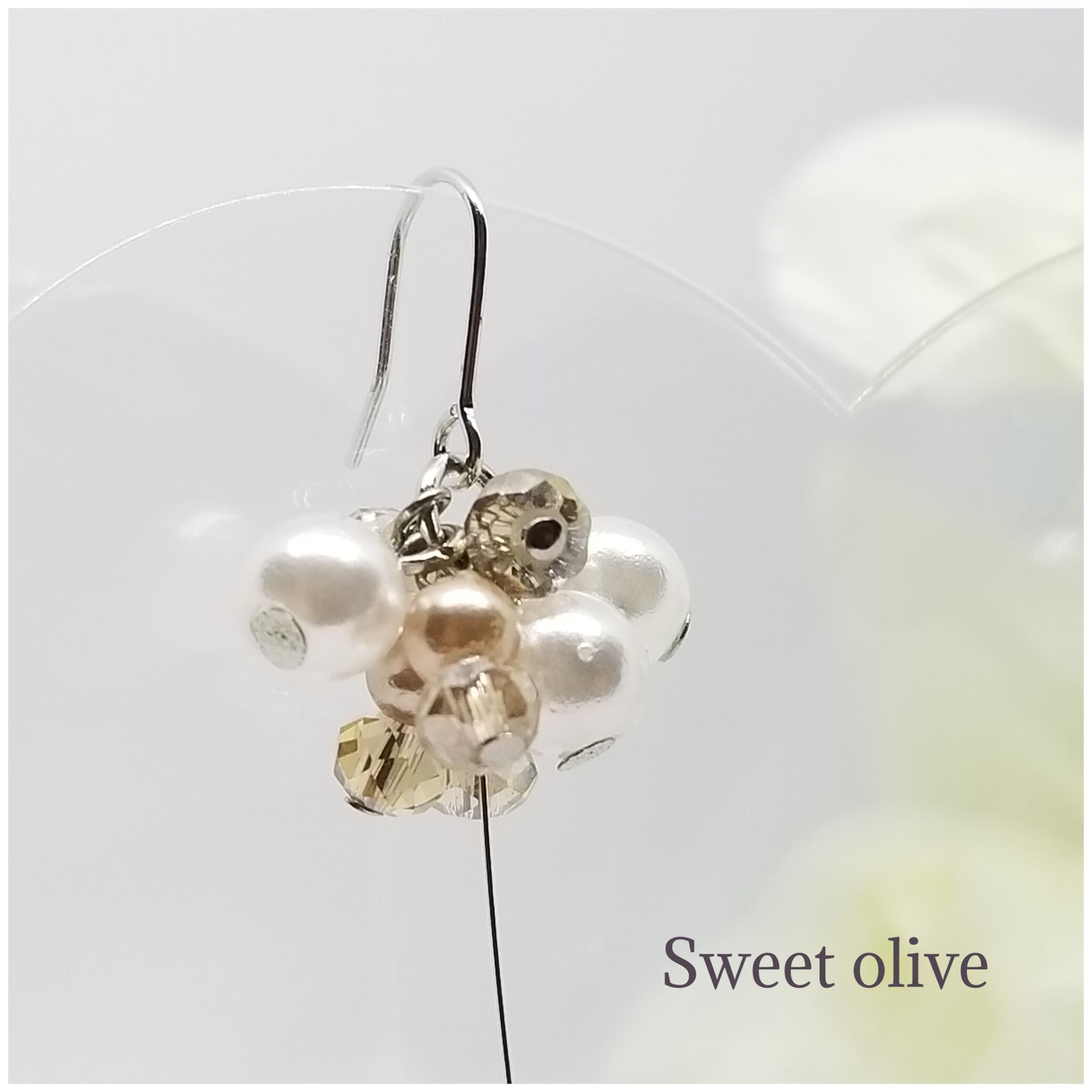 女性らしいホワイトパールとベージュのパールにライトブラウンのカットガラスを合わせました。