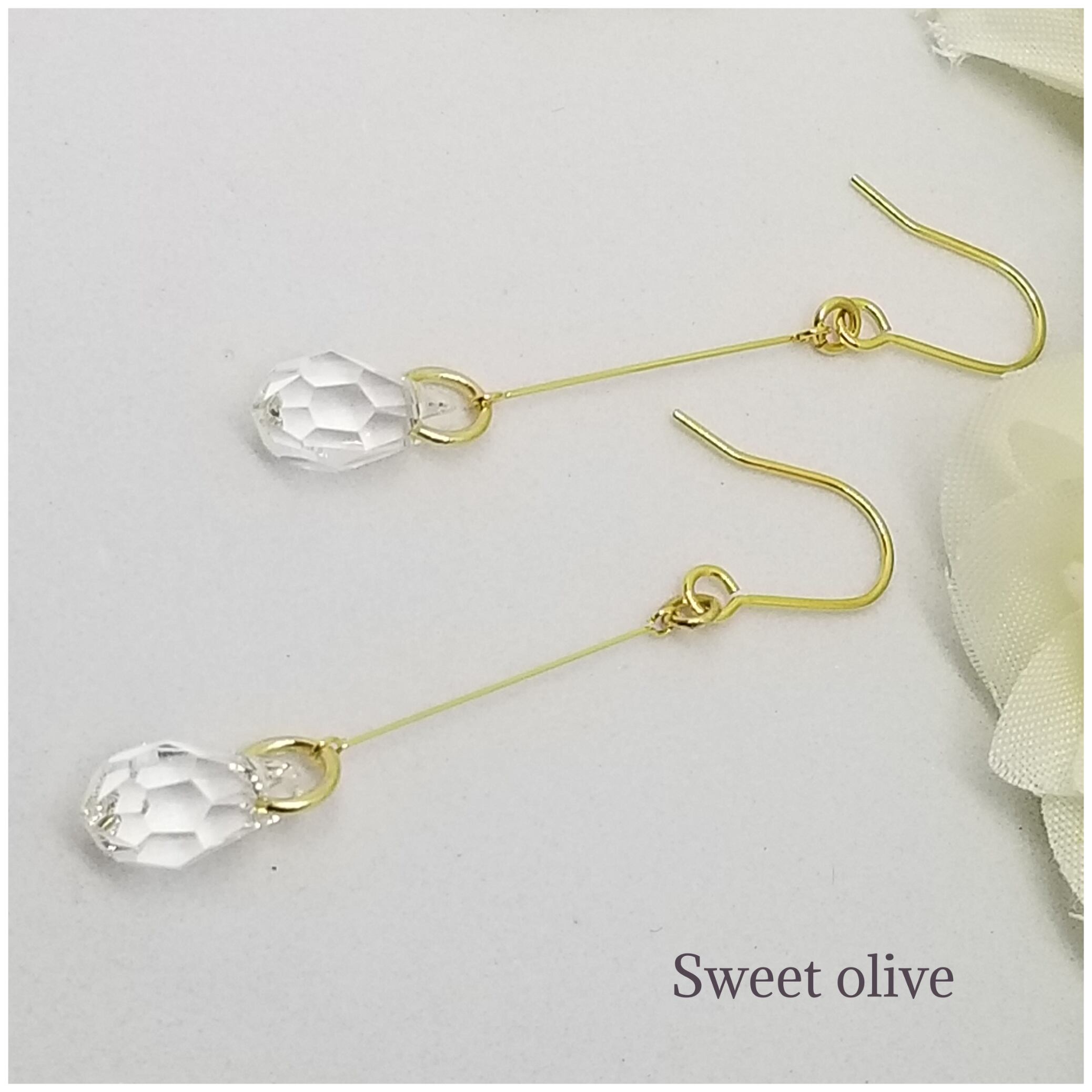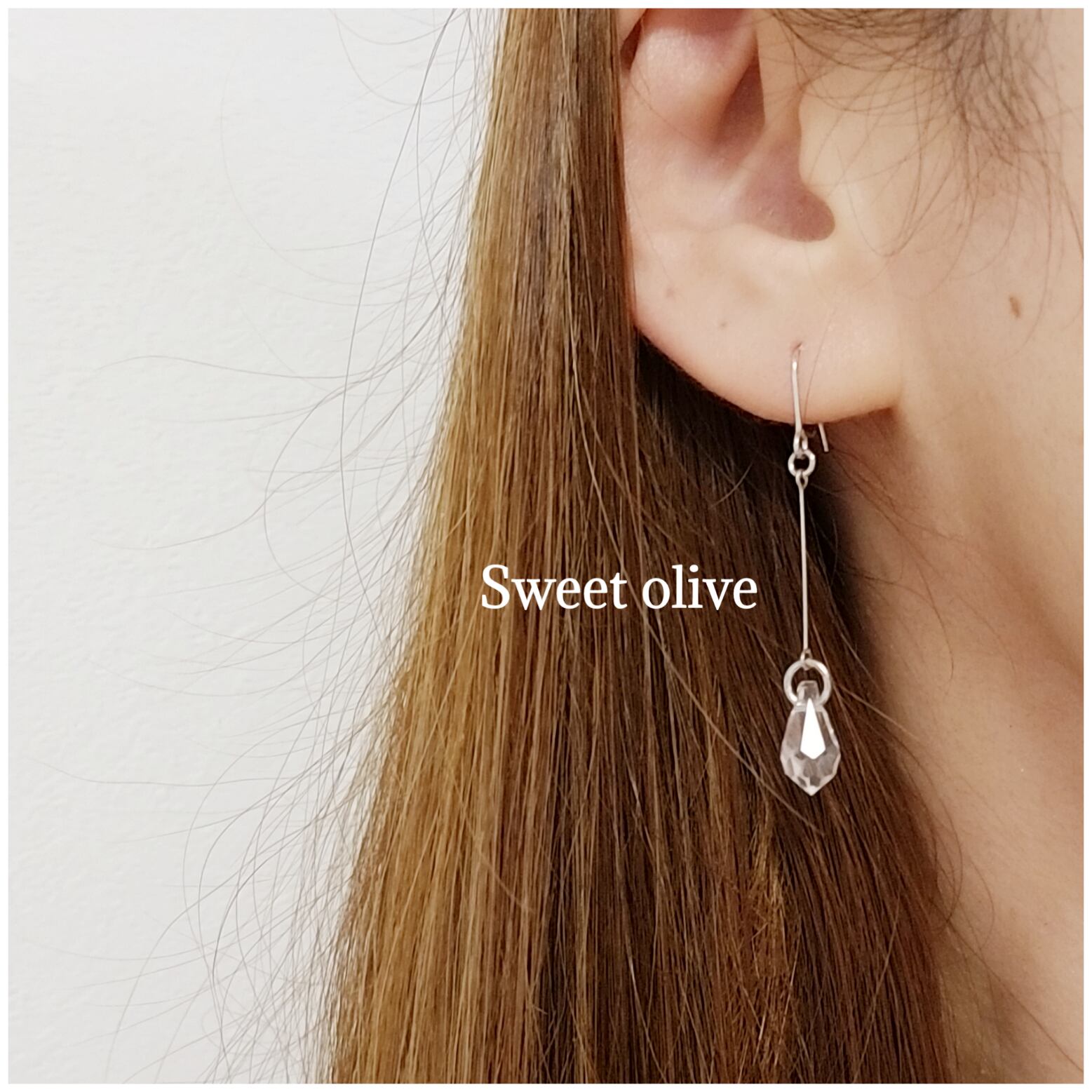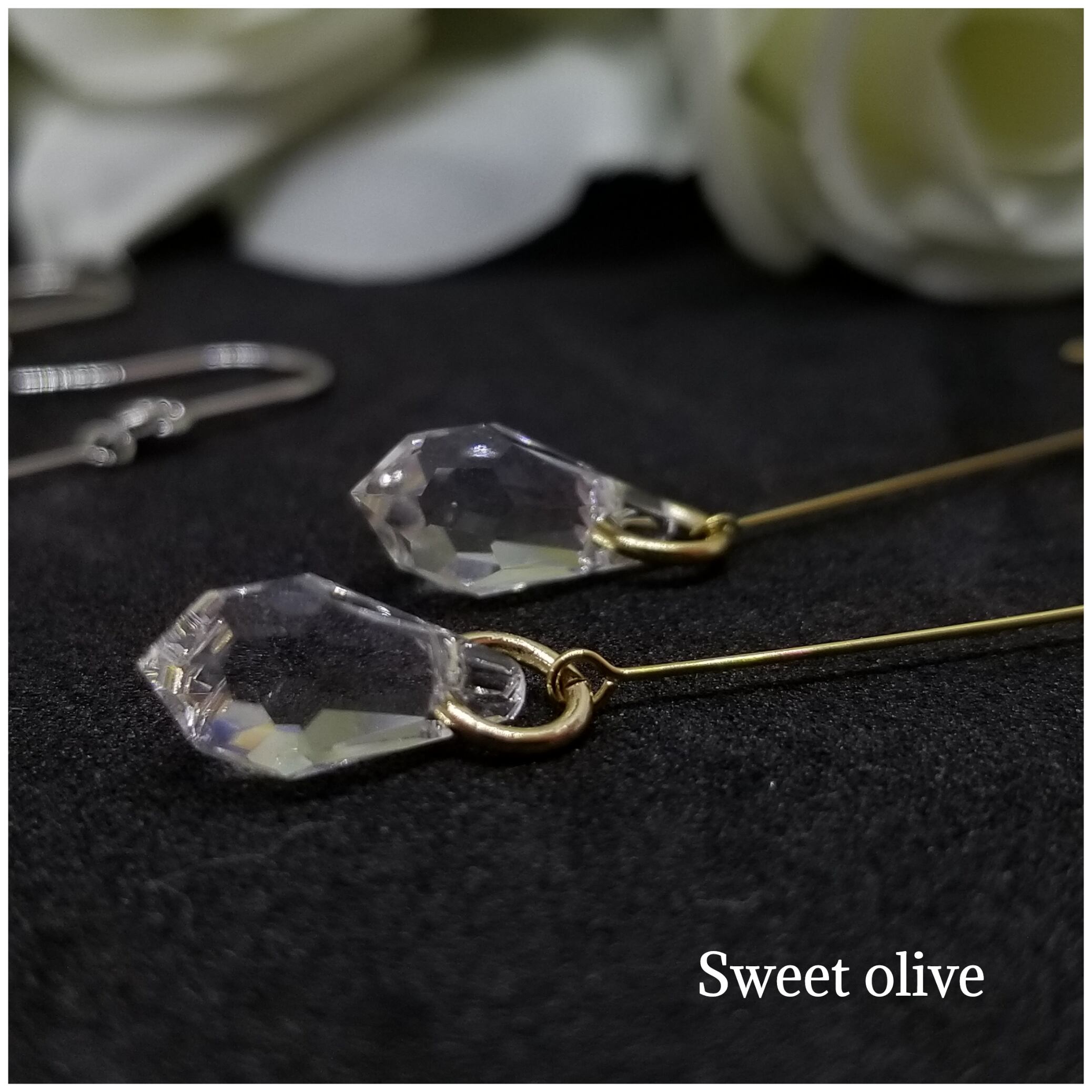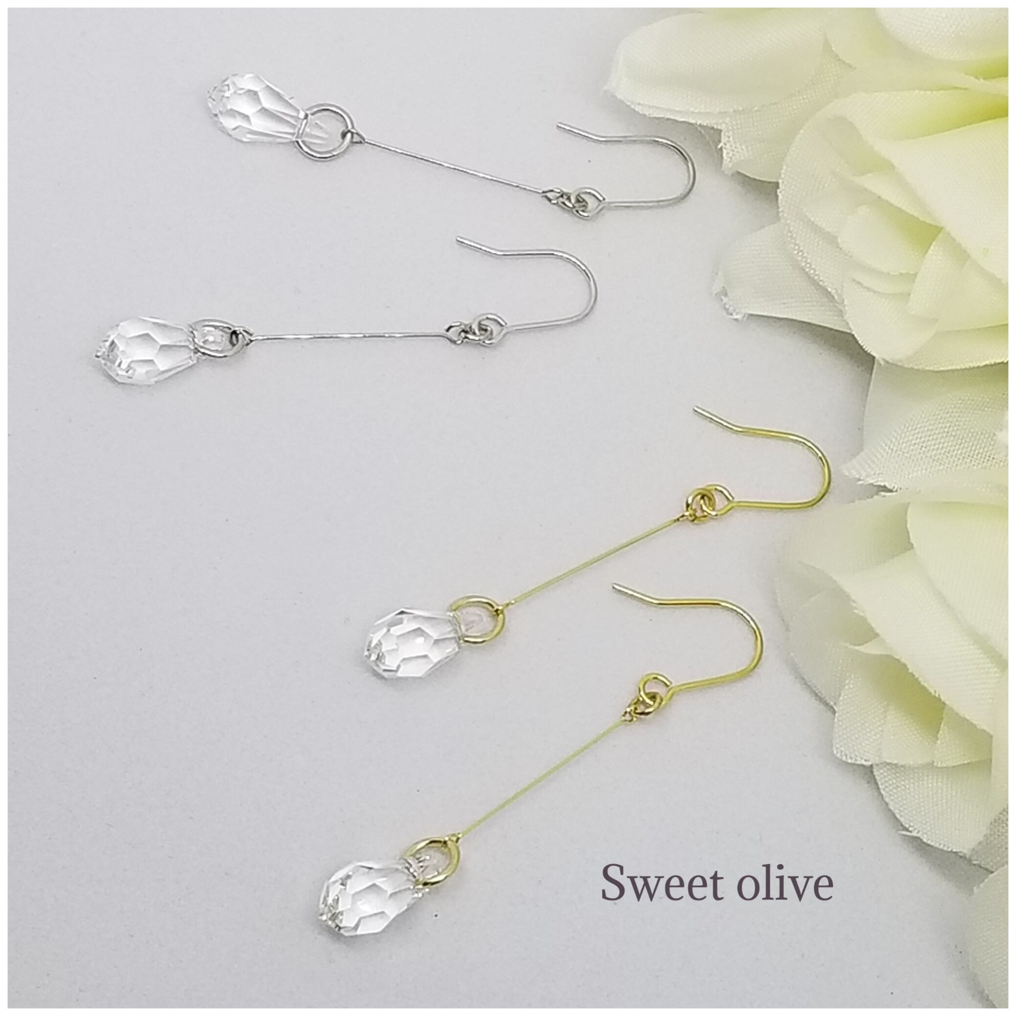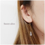 揺れる度にキラキラ七色に輝くしずく型のピアス☆