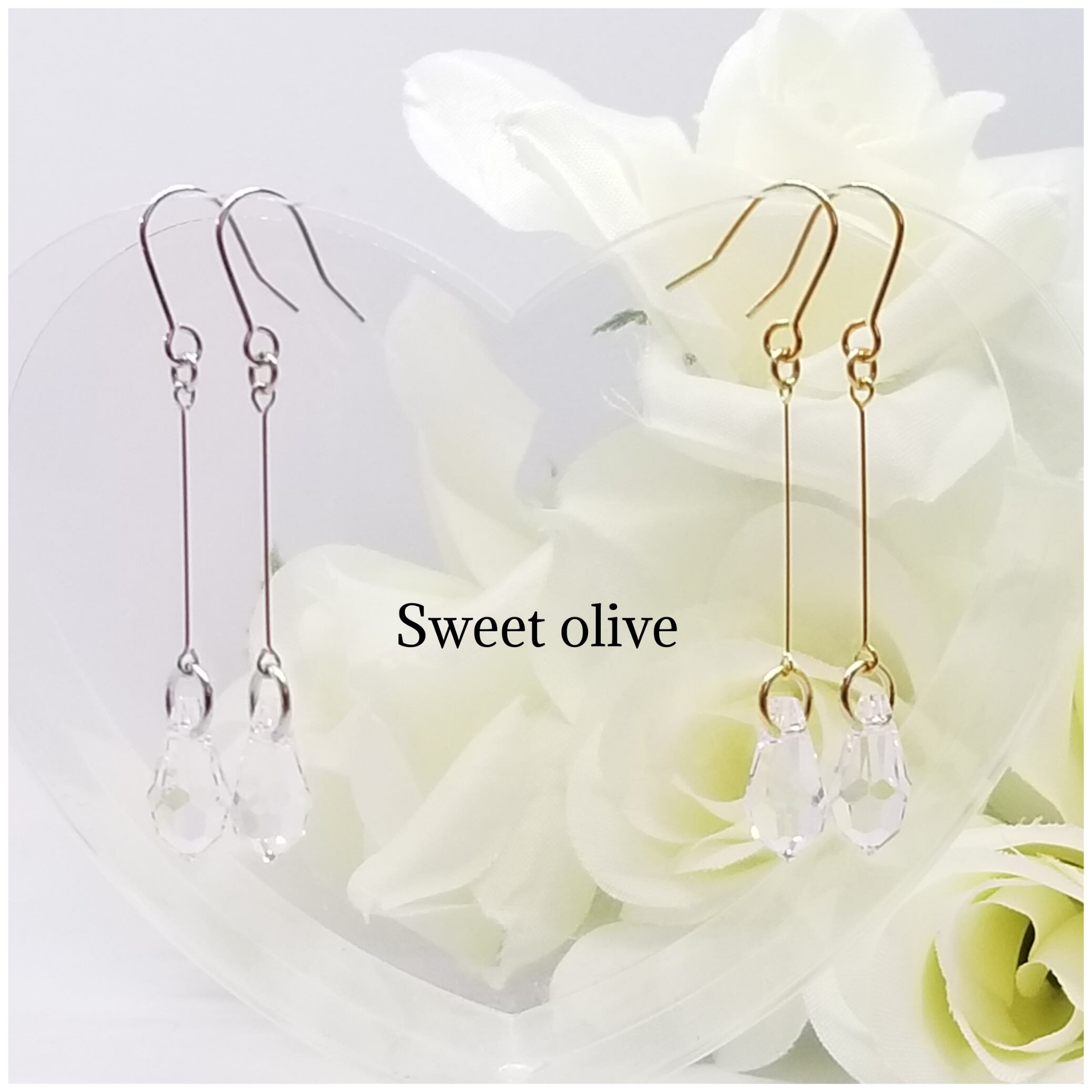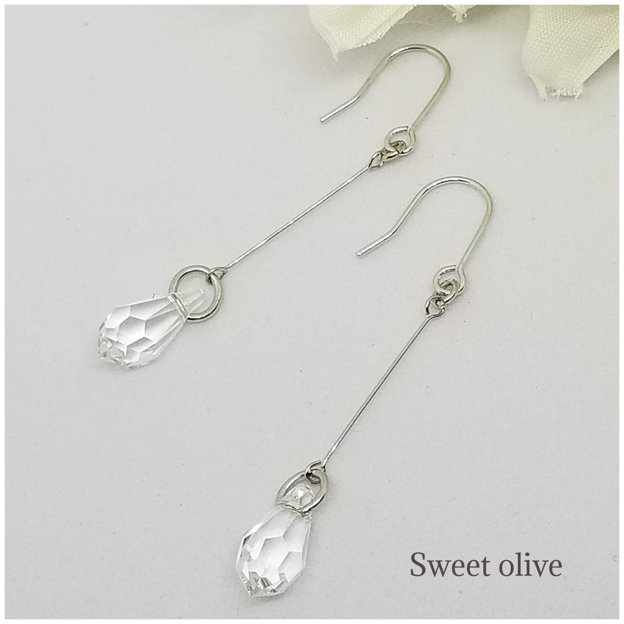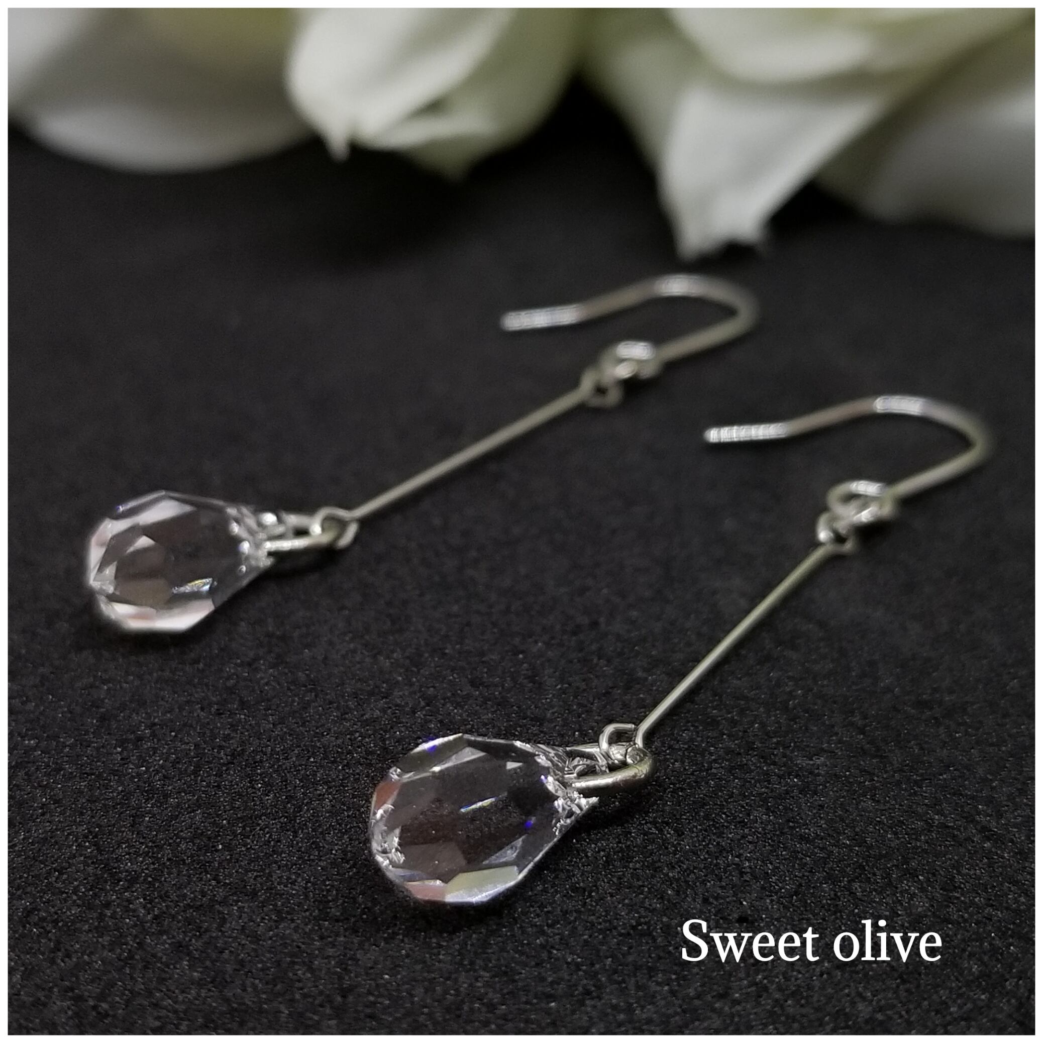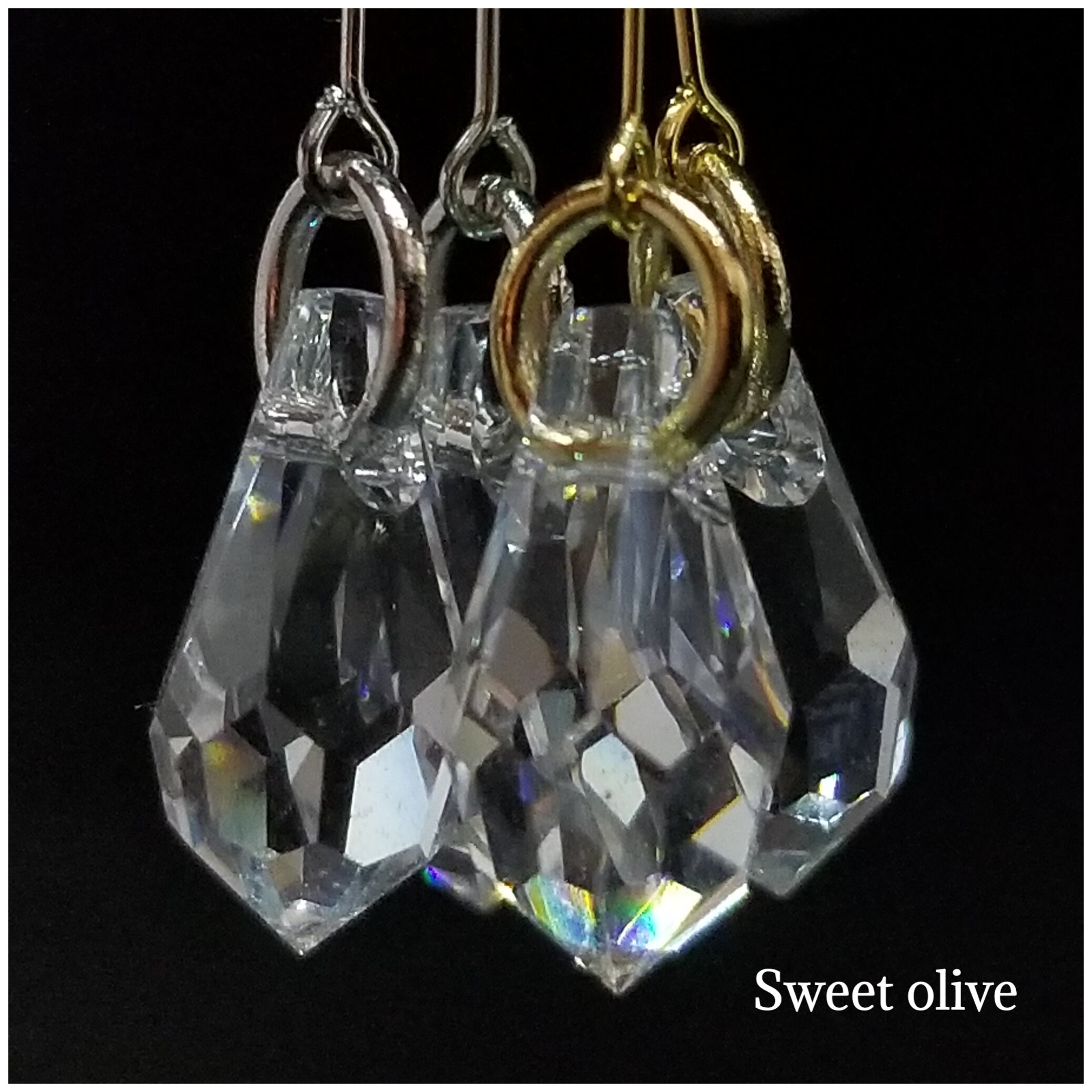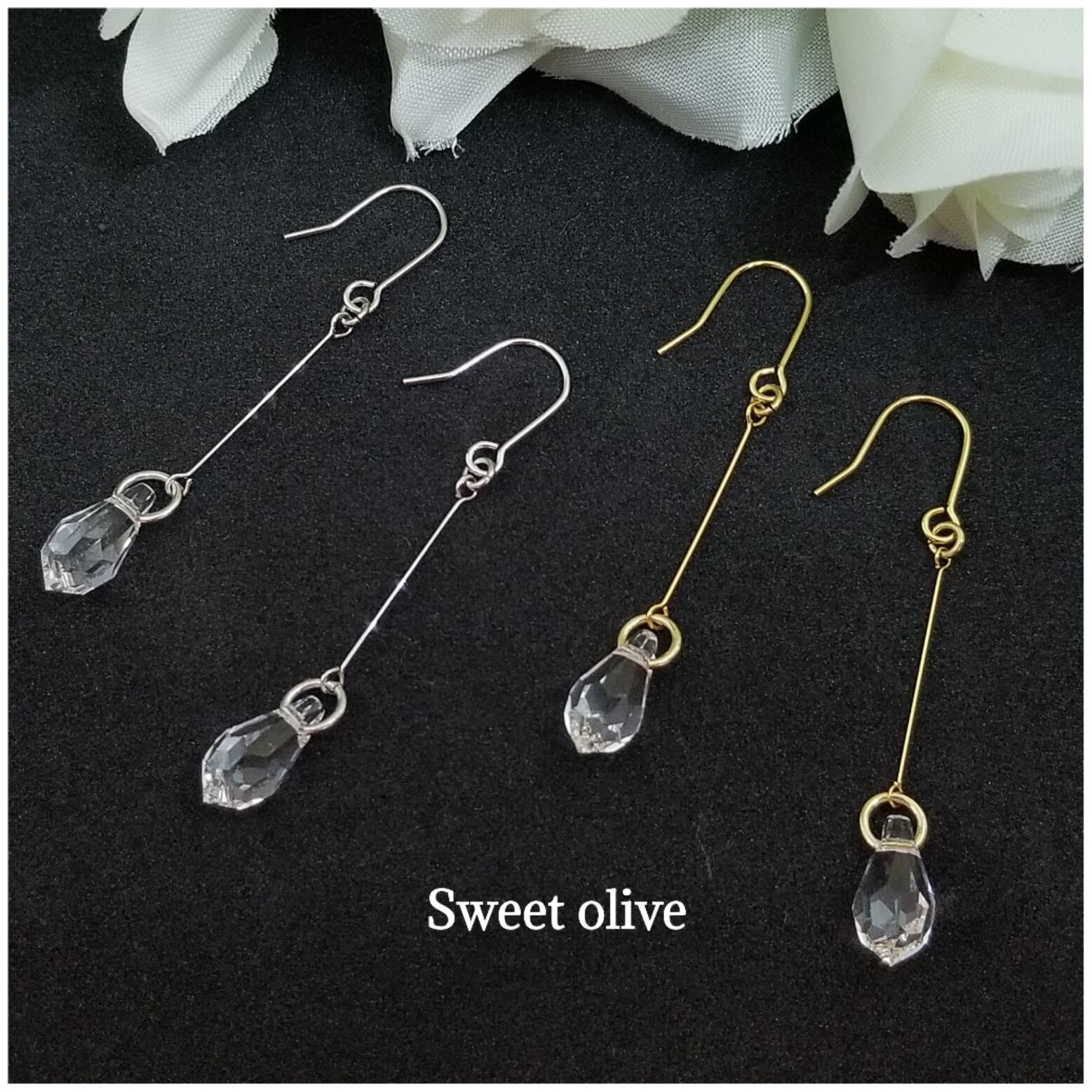揺れる度にキラキラ七色に輝くしずく型のピアス☆