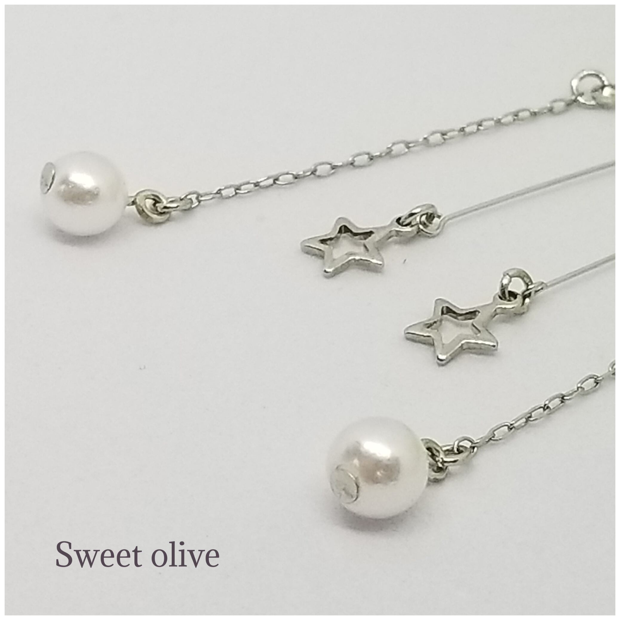 華奢なチェーンとピアノ線で可愛く仕上げました☆