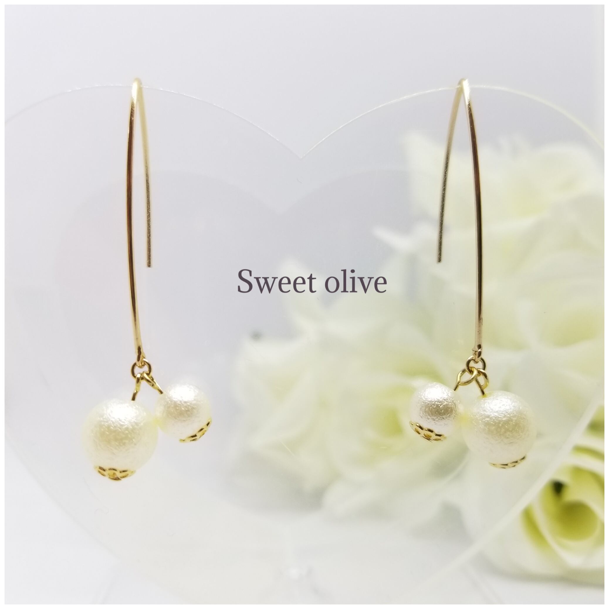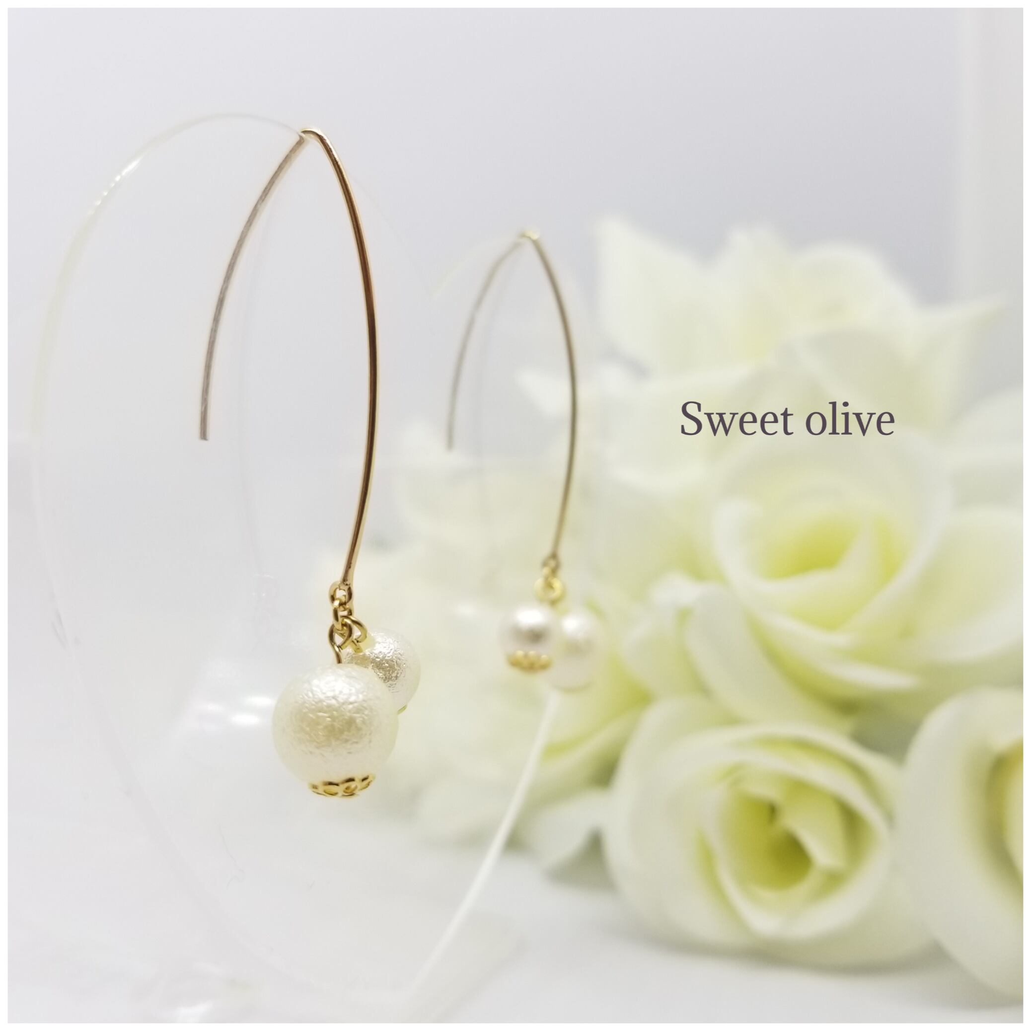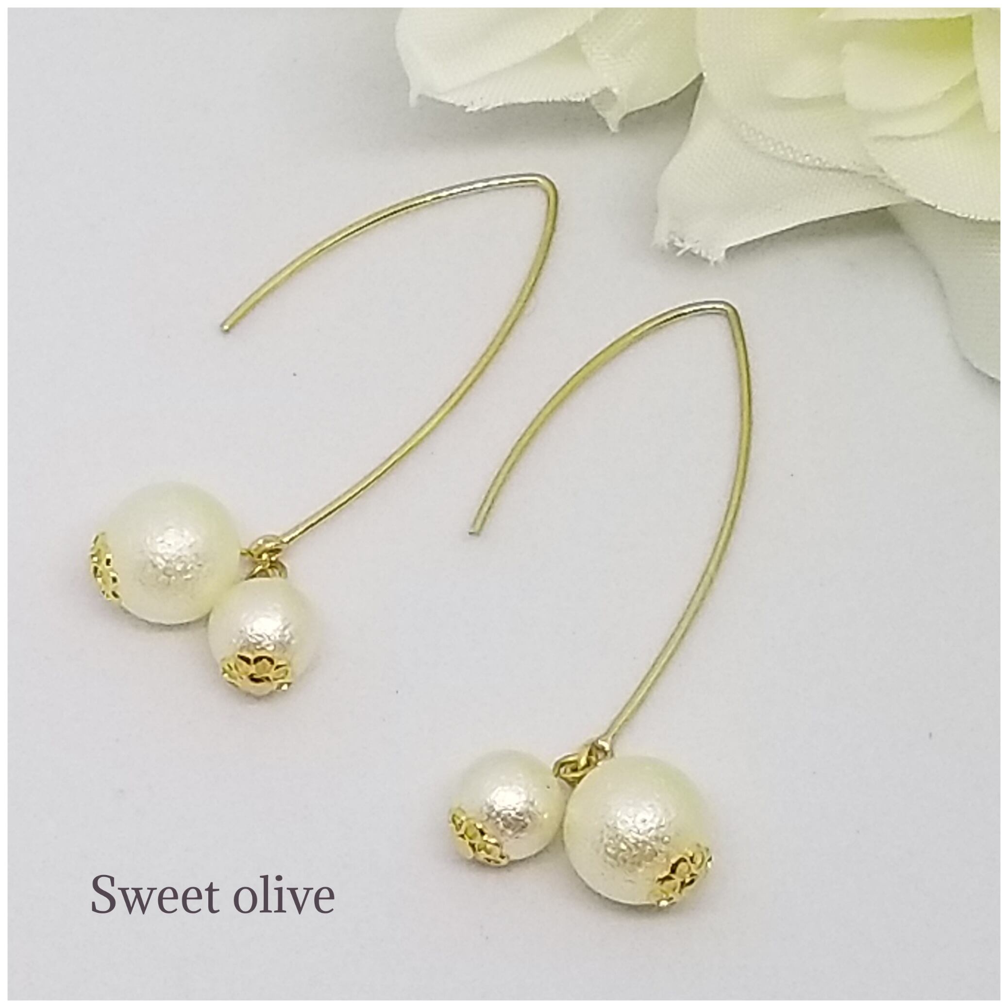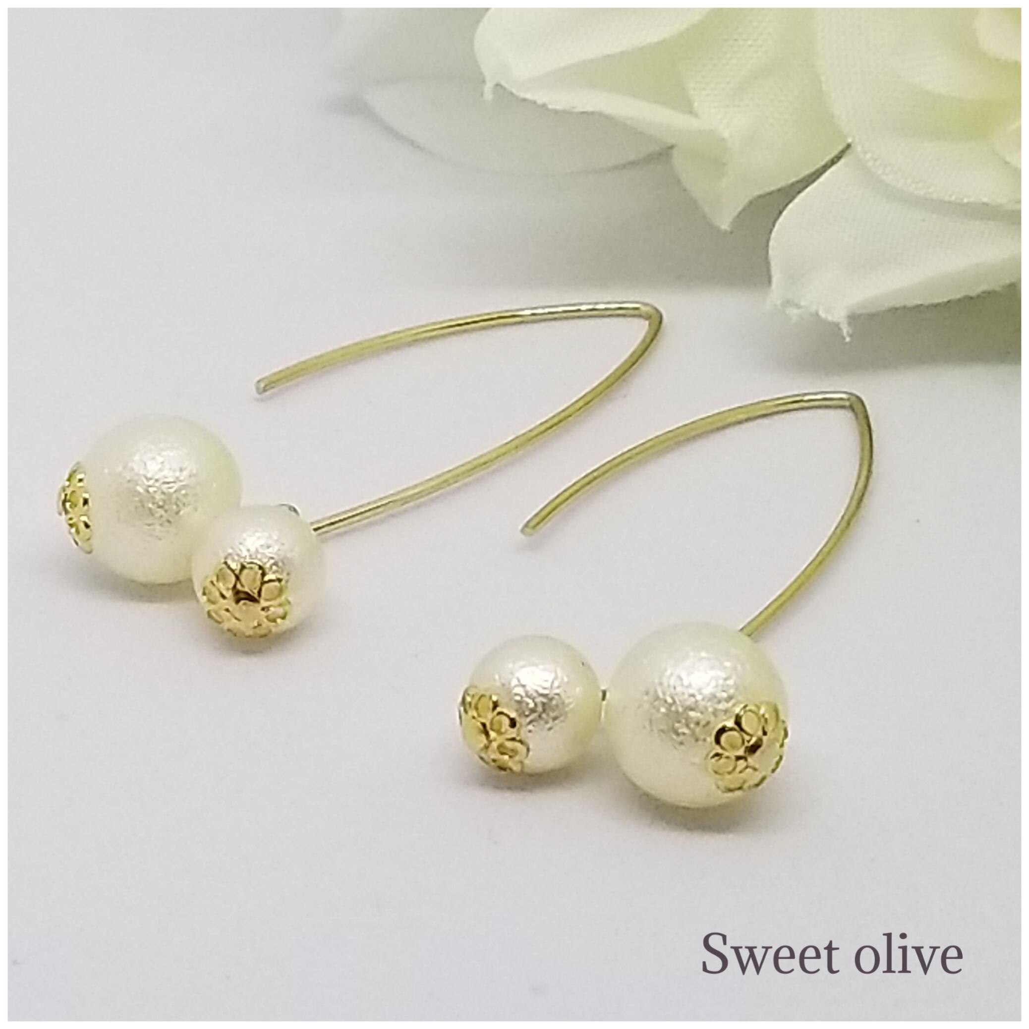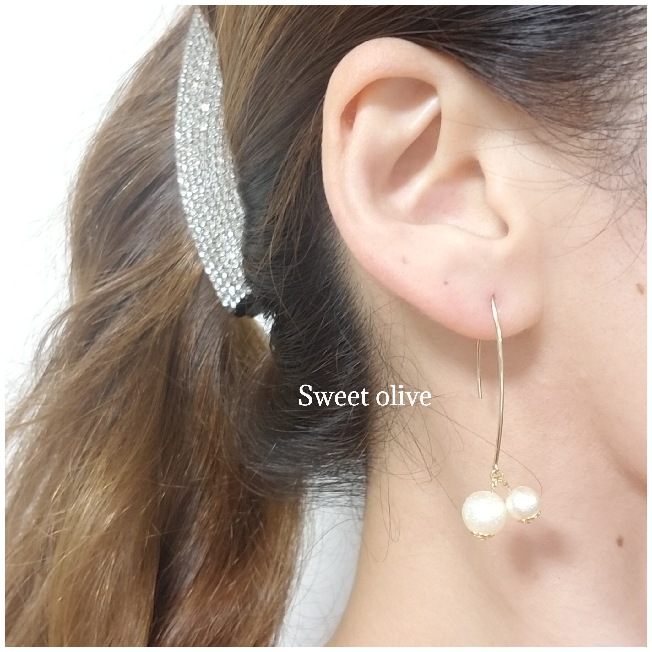 大きさが異なるコットンパールは揺れる度に可愛い☆シンプルが一番可愛いですね!
