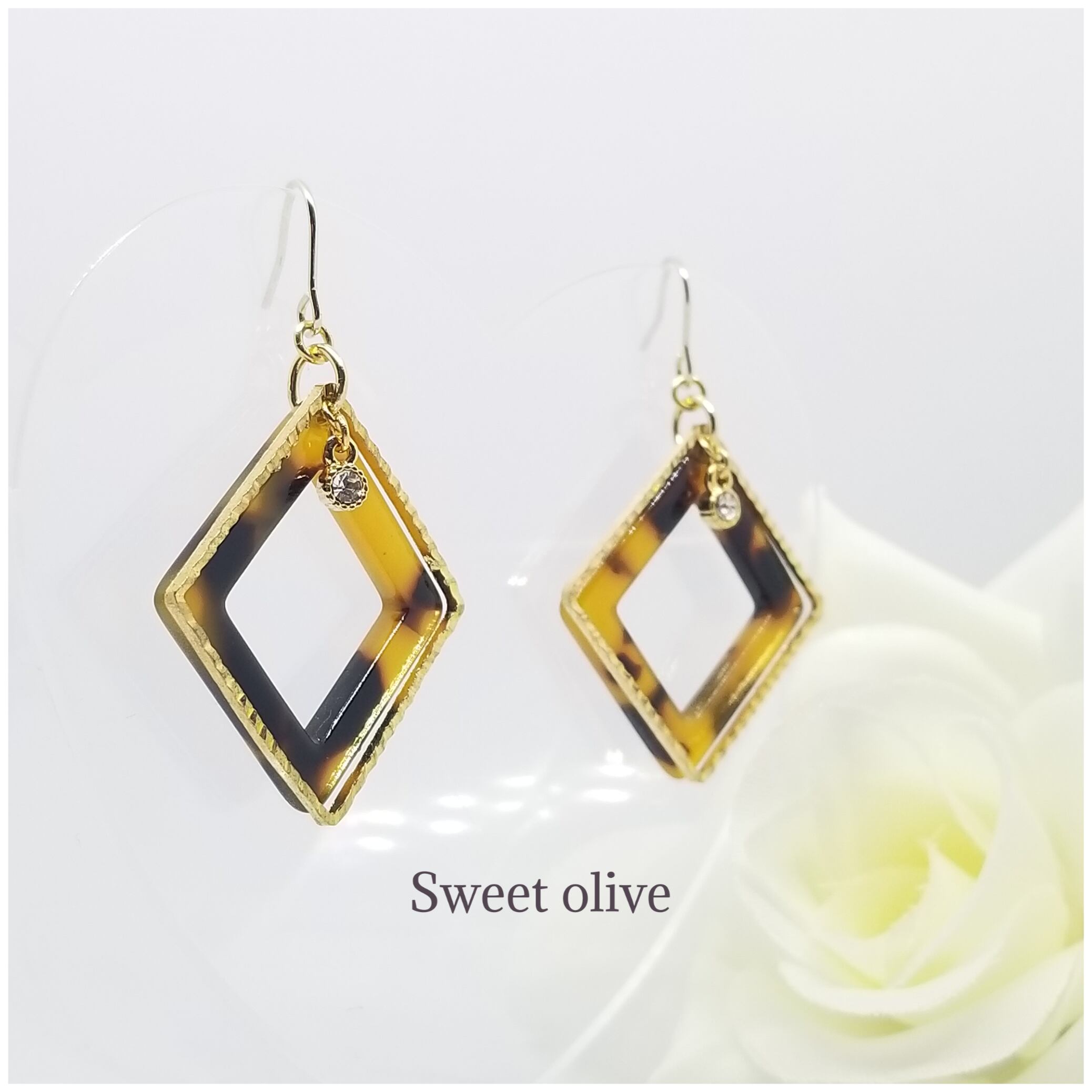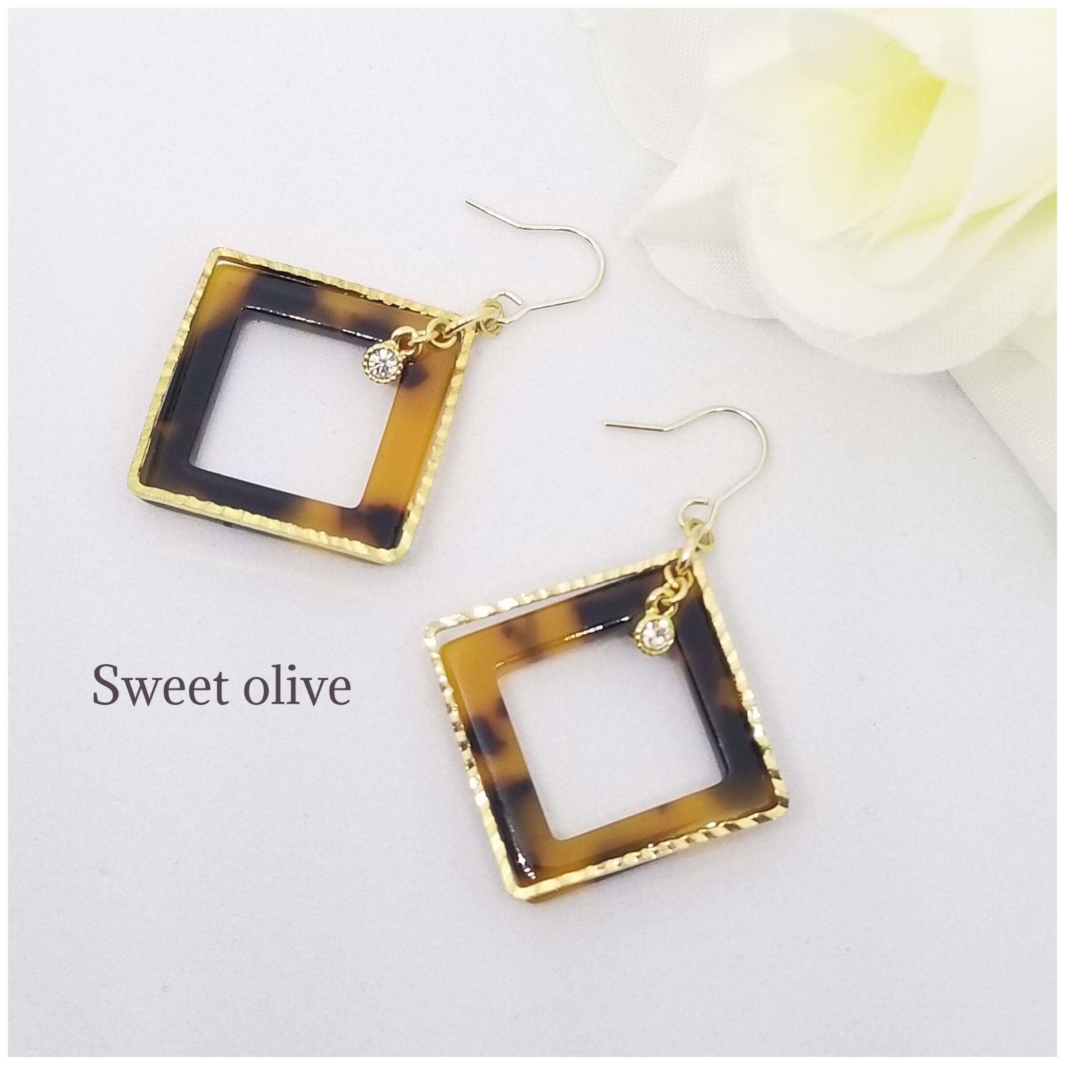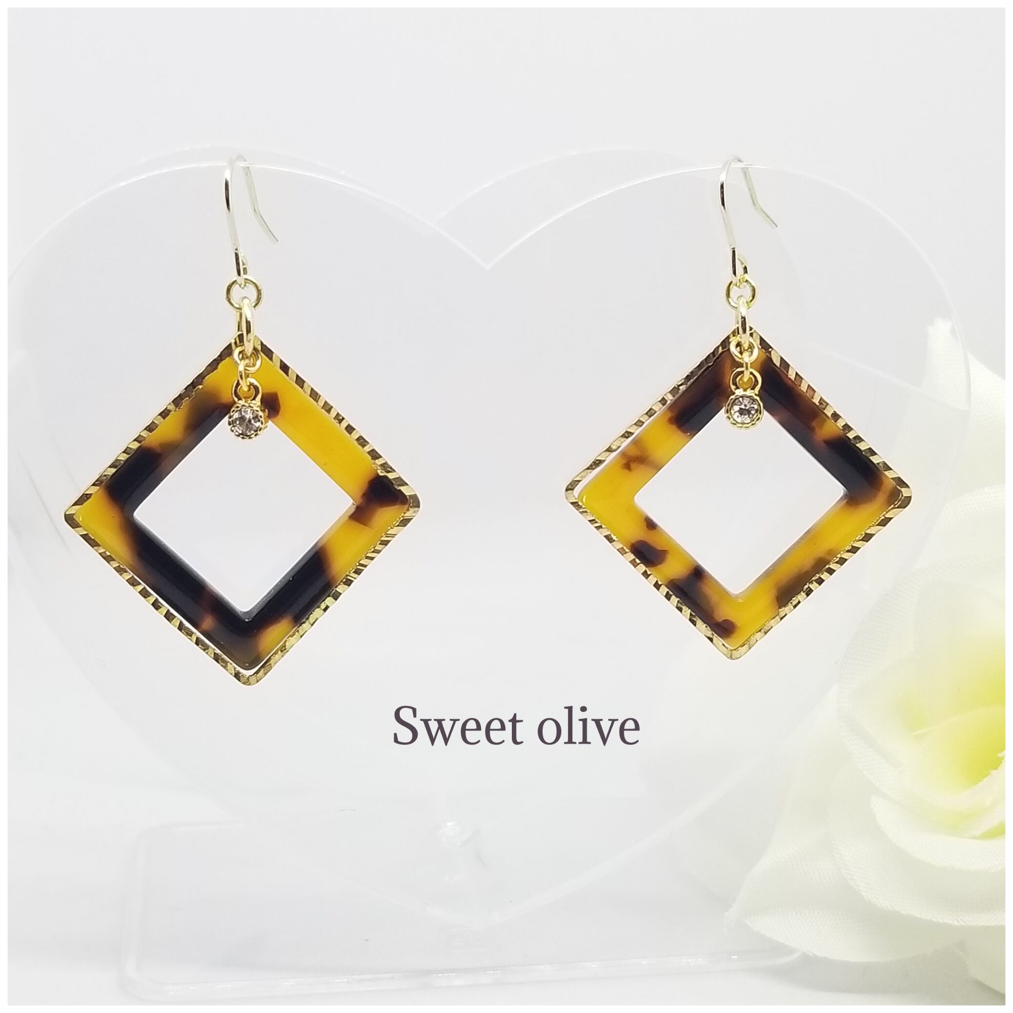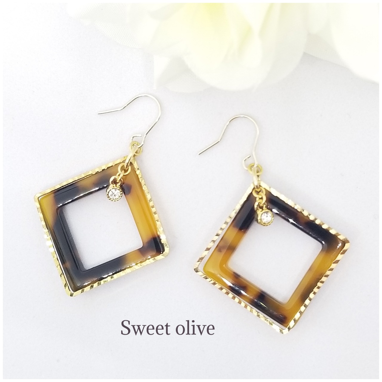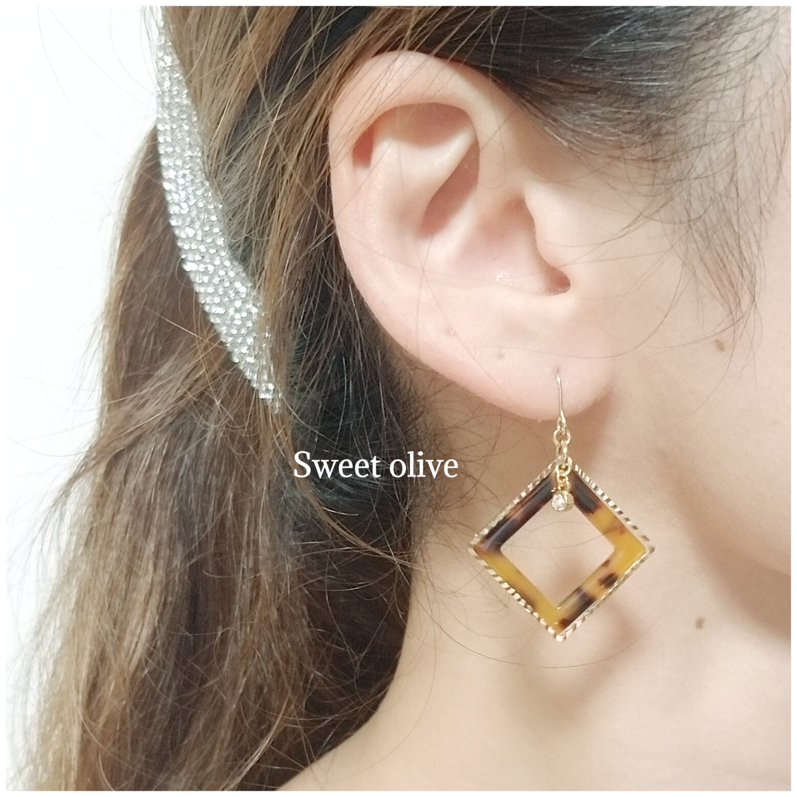 スクエアのべっ甲とヴィンテージスクエアと一粒のカットガラスを合わせました♪