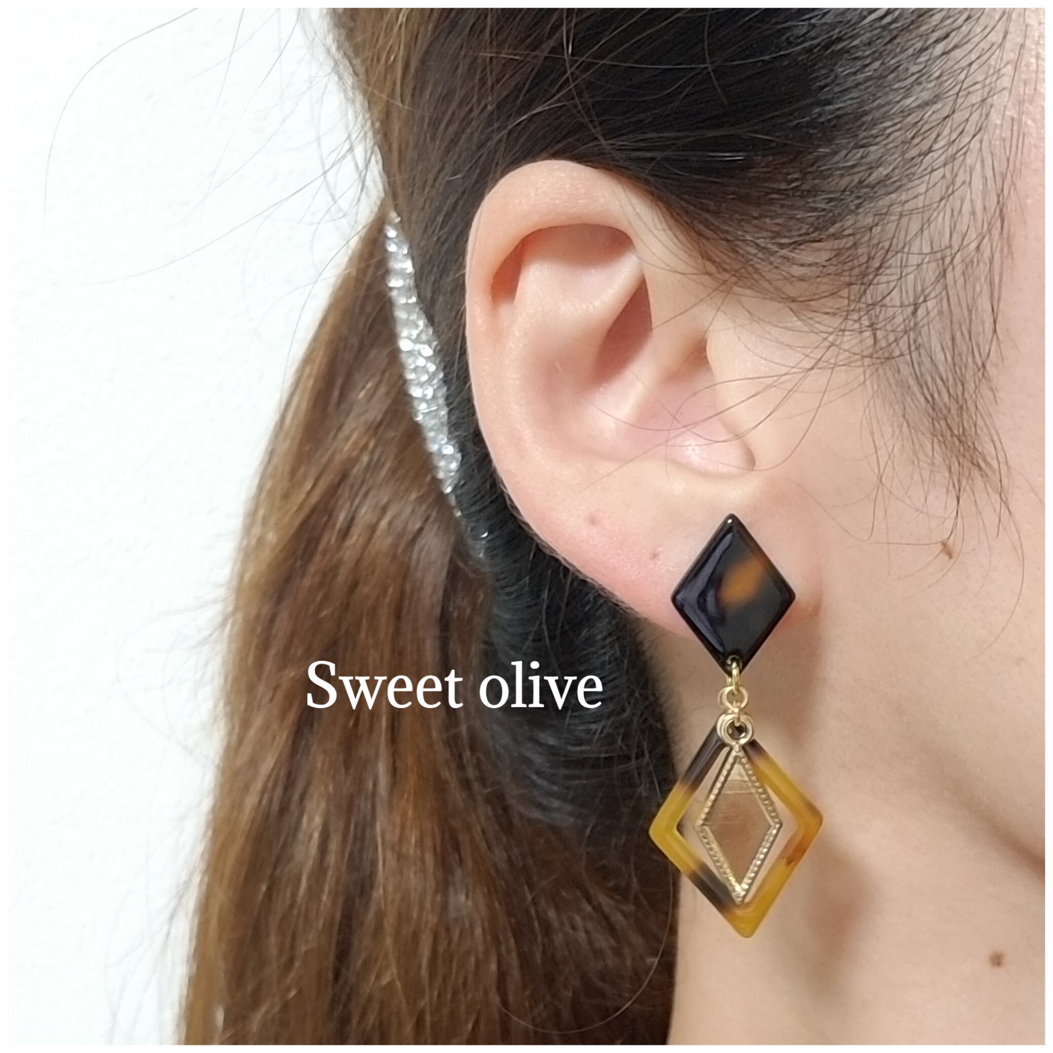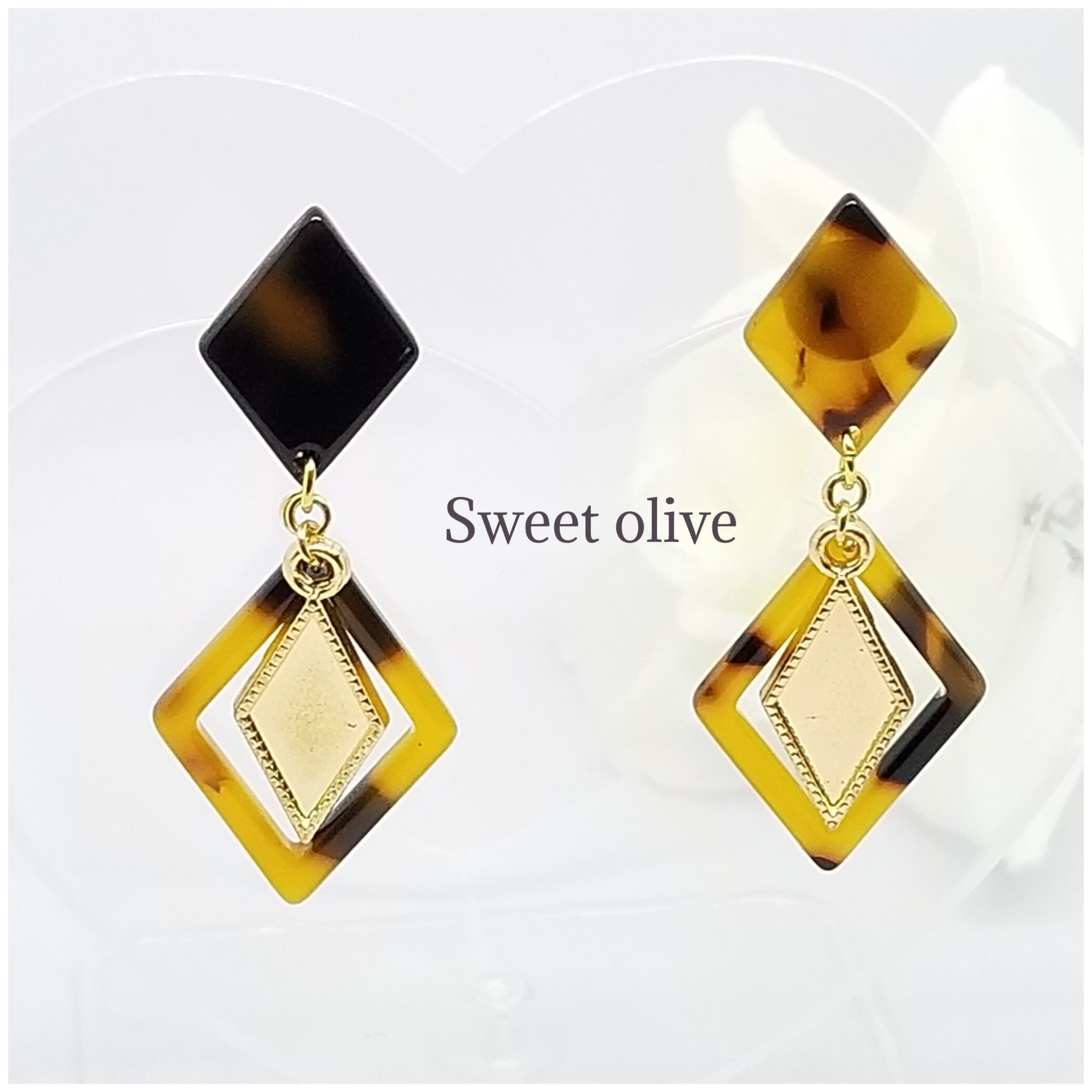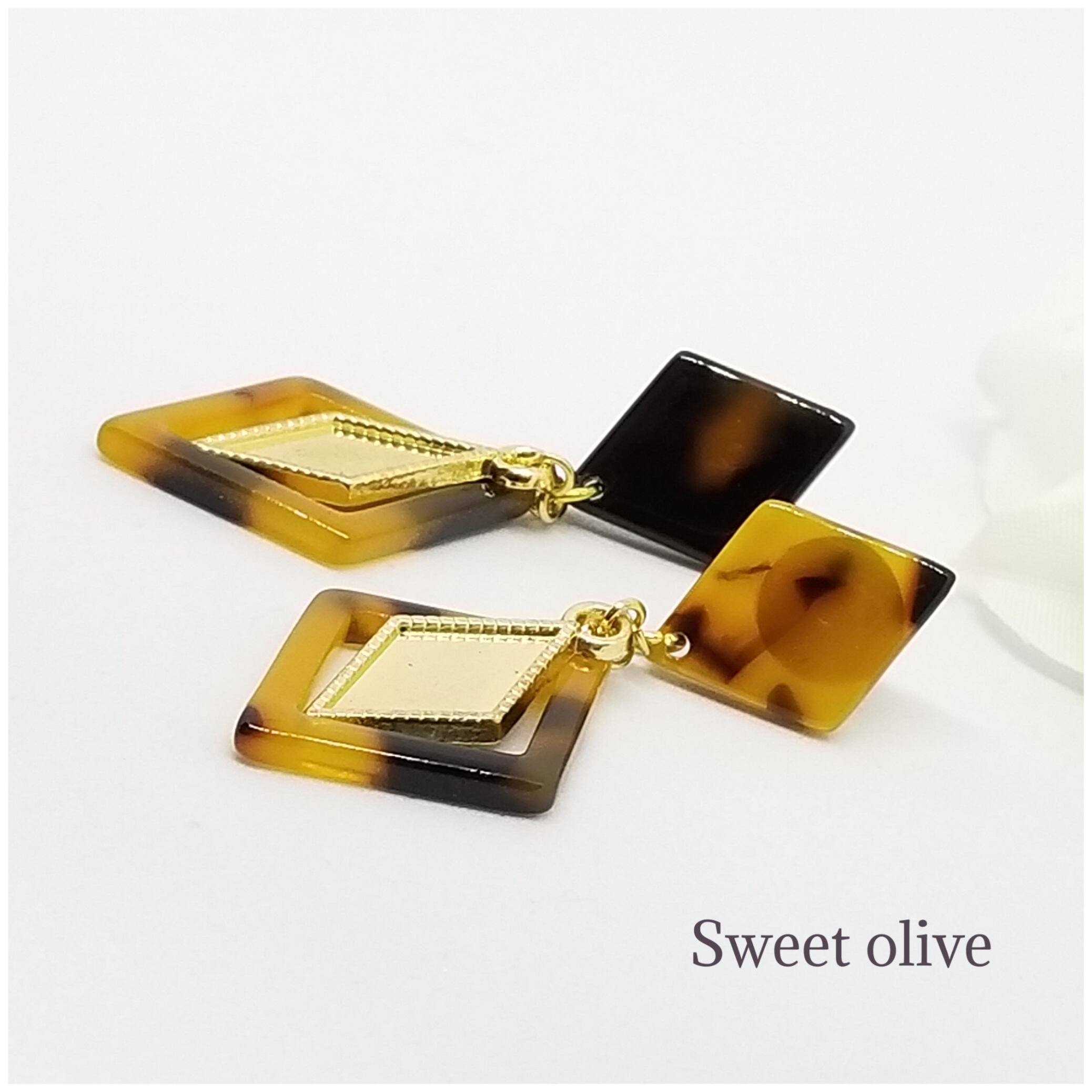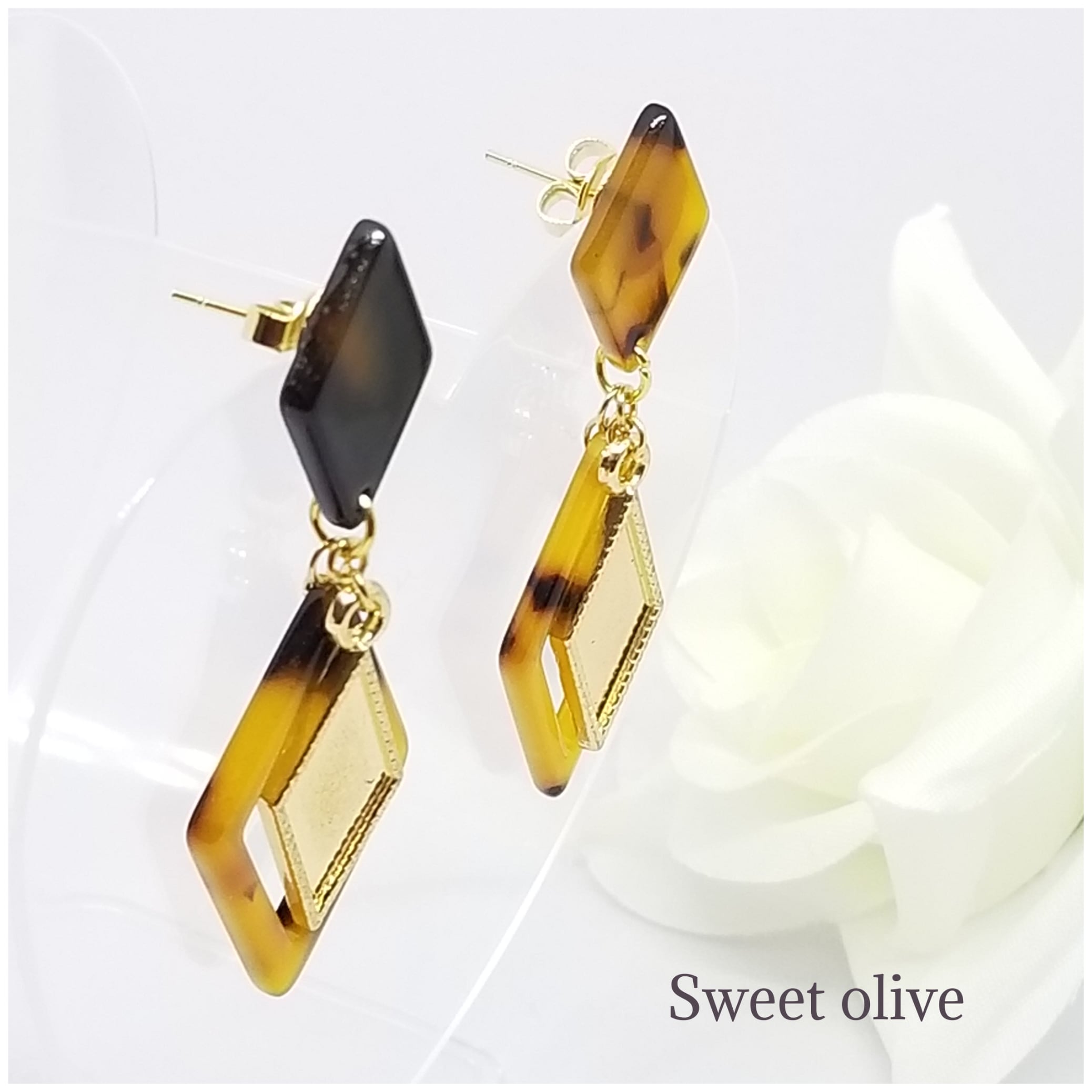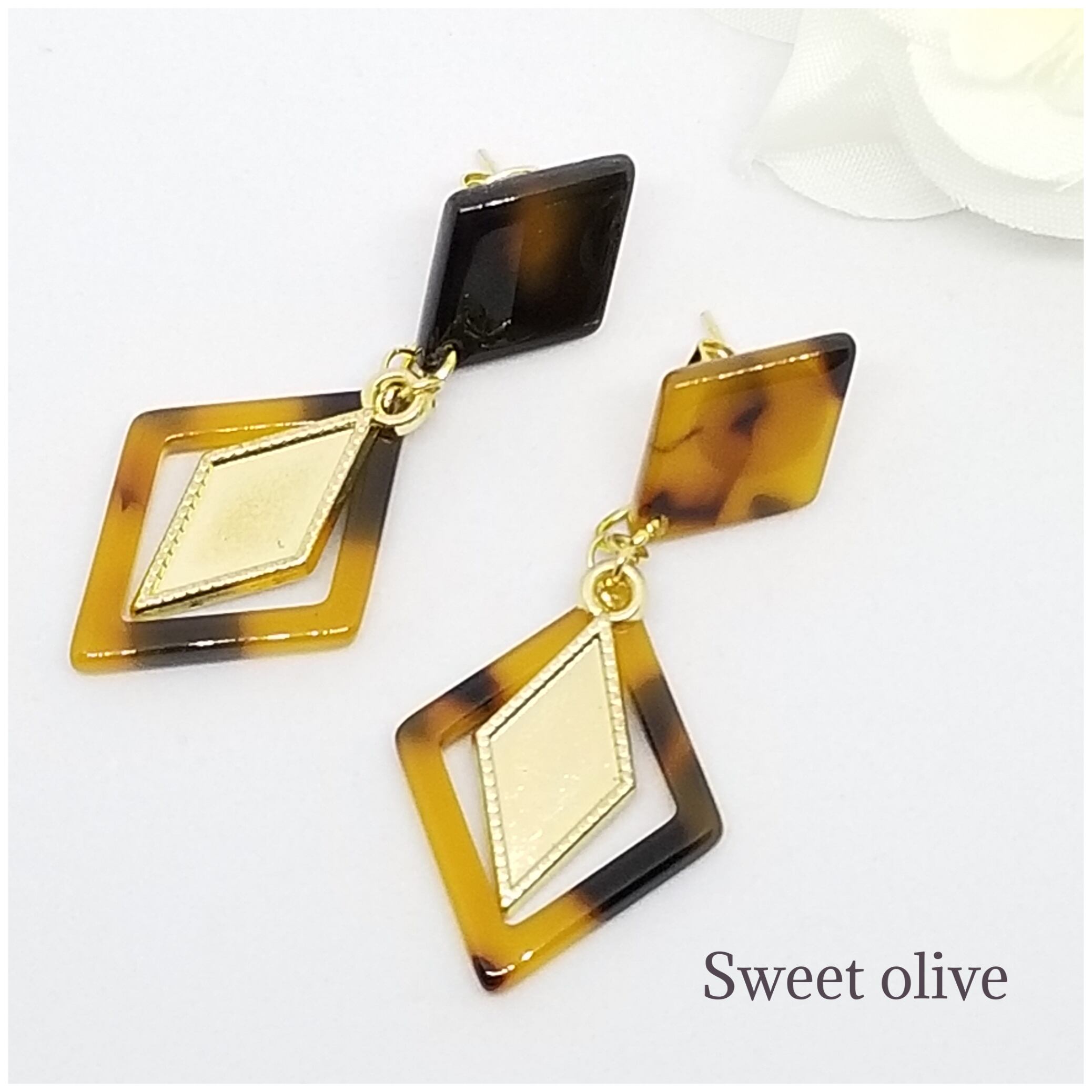 ひし形のべっ甲とプレート:2.0×2.6cm