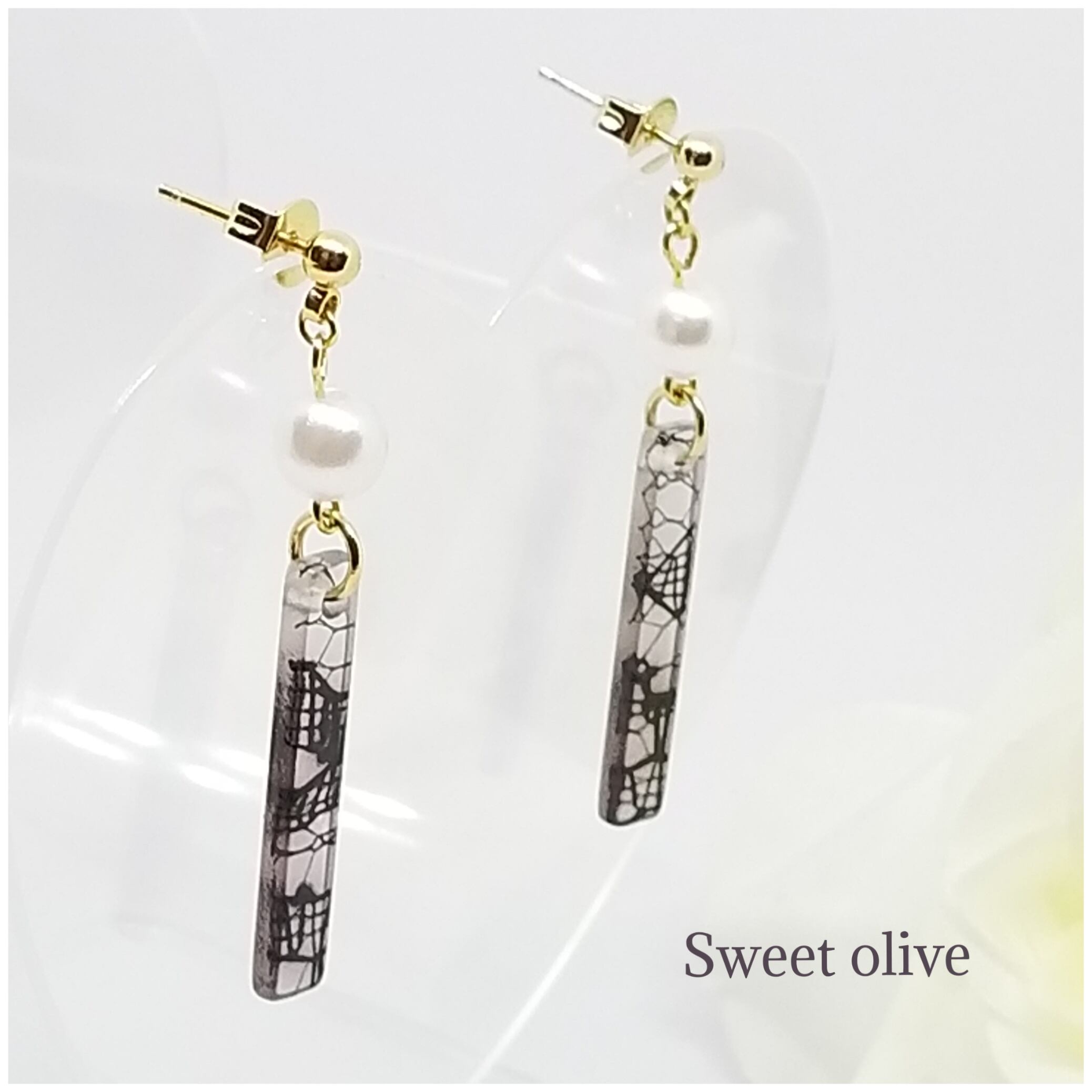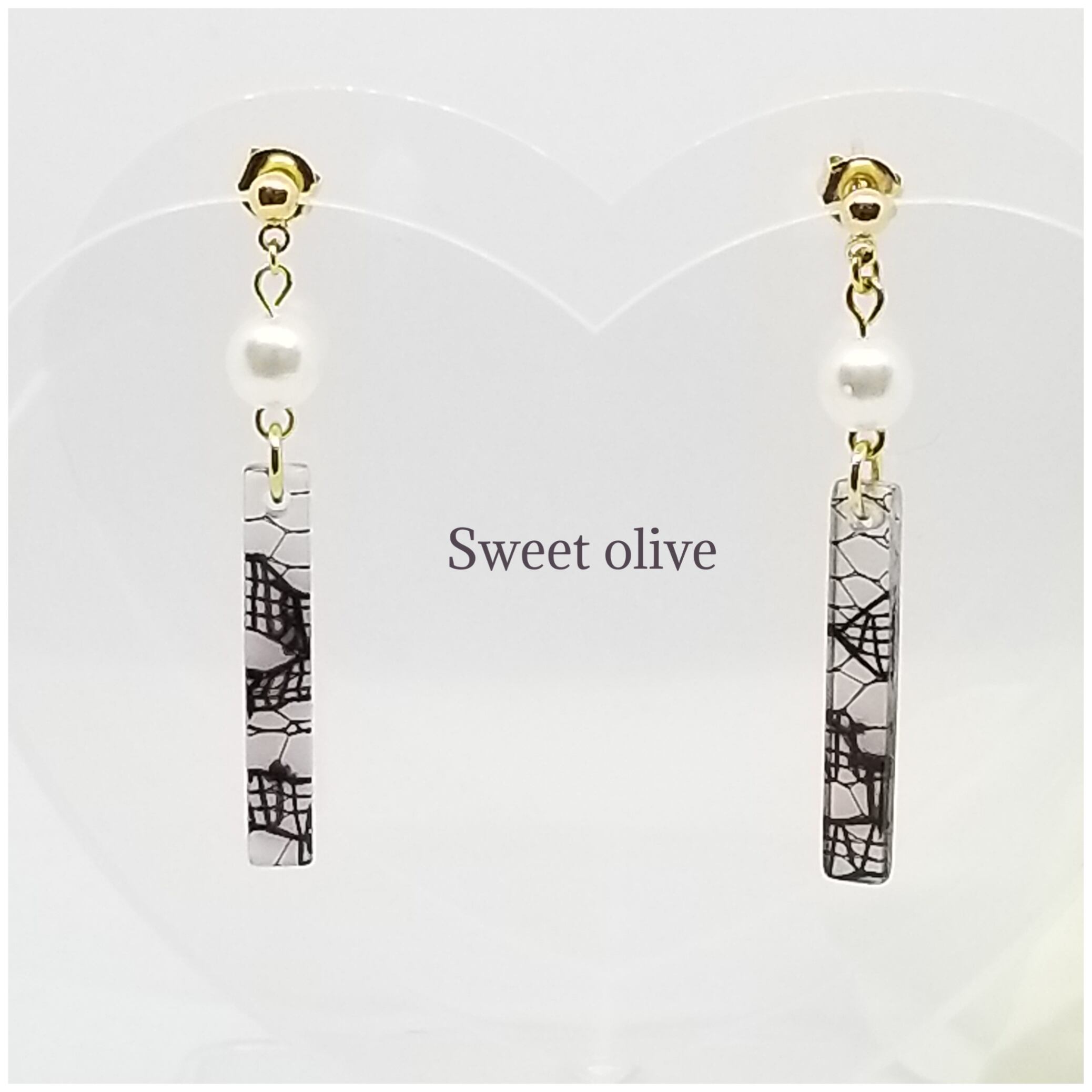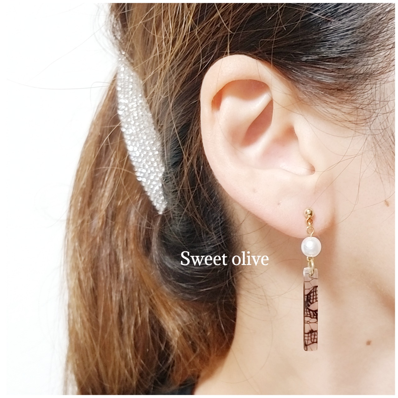レースバーとパールのエレガントなスイングピアスです☆上品でシンプルな魅力があります♪