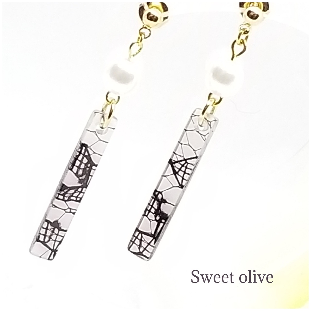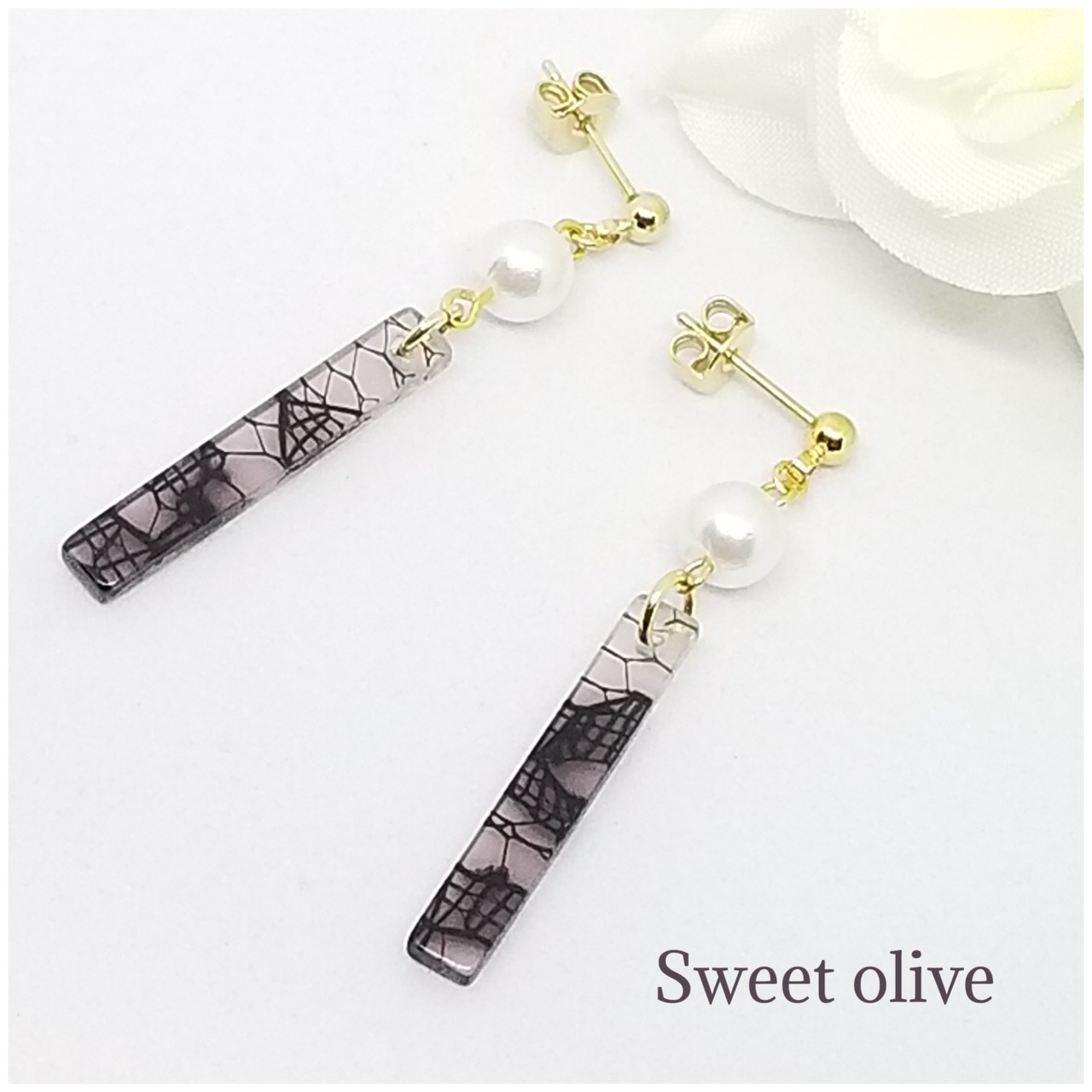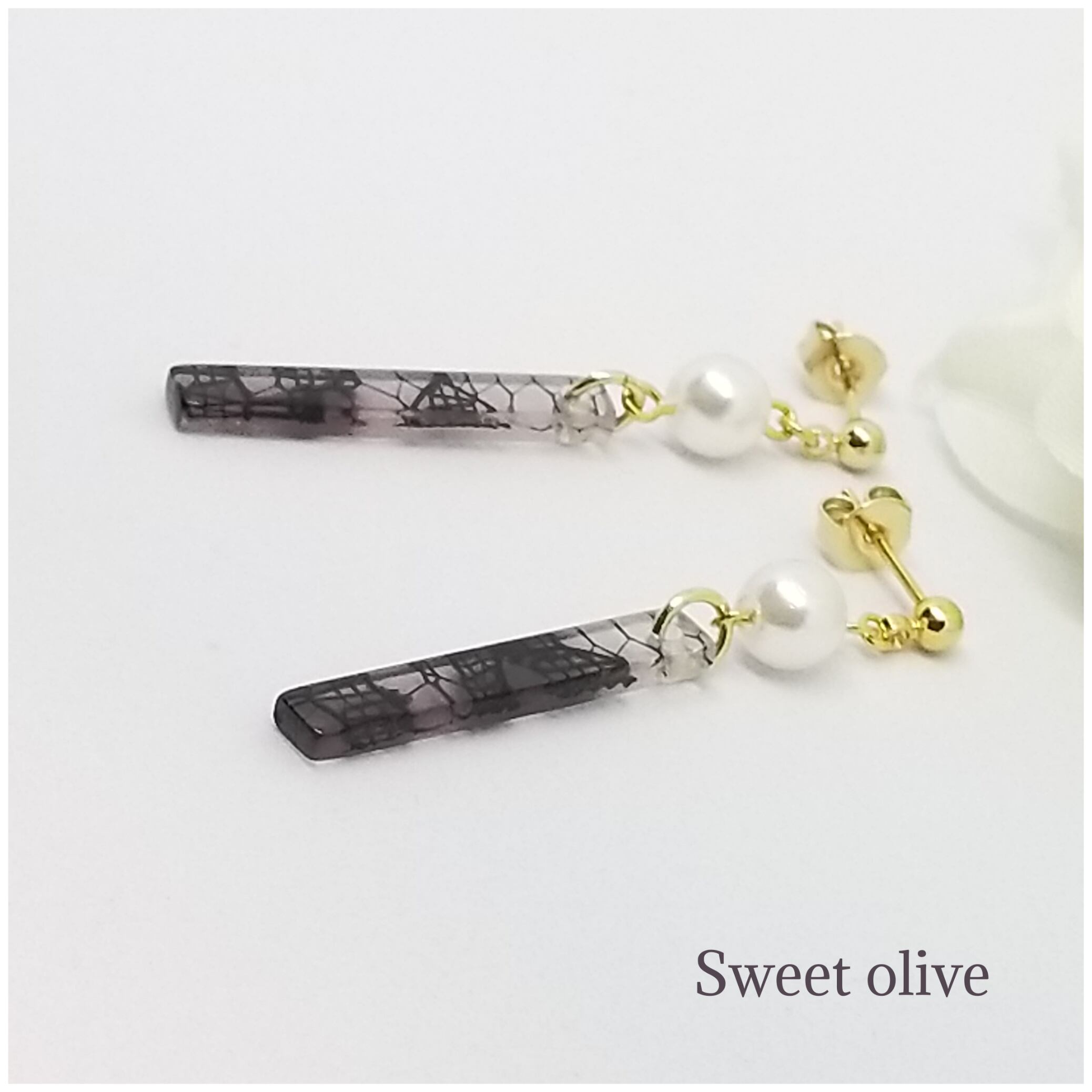 レースバーとパールのエレガントなスイングピアスです☆上品でシンプルな魅力があります♪