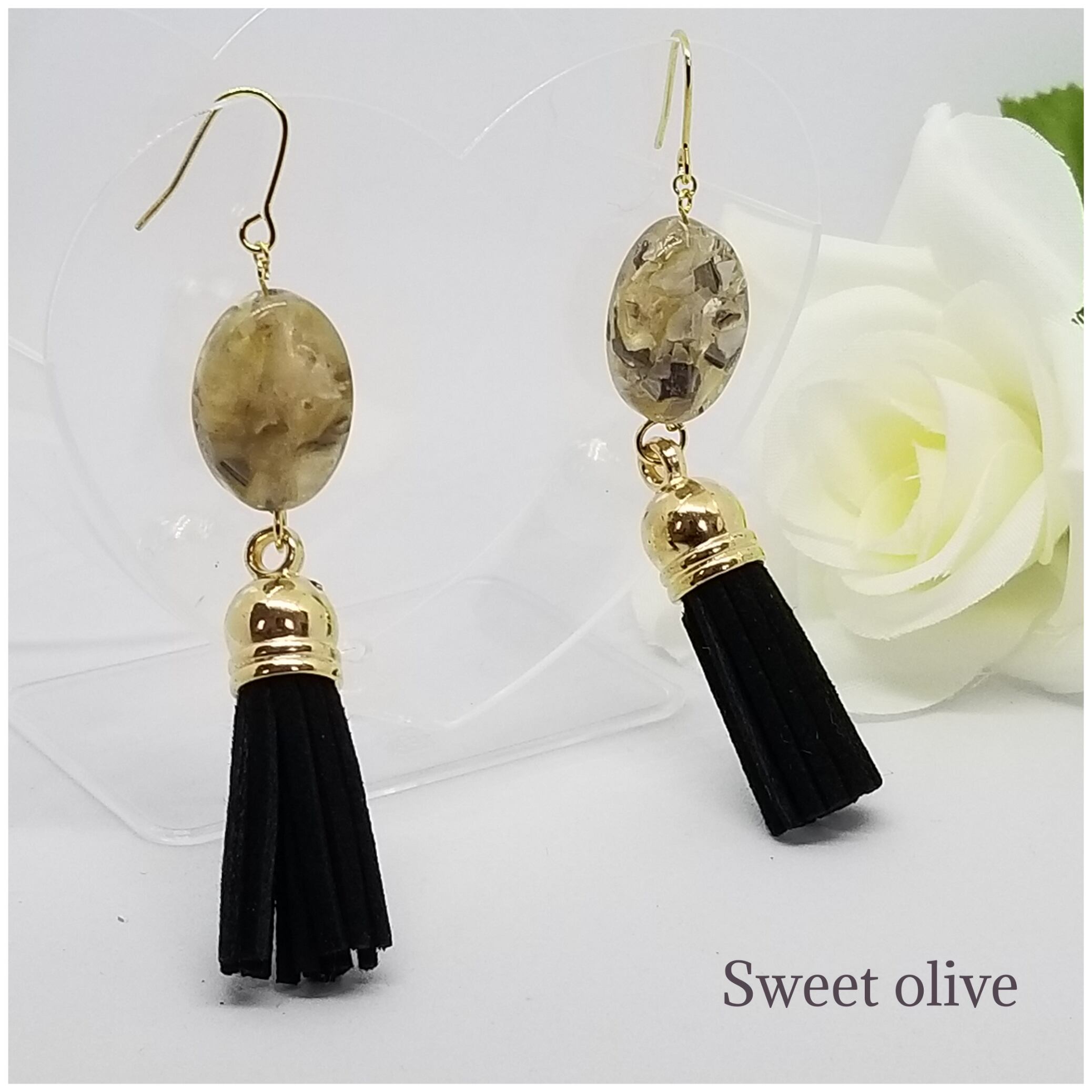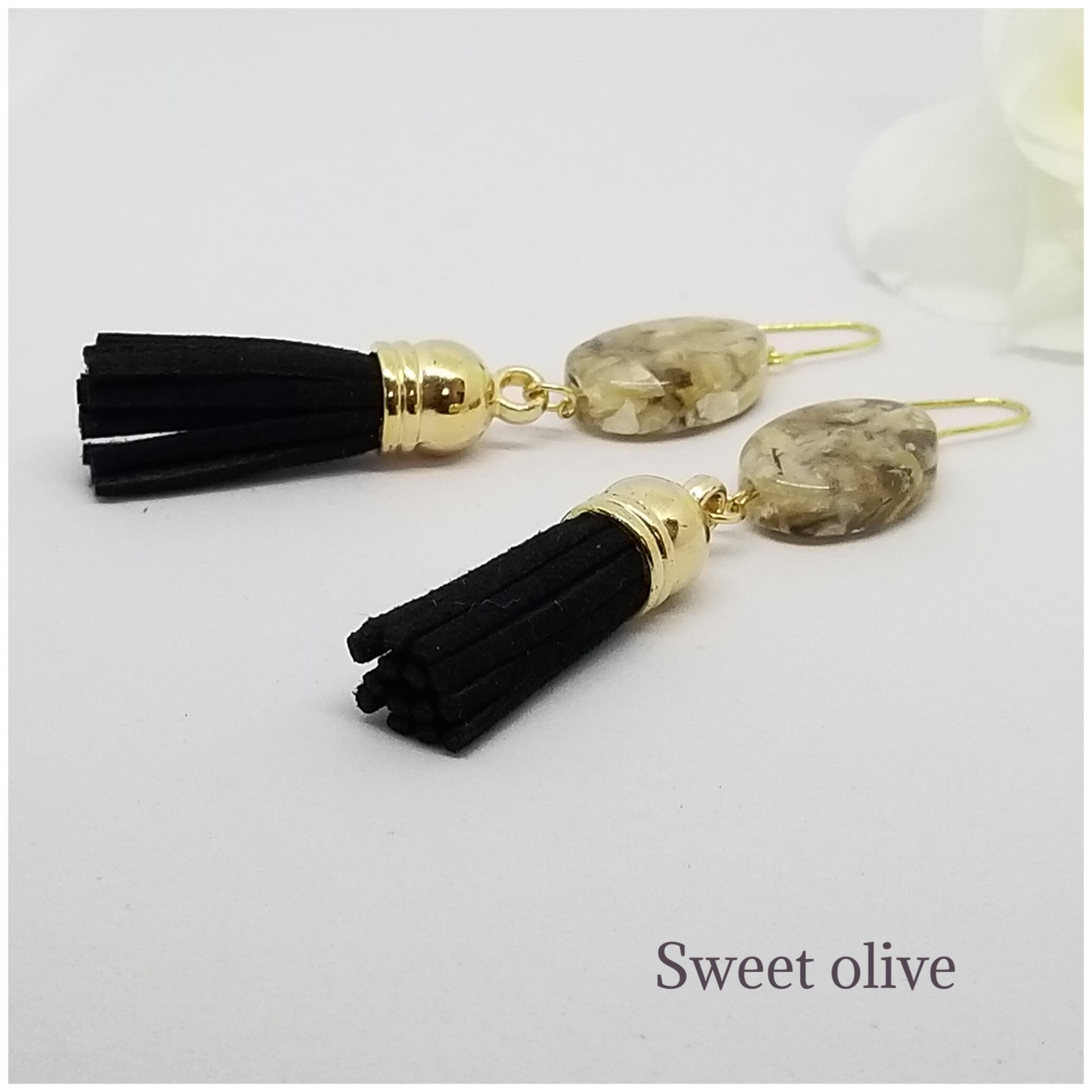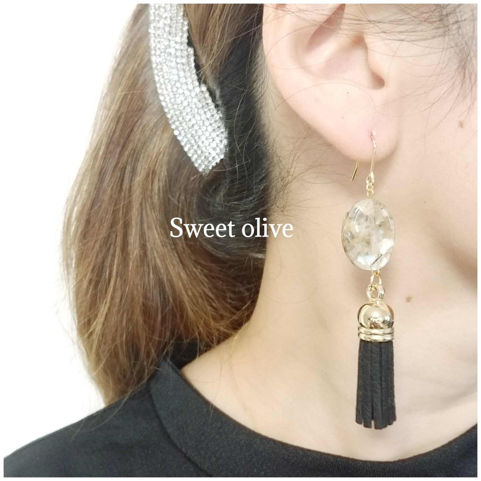 秋冬カラーストーンにブラックタッセルを合わせて秋モード☆ストーンはランダムに散りばめたので全て雰囲気が異なるところが魅力的です♪