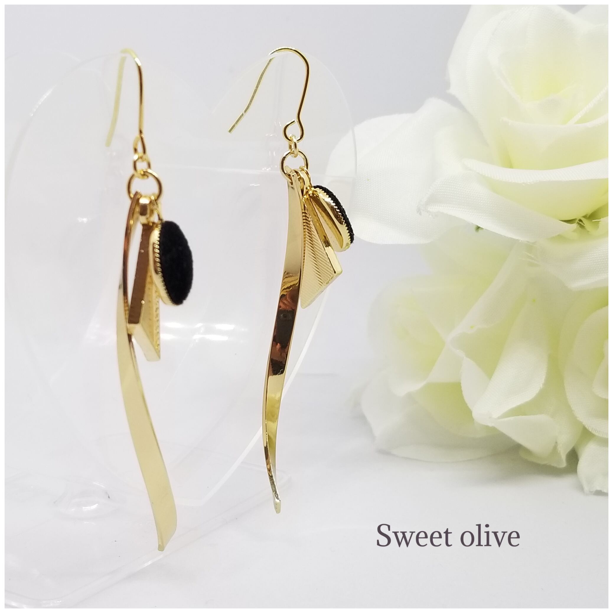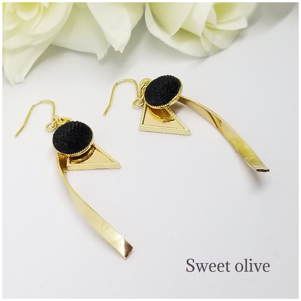 ベロア調の丸形のパーツと動きあるツイストバーとスクエアのプレートをMixしてみました☆