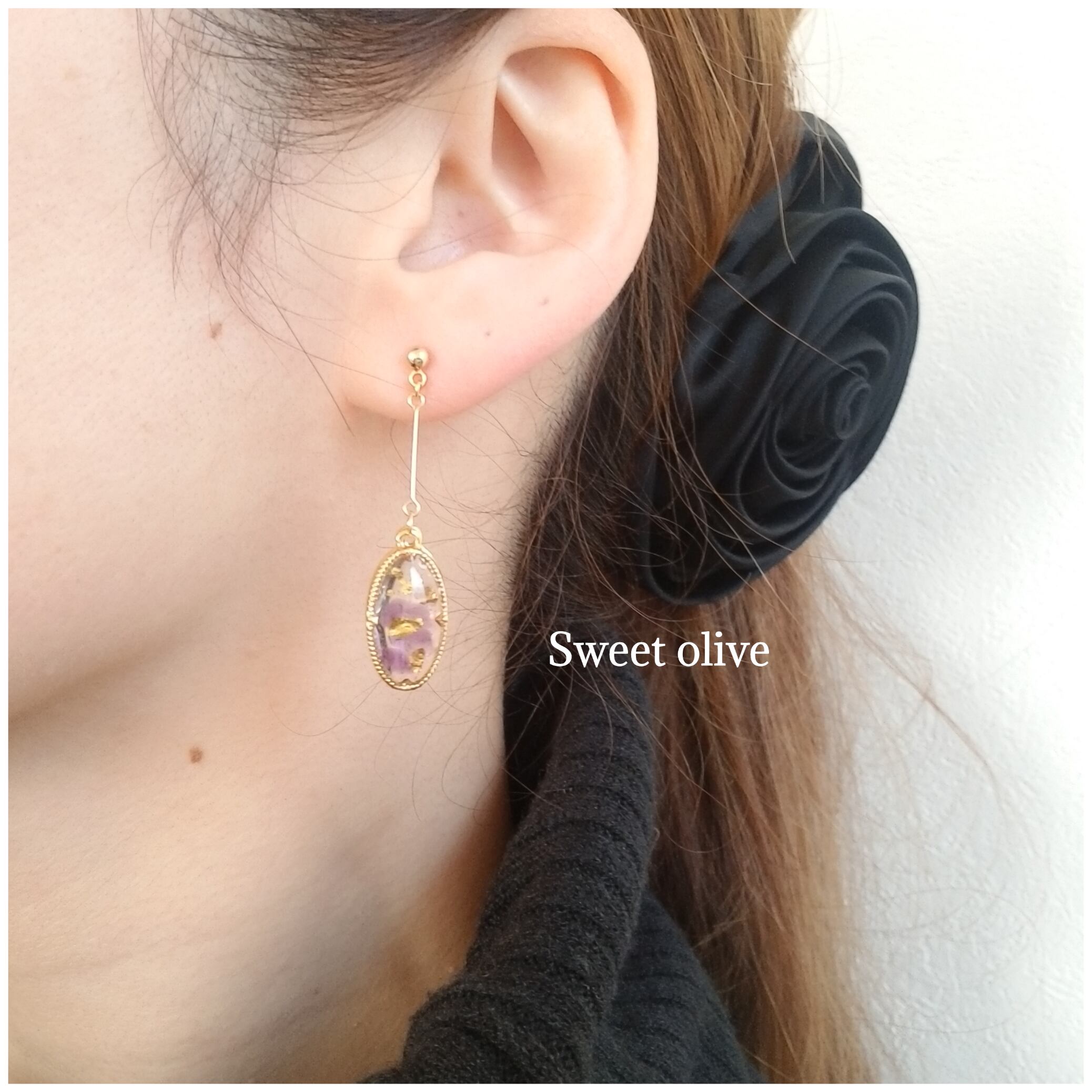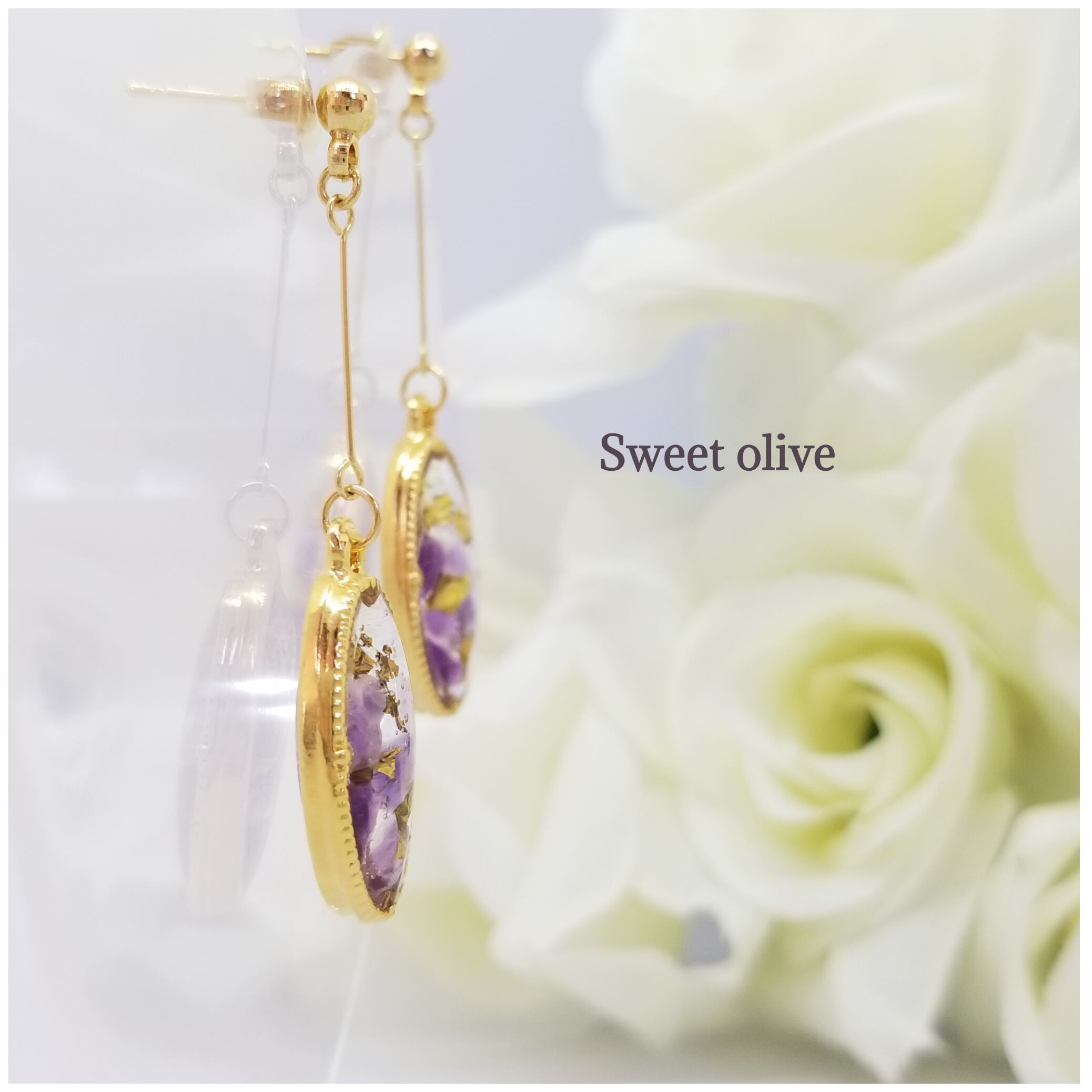 アンティーク調のアメシストとゴールドホログラムピアス